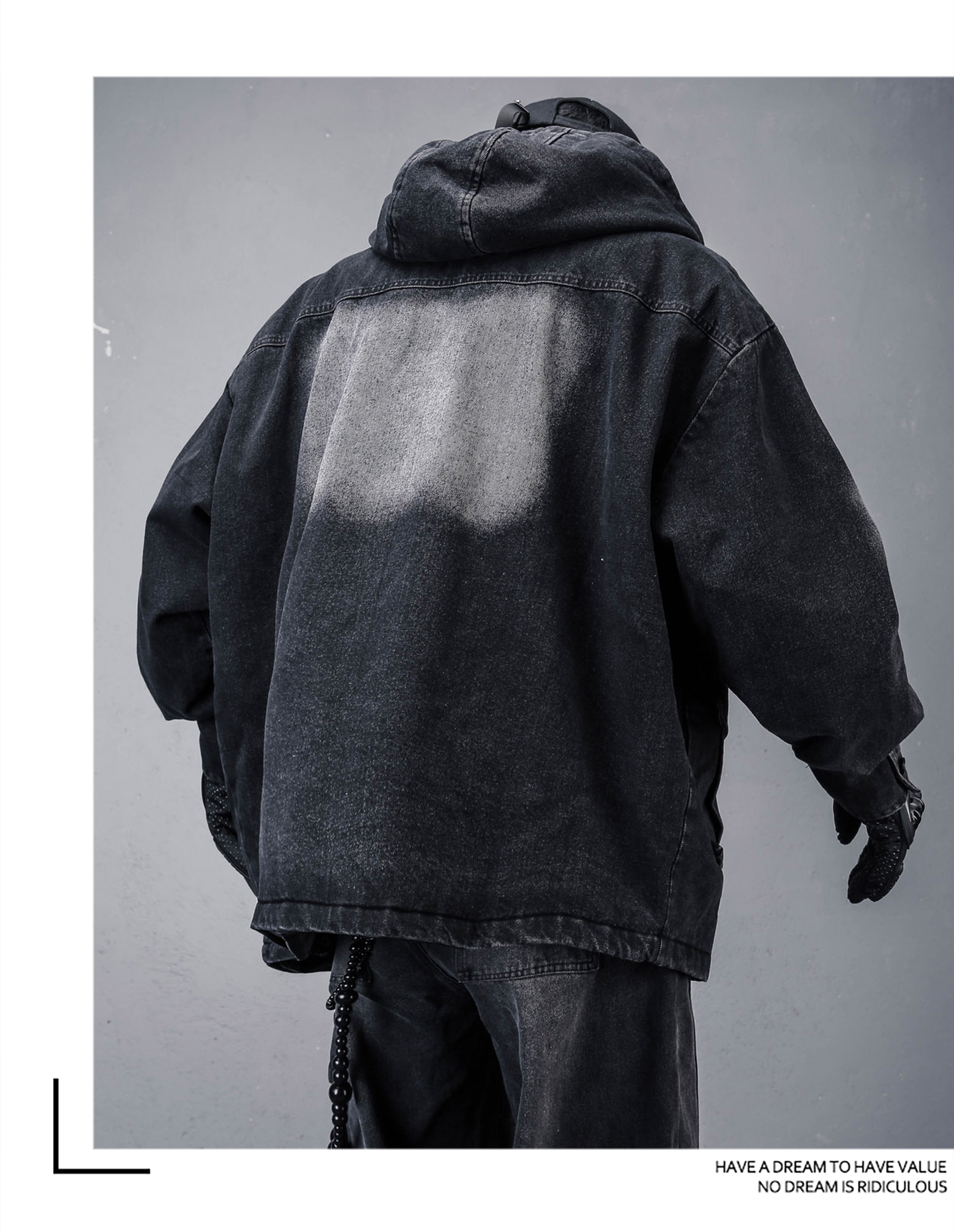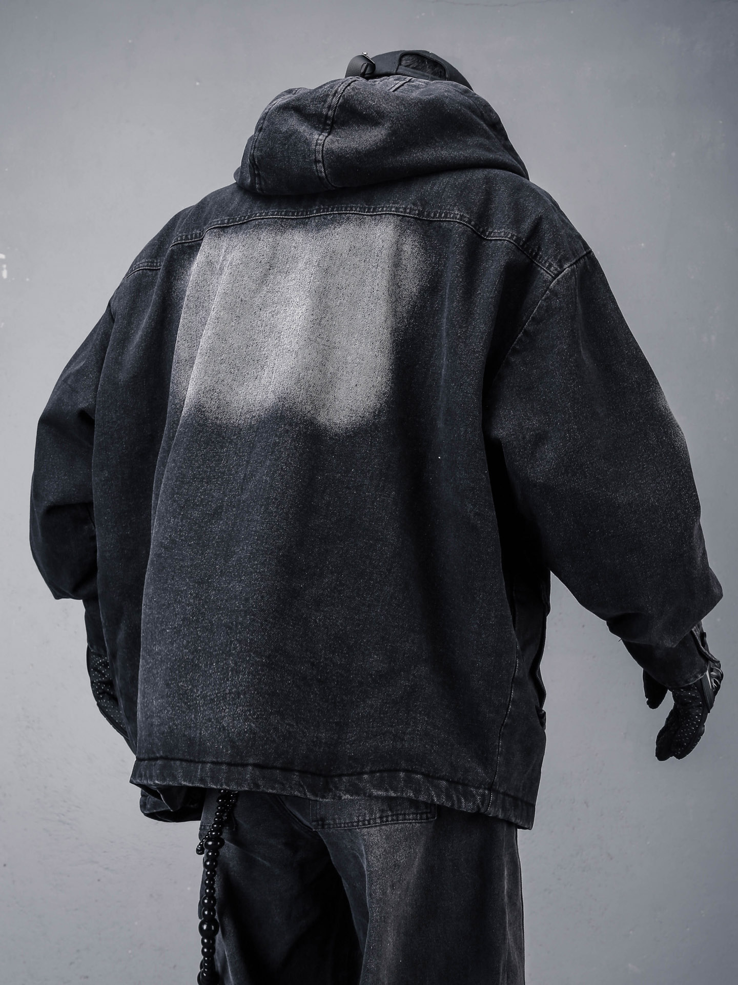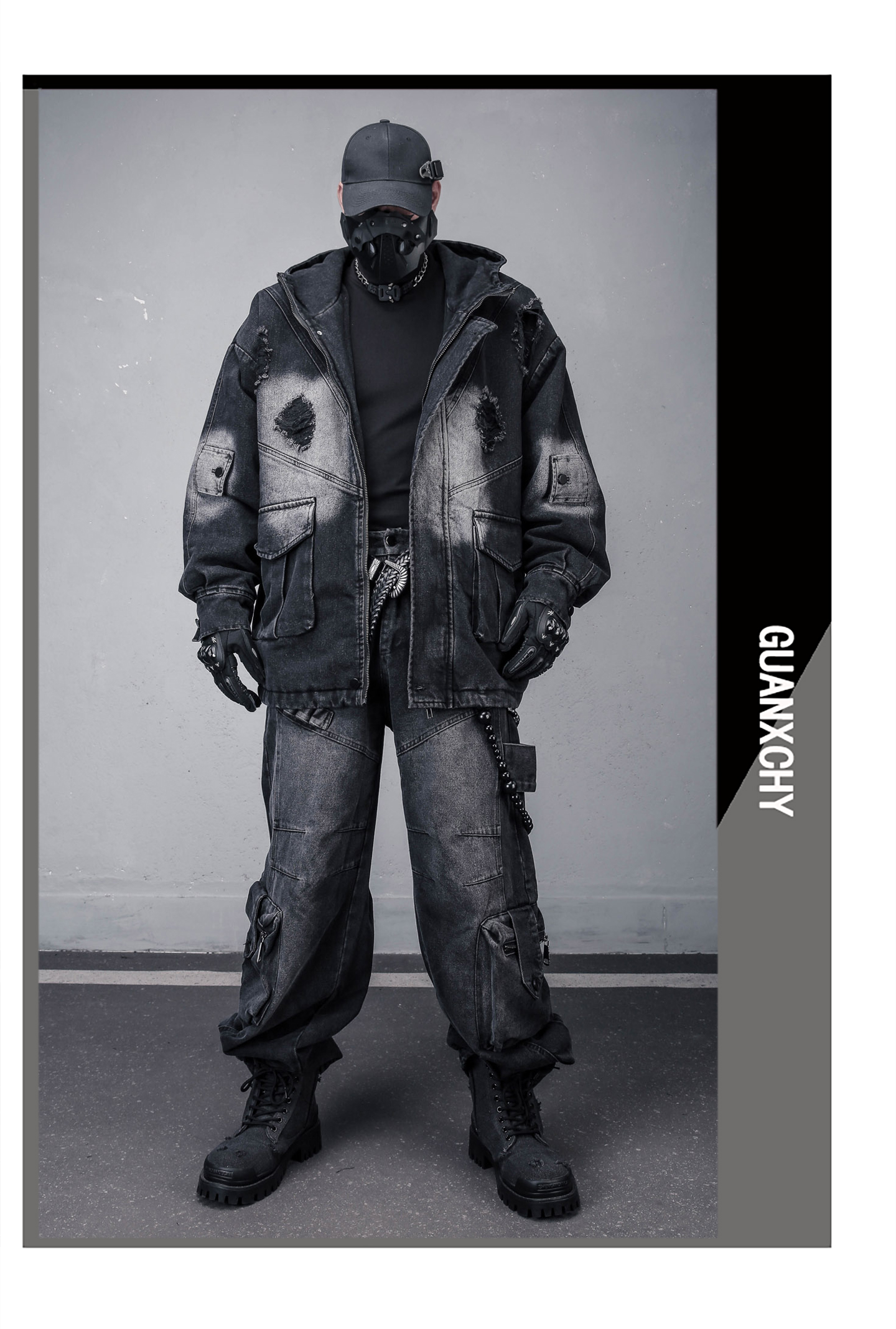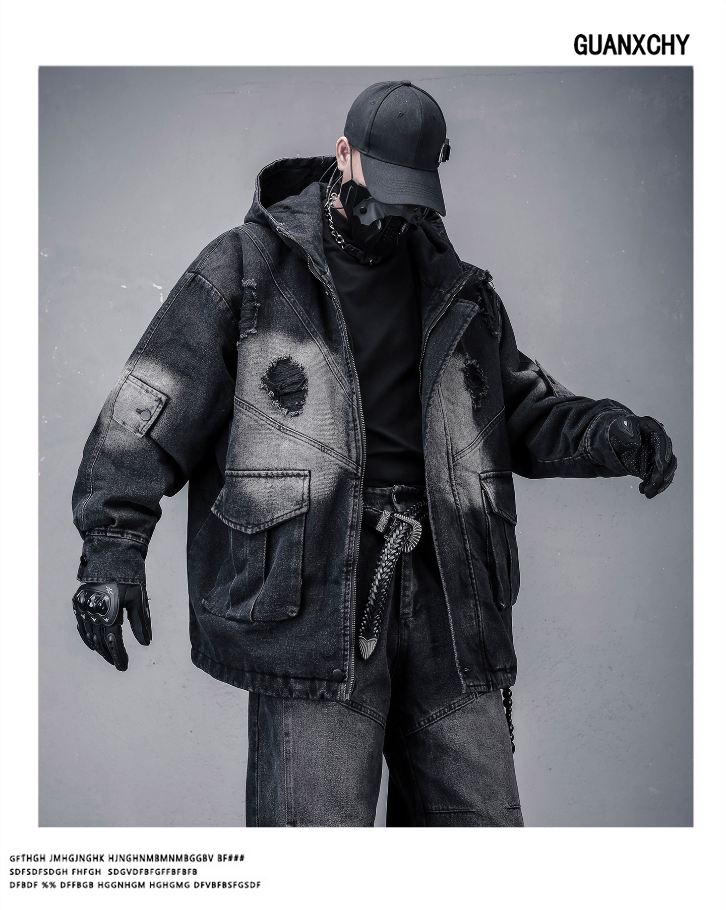 Heavy Wash Damage Hooded Denim Jacket WN22302
