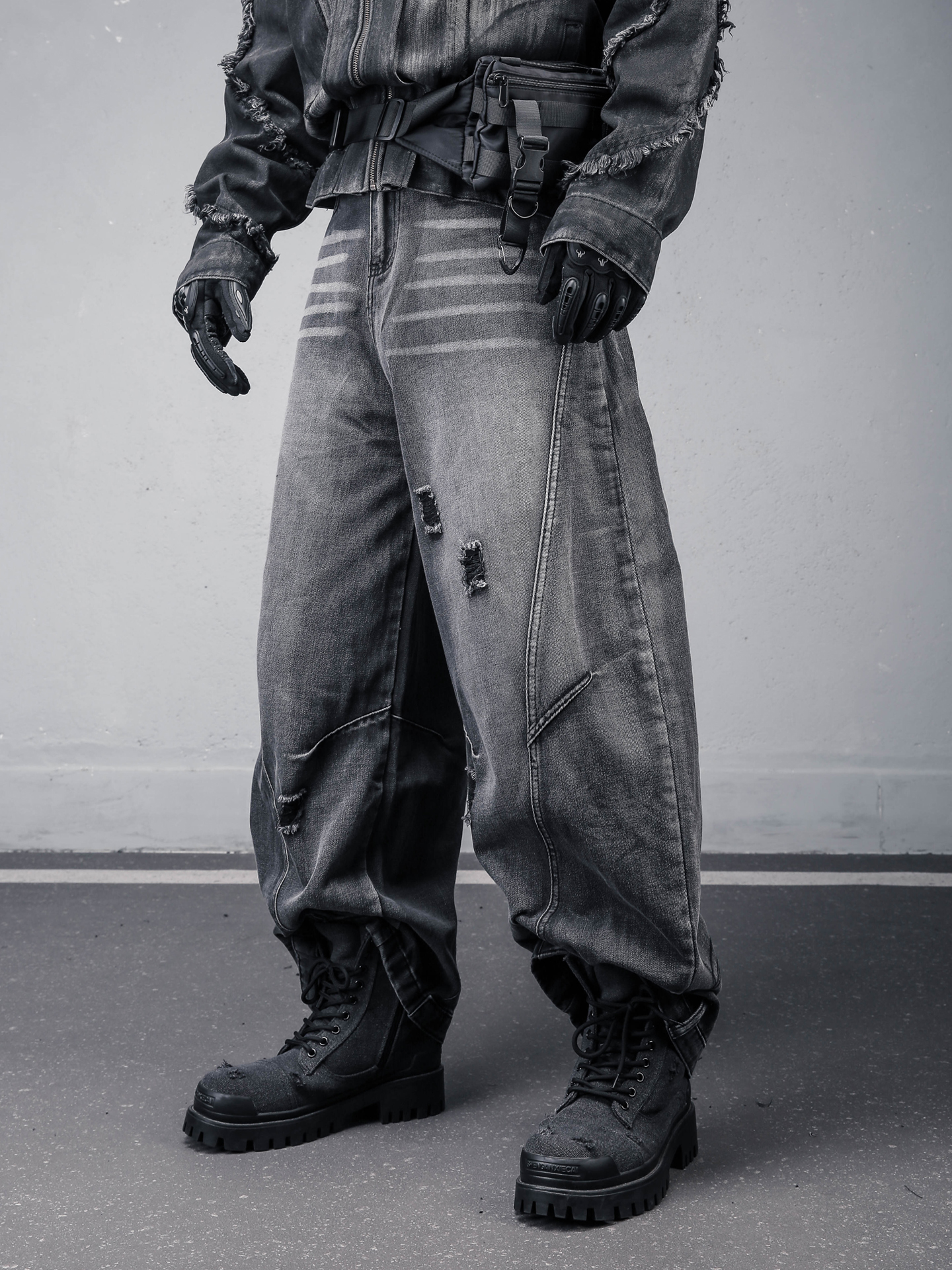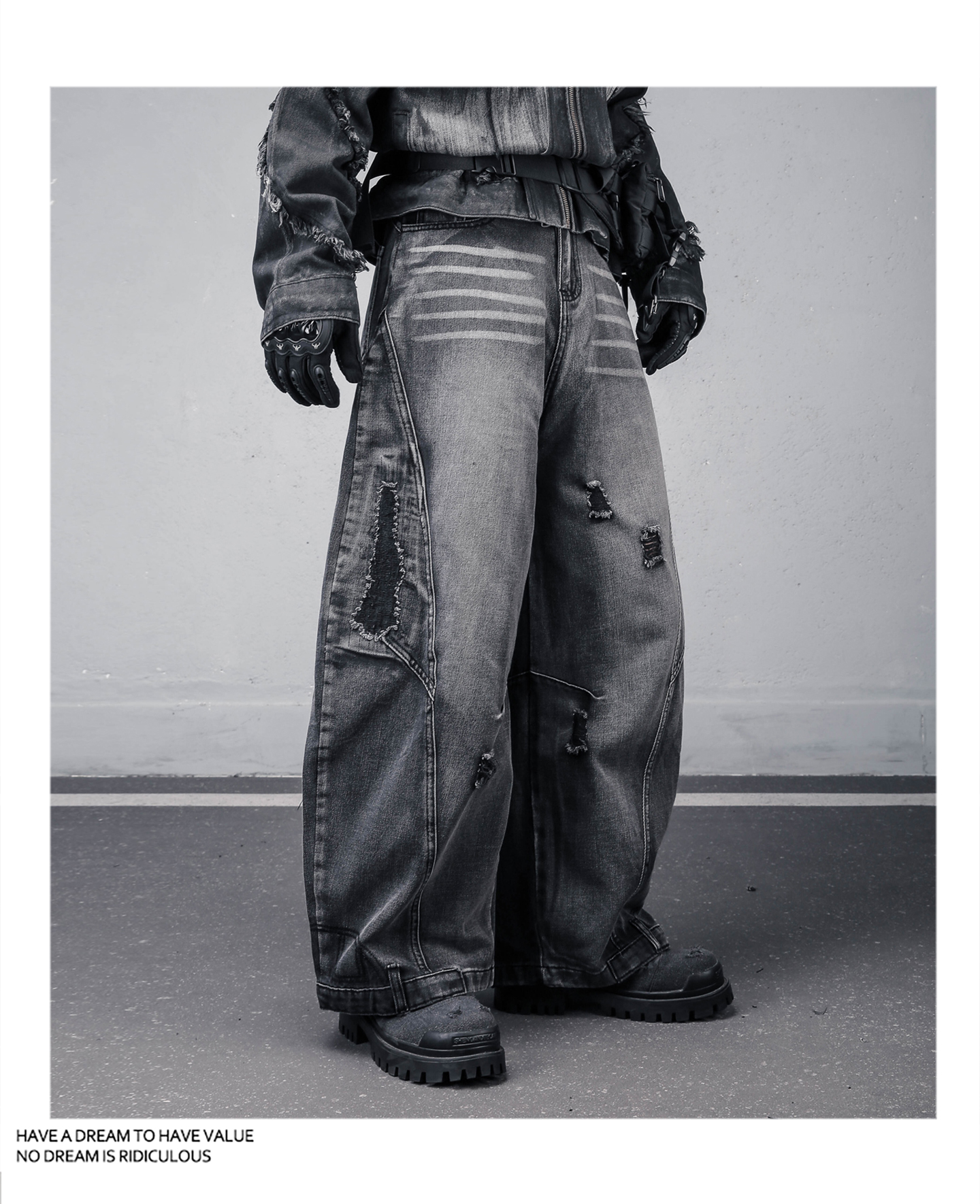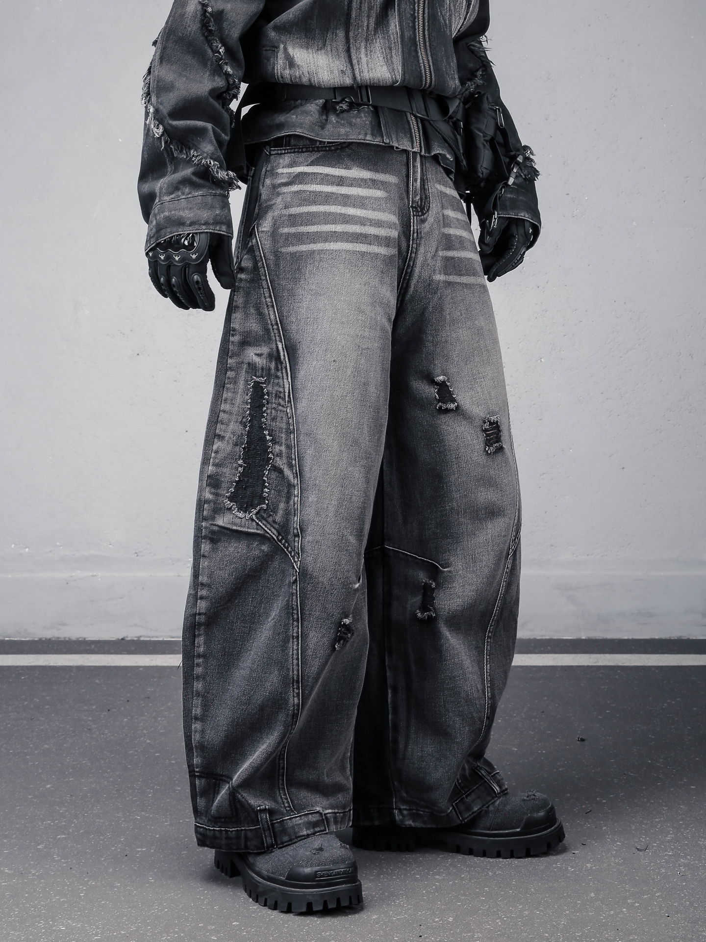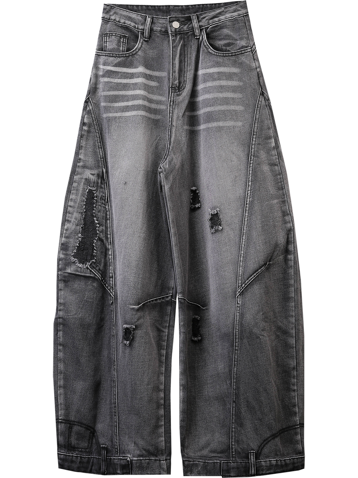 Damage Wash Wide Leg Denim Jeans WN22307
