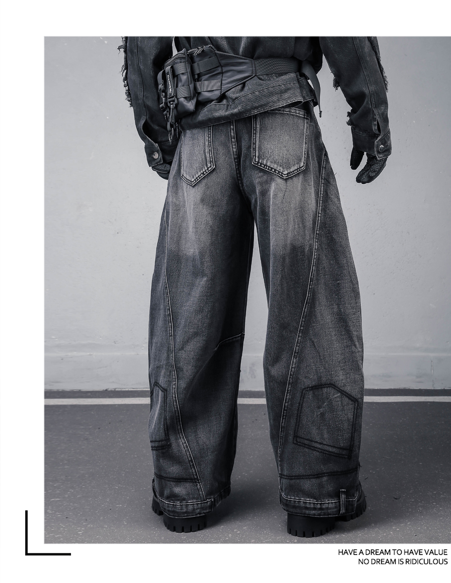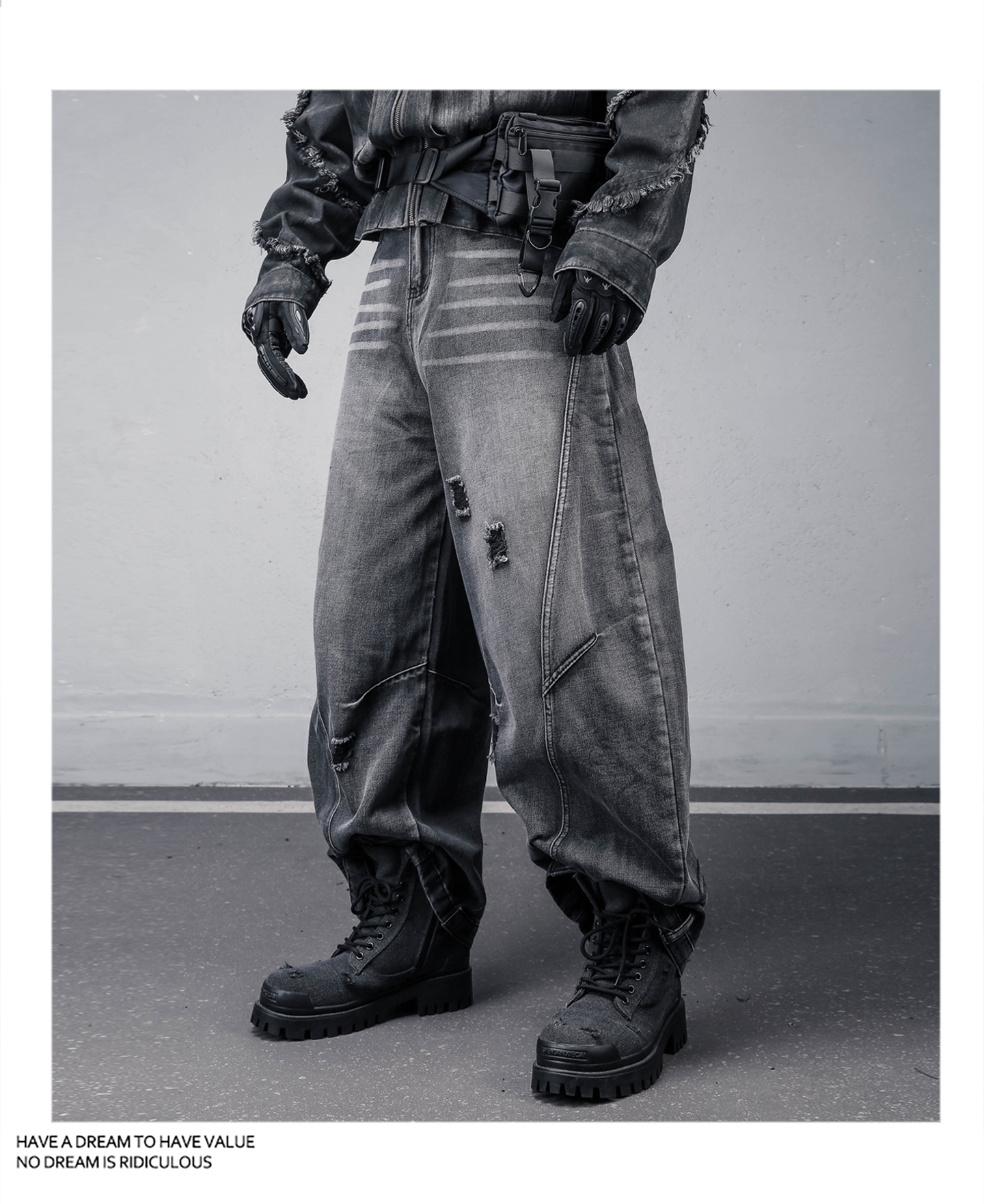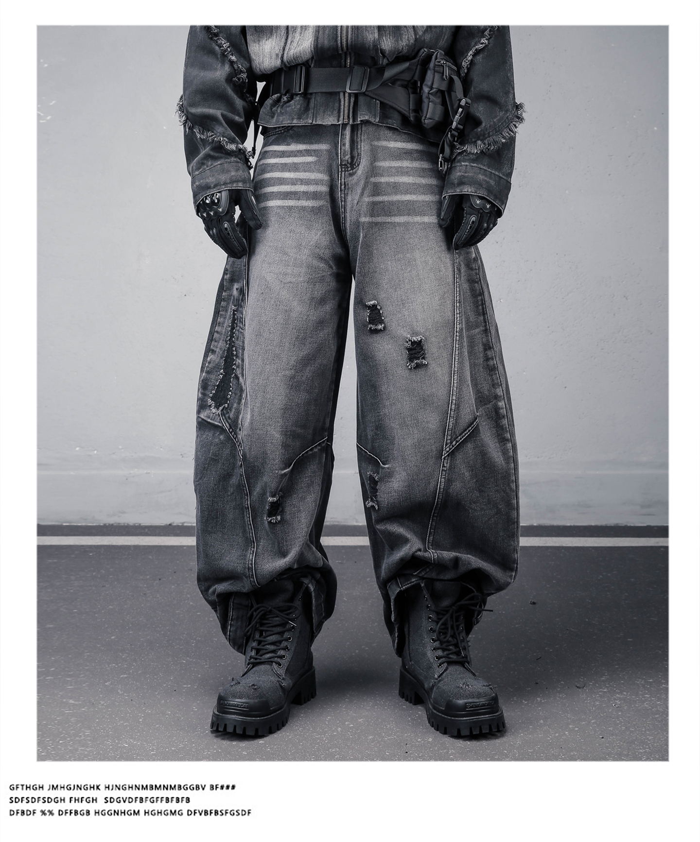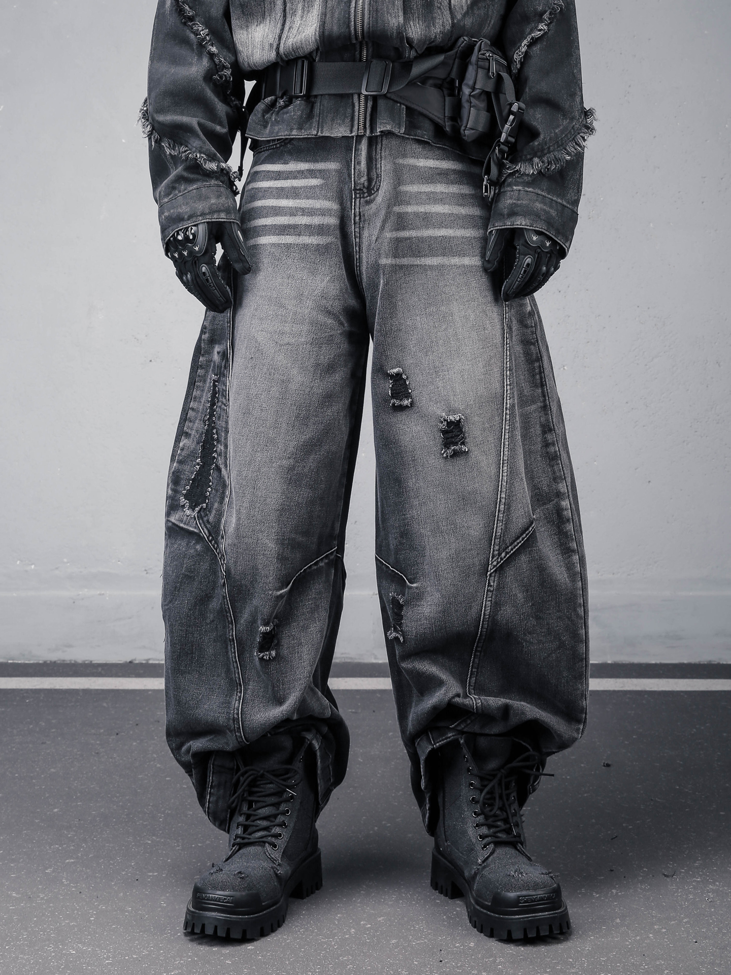Damage Wash Wide Leg Denim Jeans WN22307