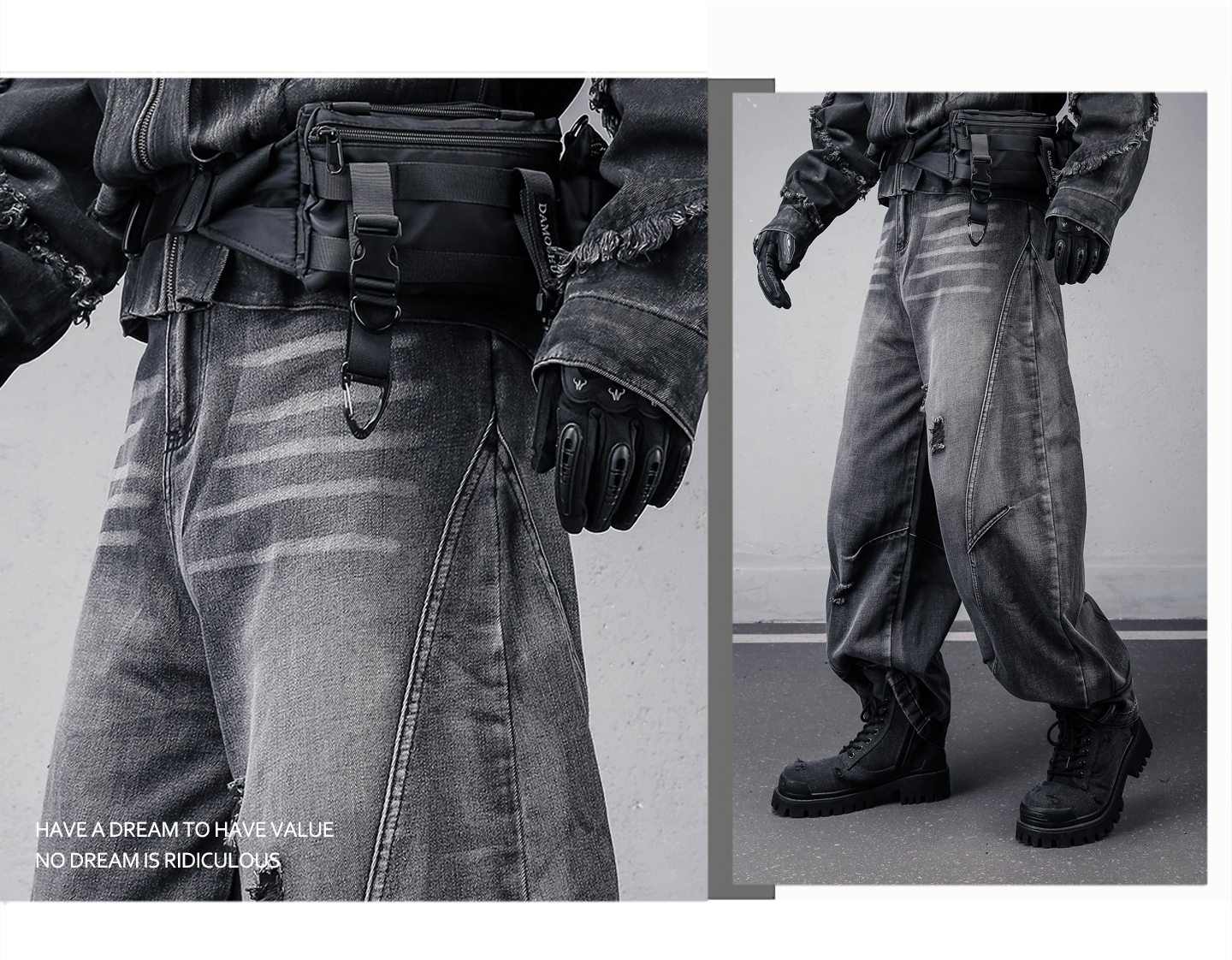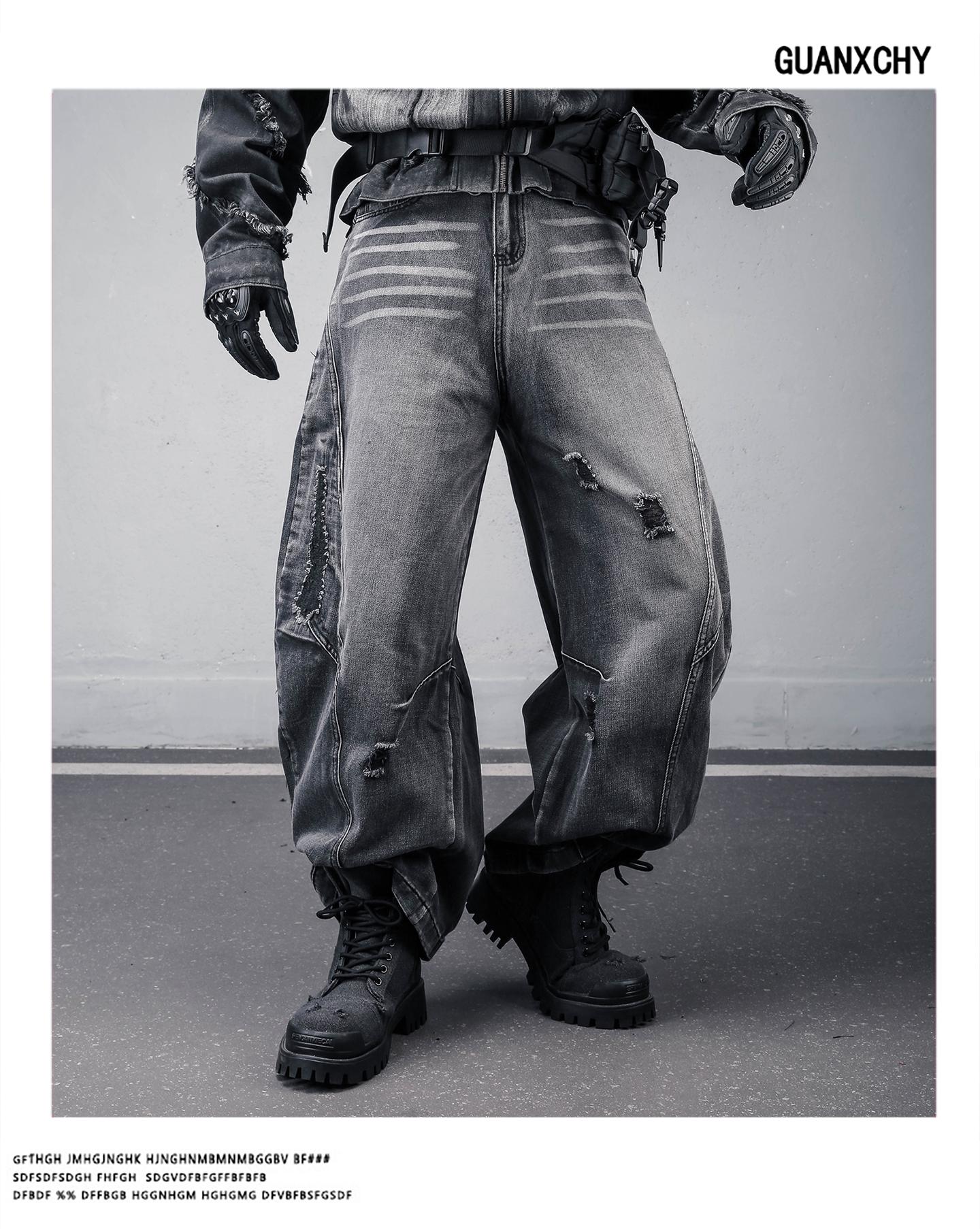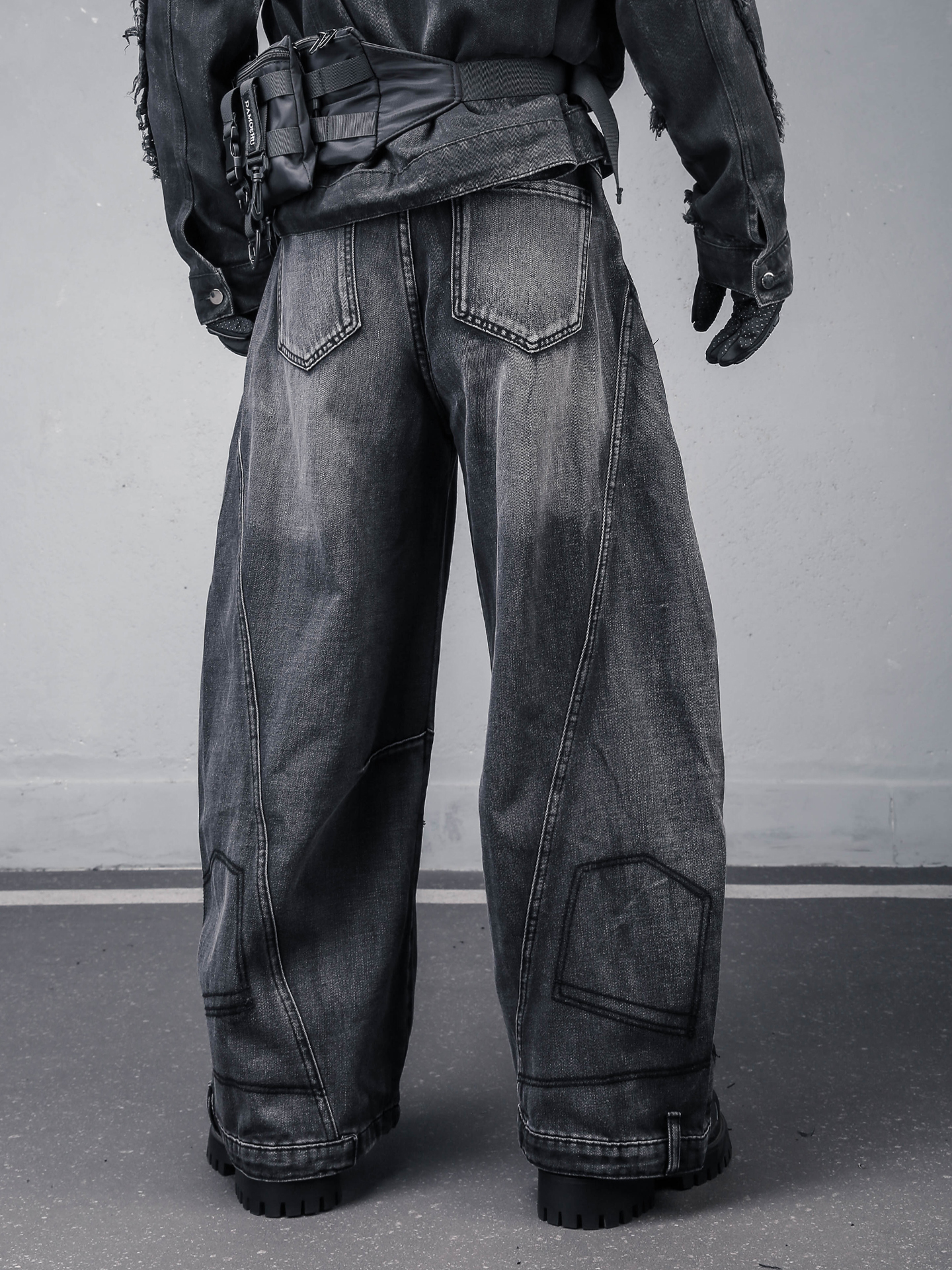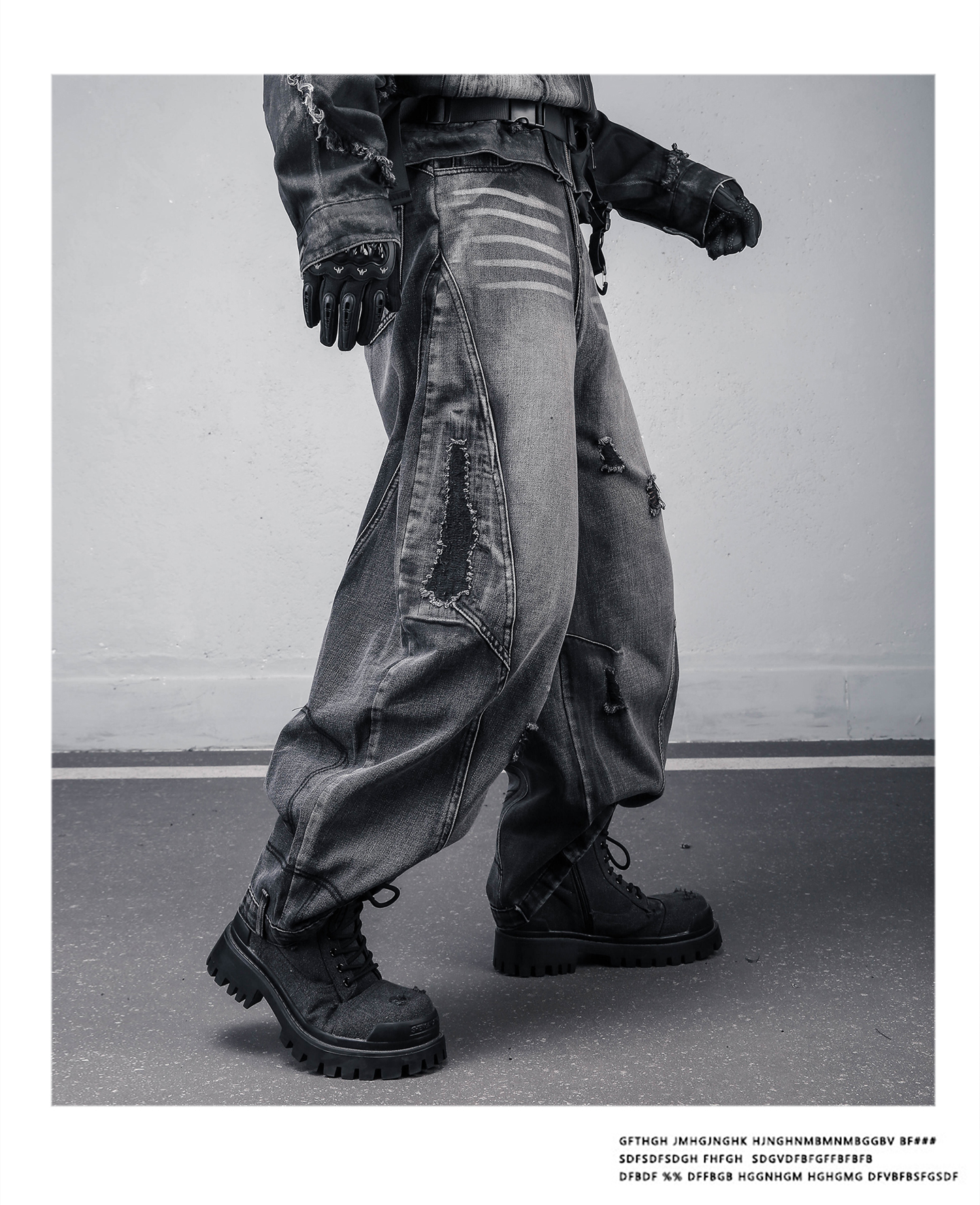 Damage Wash Wide Leg Denim Jeans WN22307