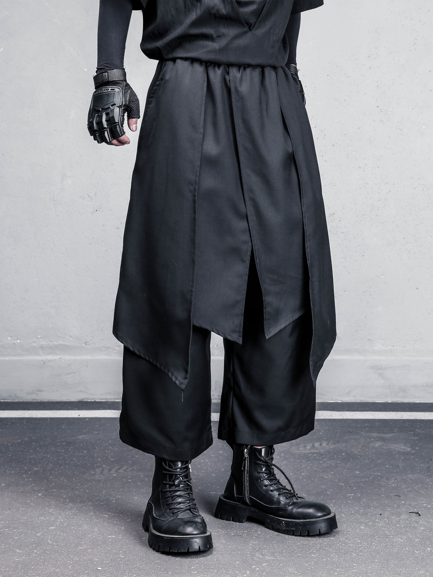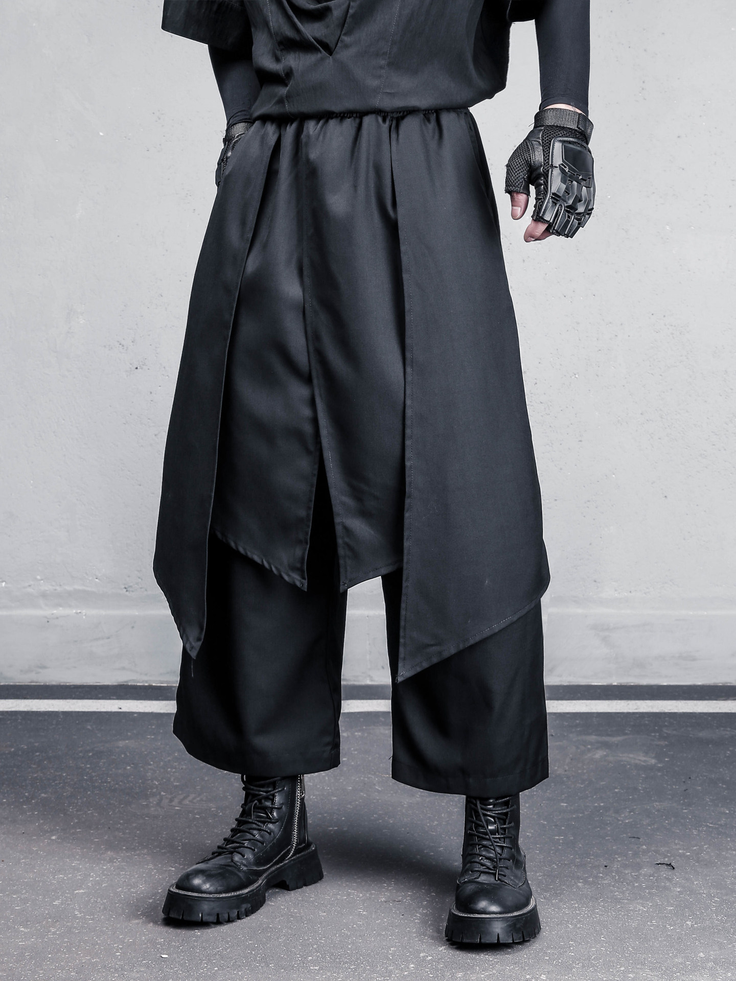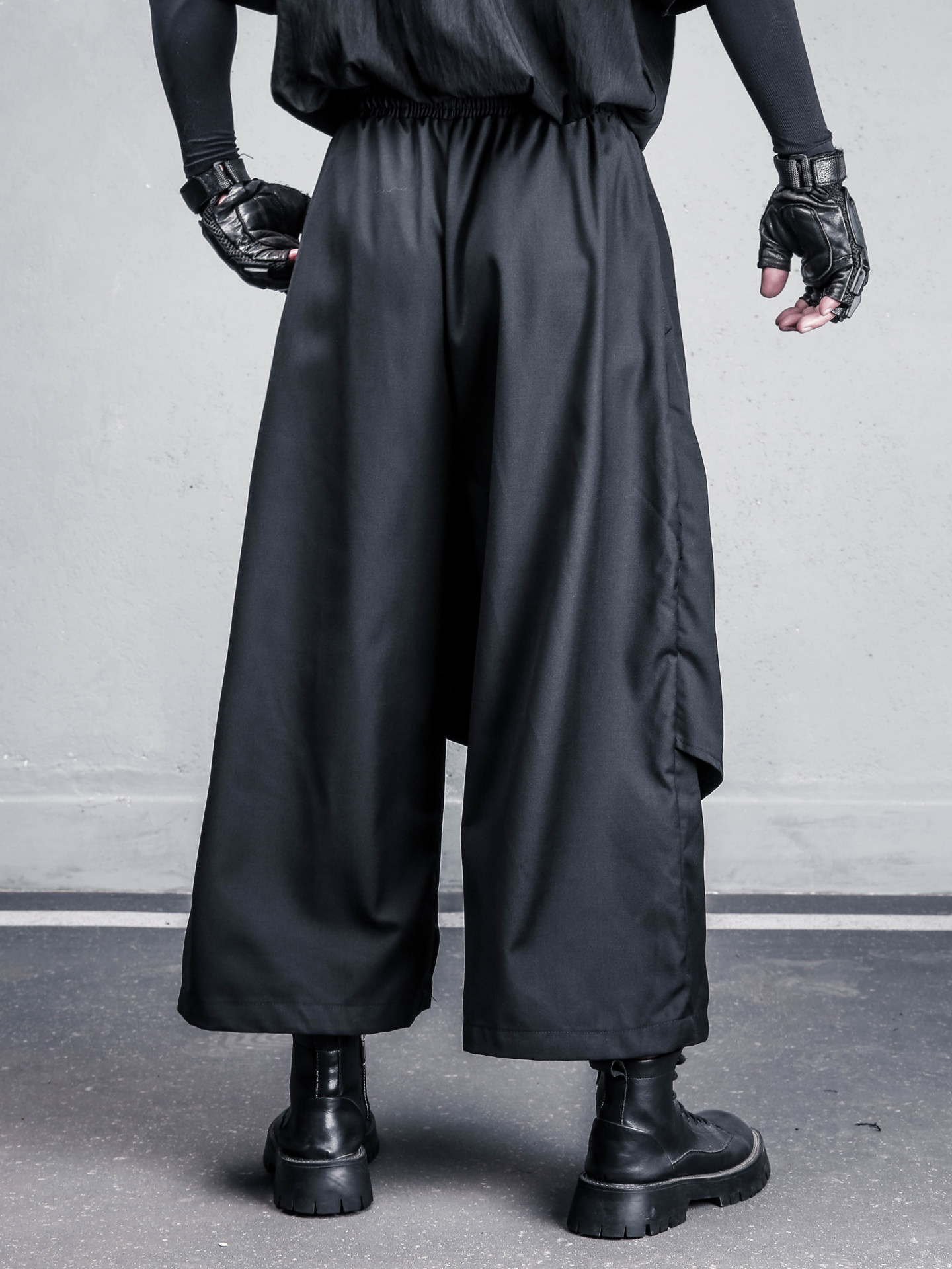 Draped Fake Layered Wide Leg Cropped Trousers WN22402
