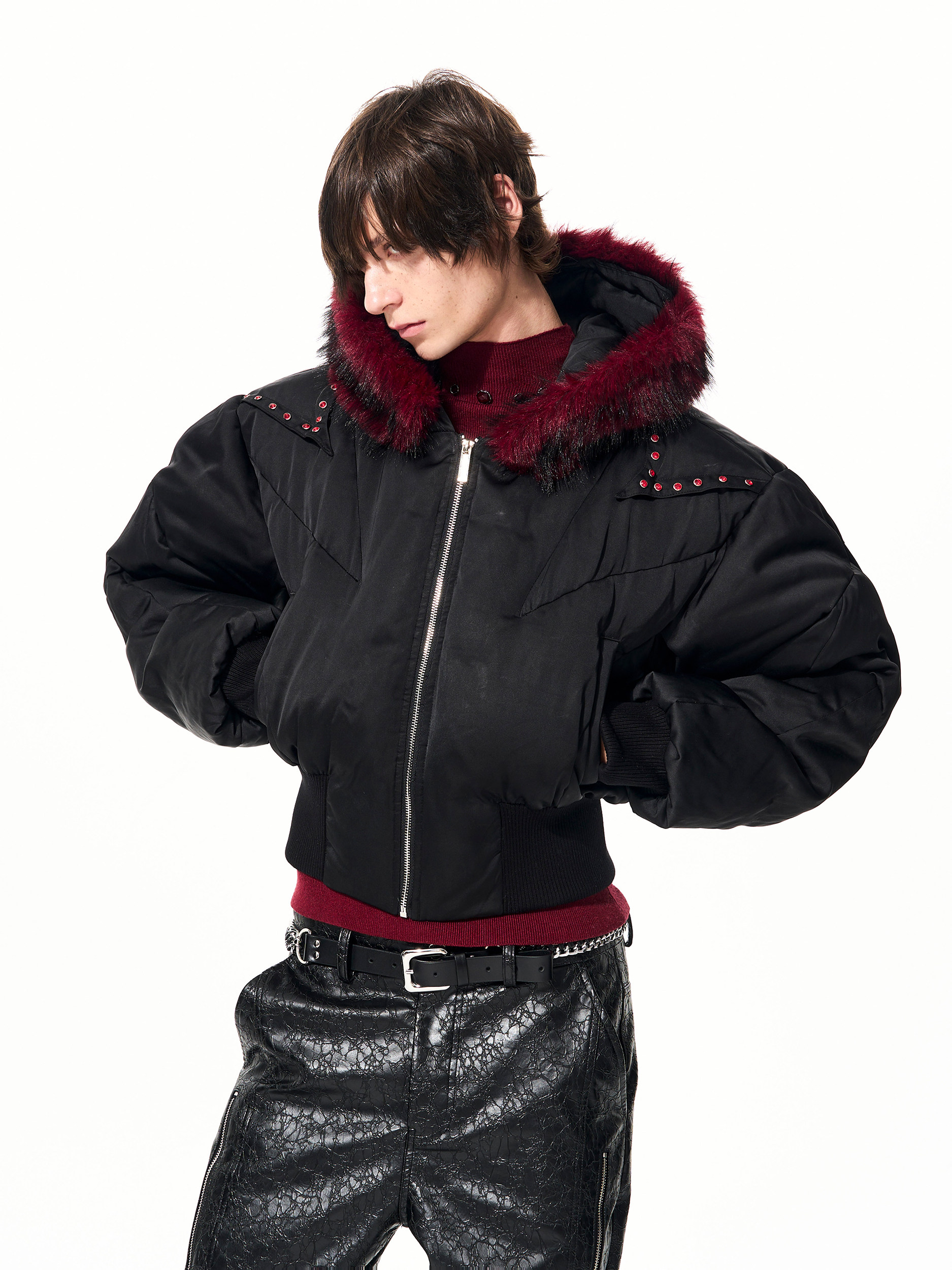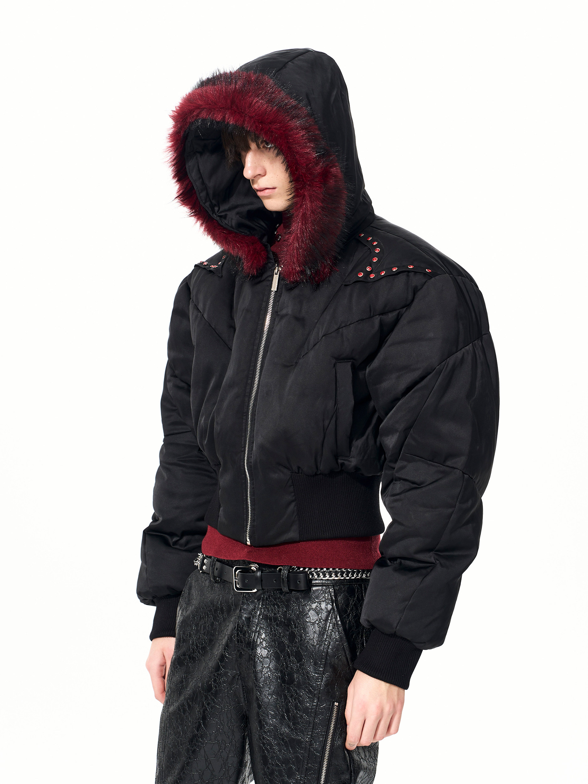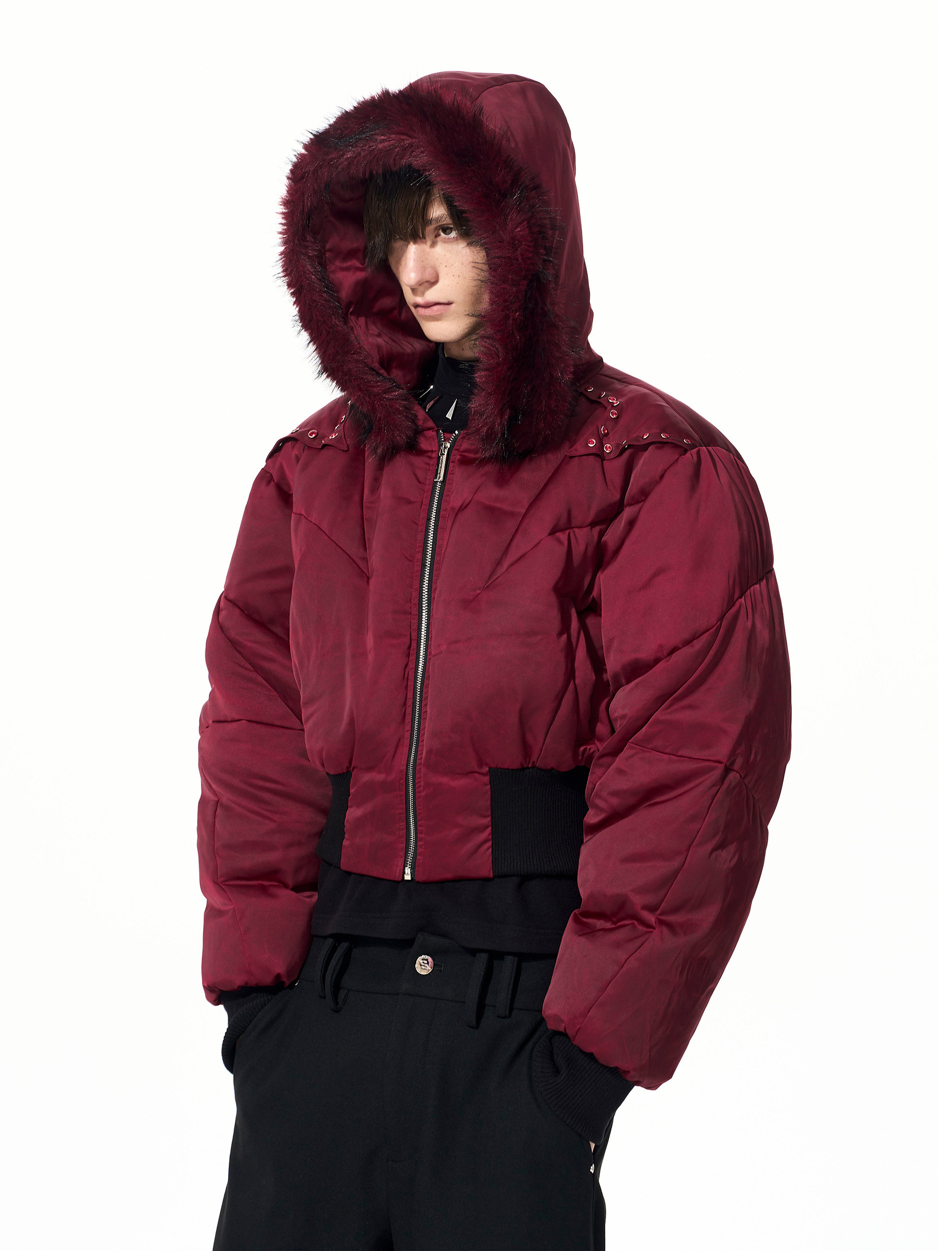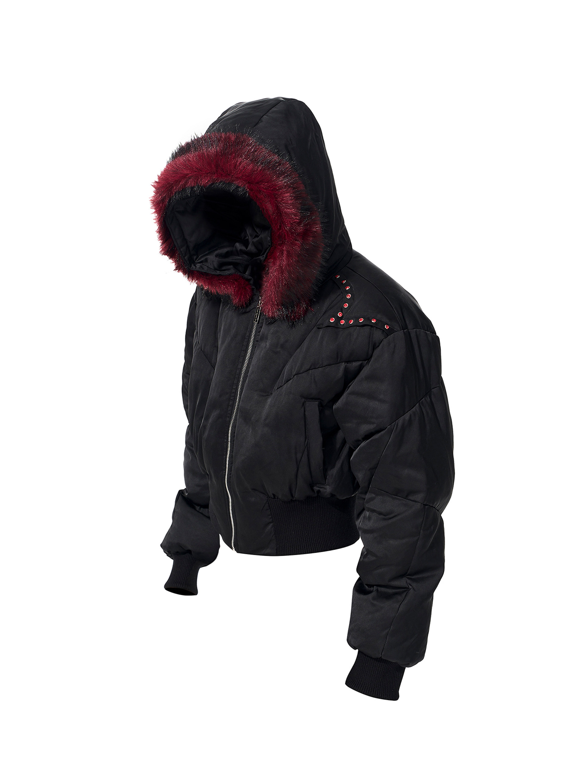Fake Fur Hooded Studs Puffer Jacket WN22695
