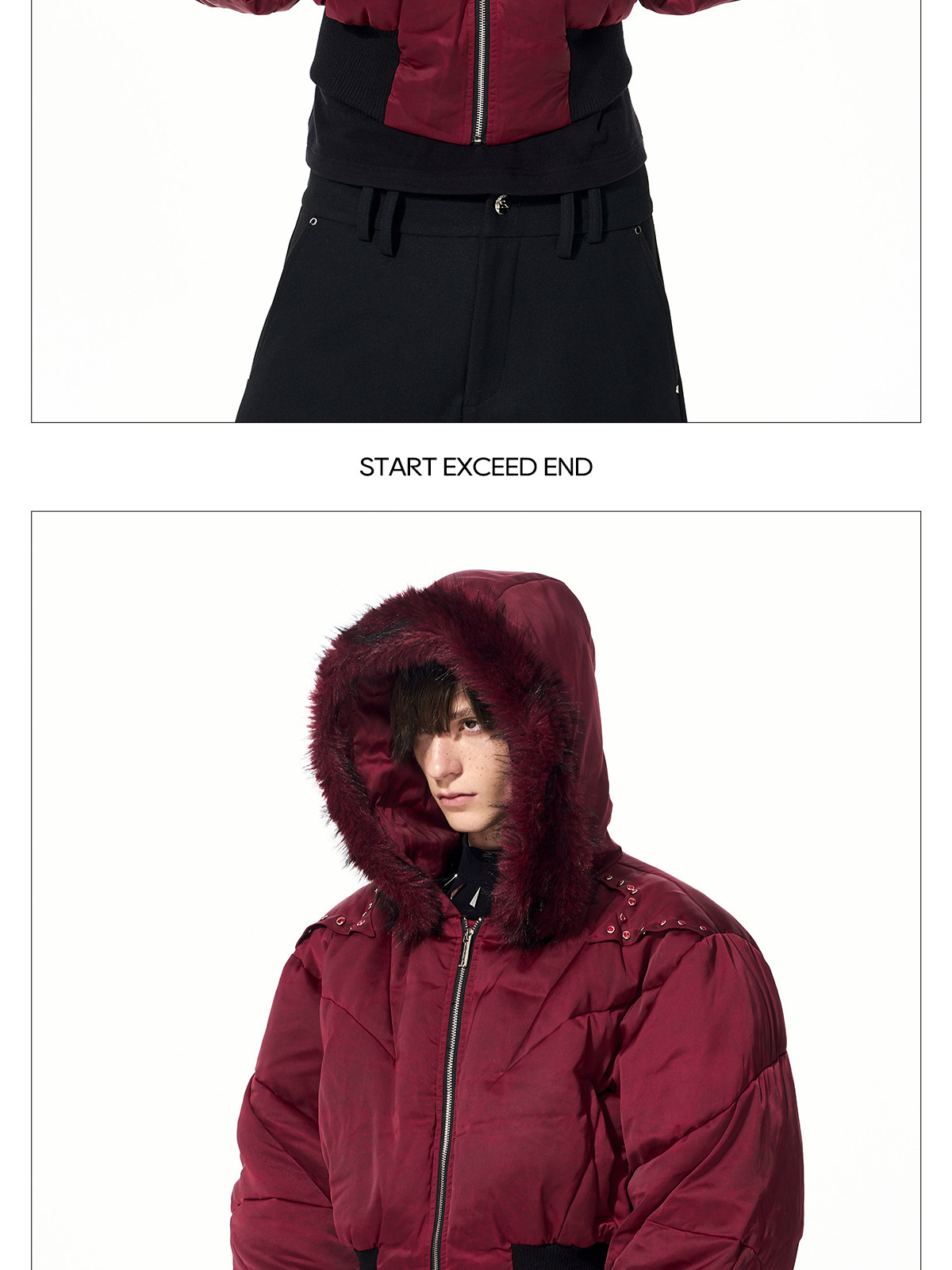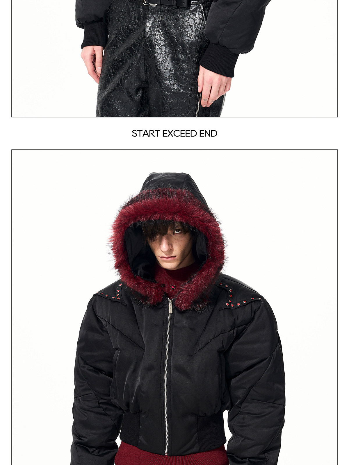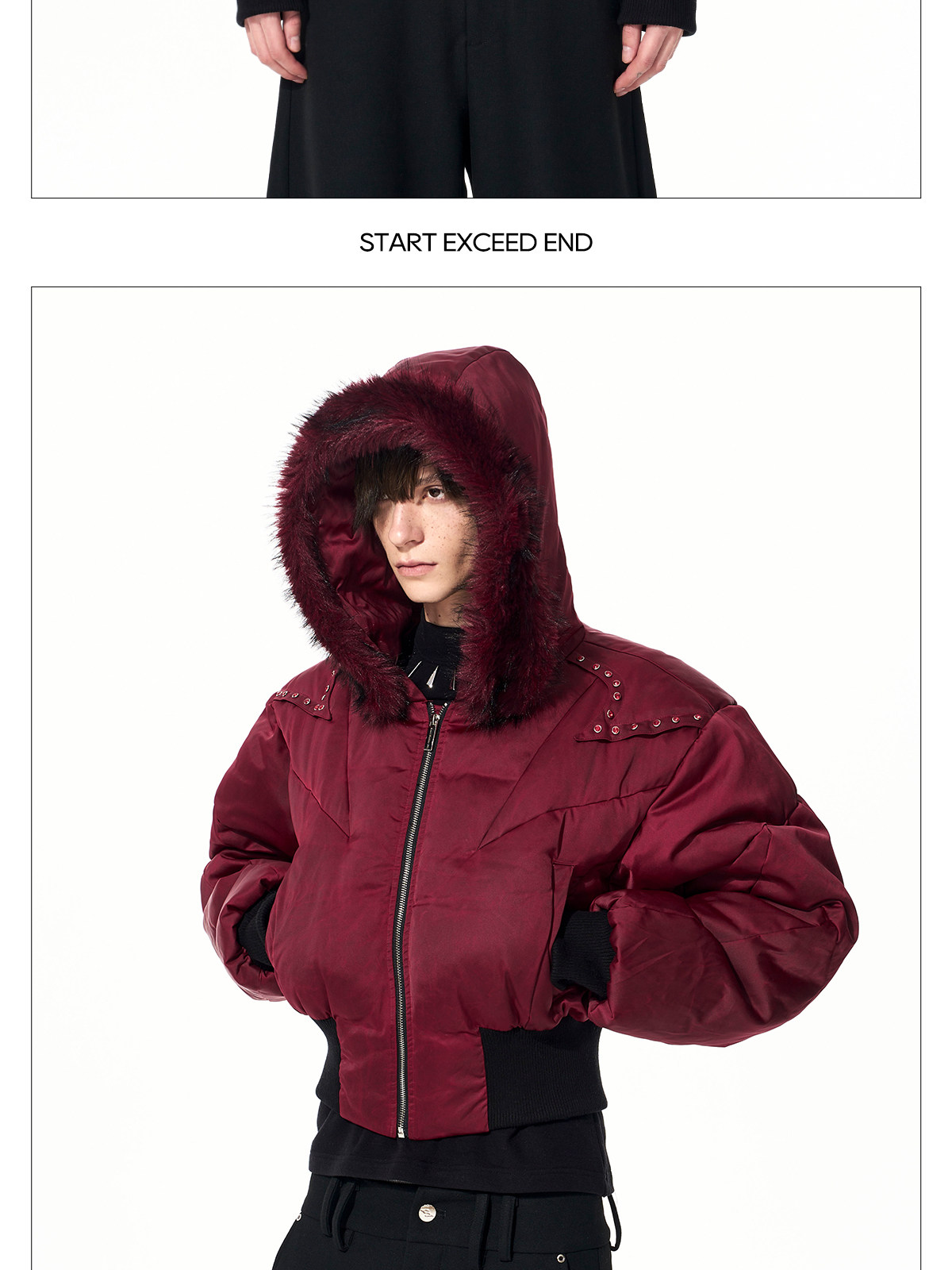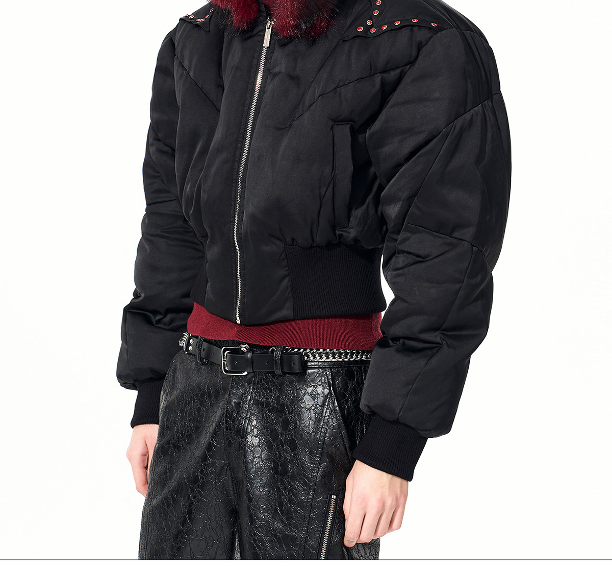 Fake Fur Hooded Studs Puffer Jacket WN22695