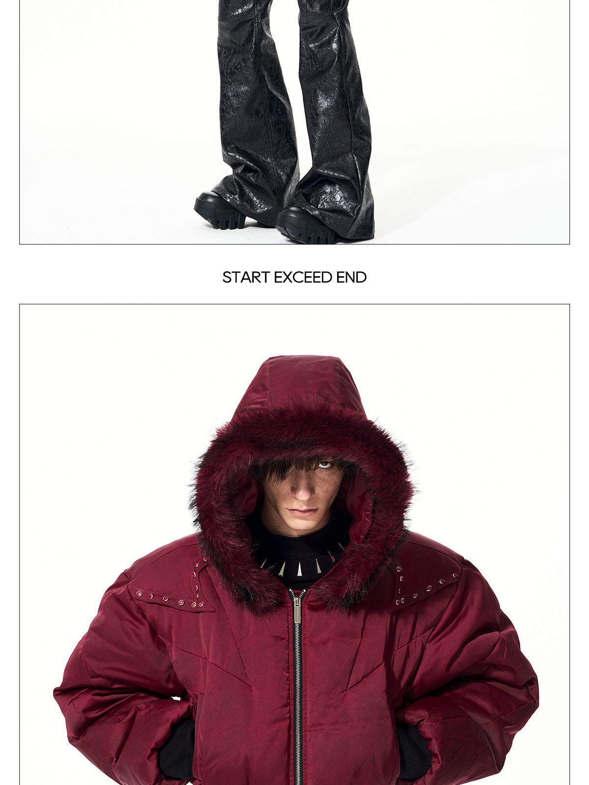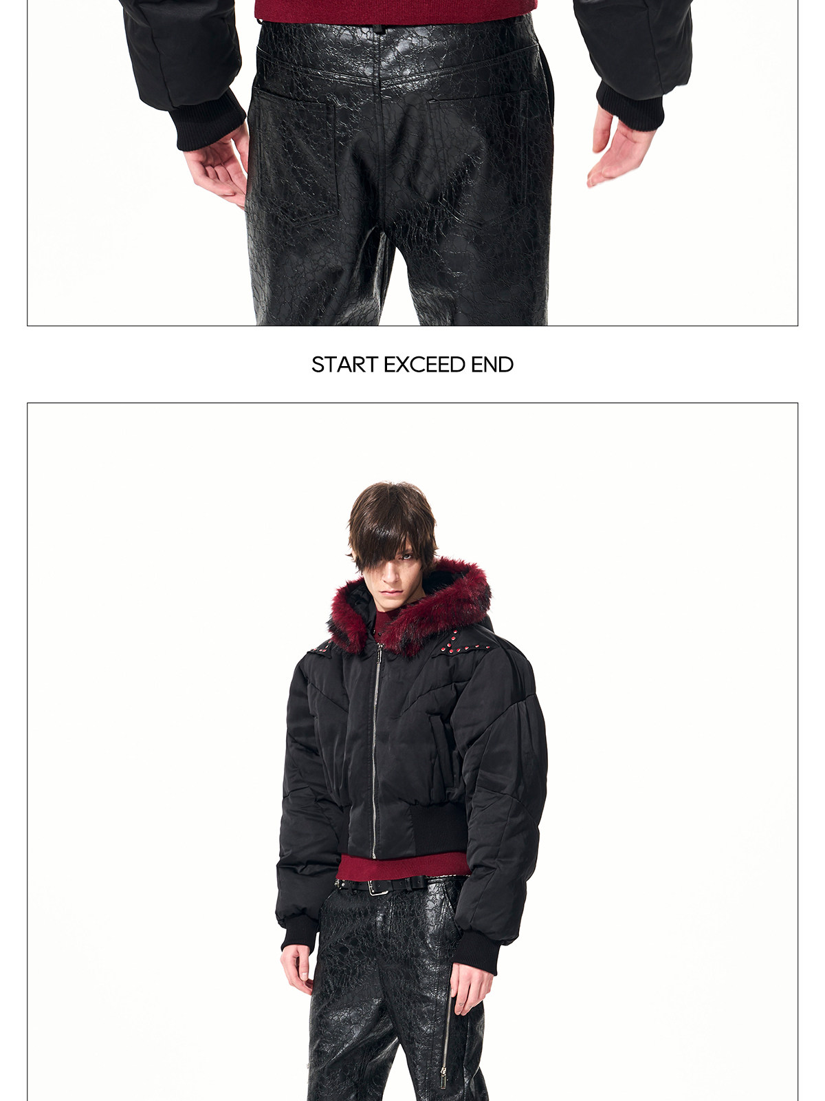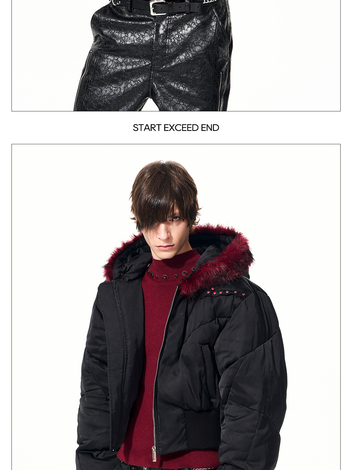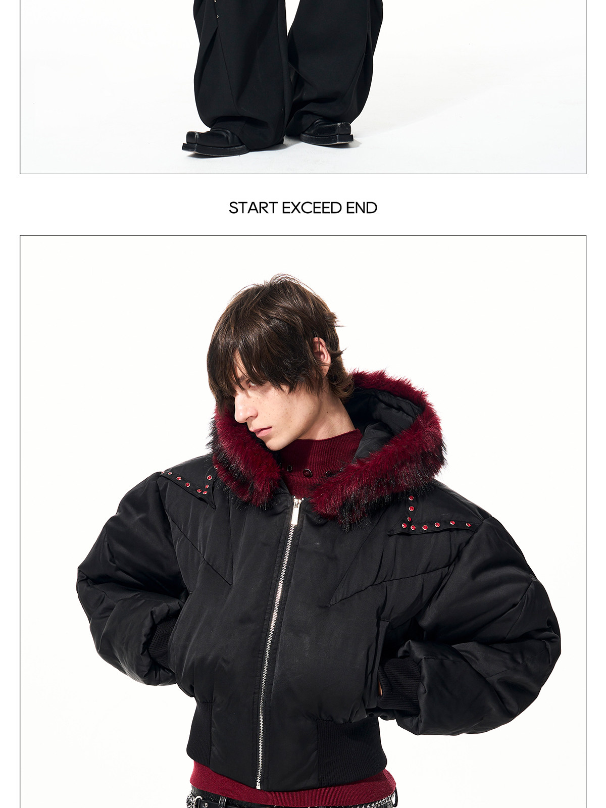 Fake Fur Hooded Studs Puffer Jacket WN22695