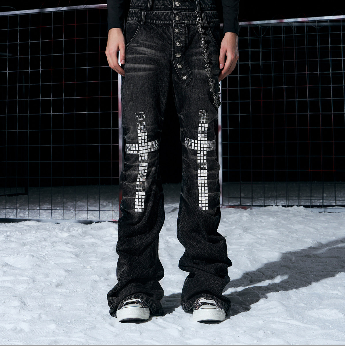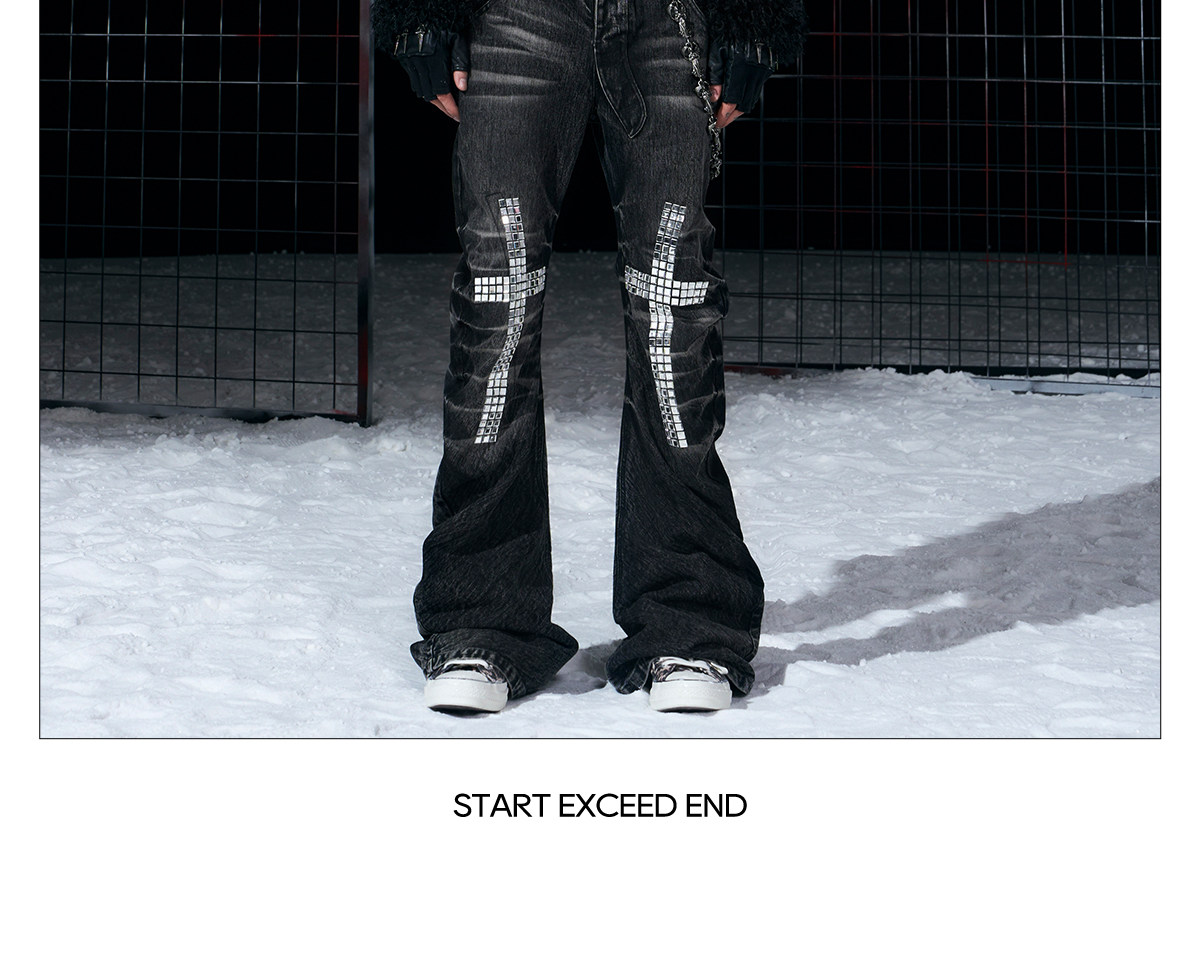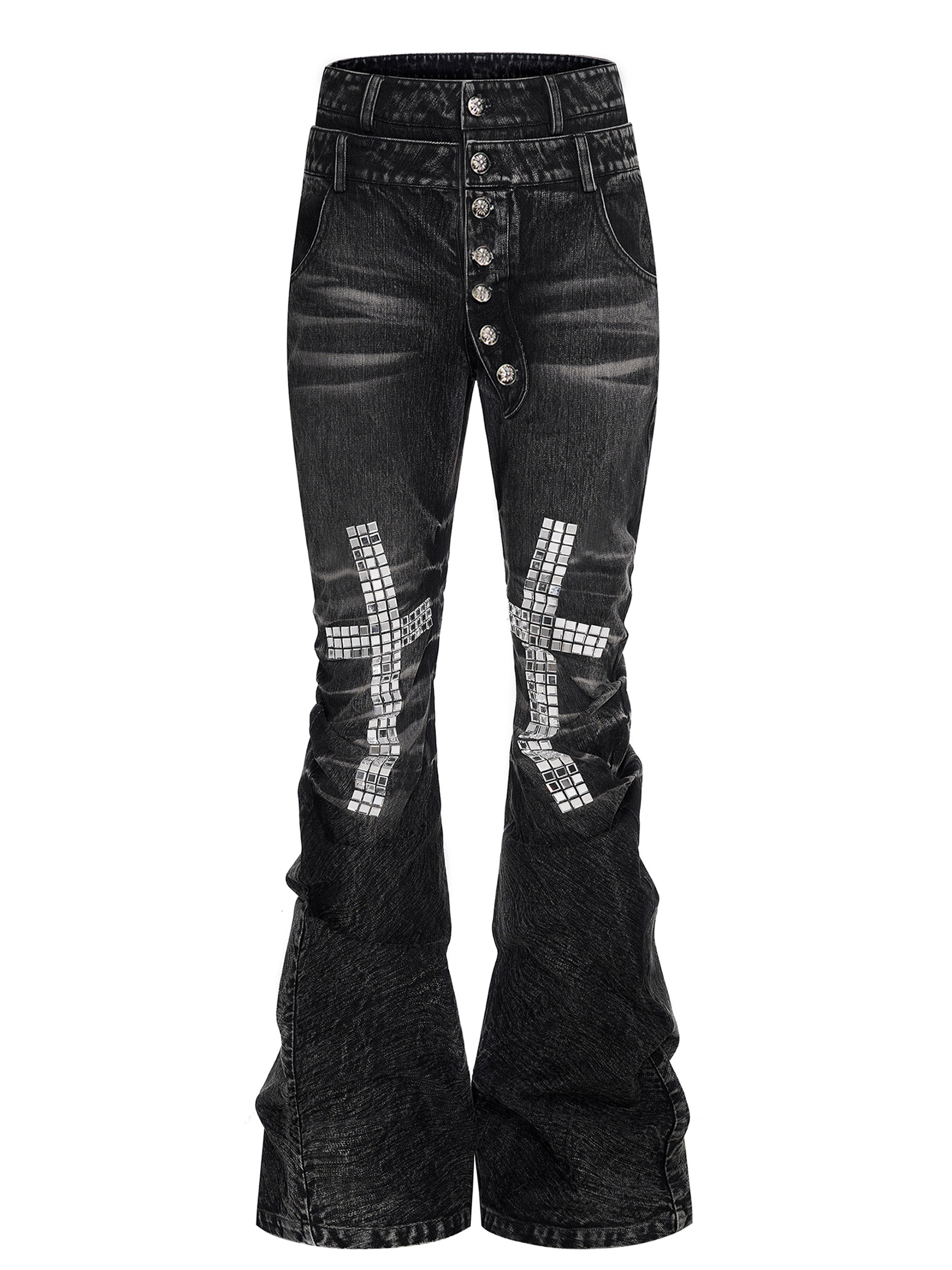 Double Waistband Metal Button Flare Denim Jeans WN22704