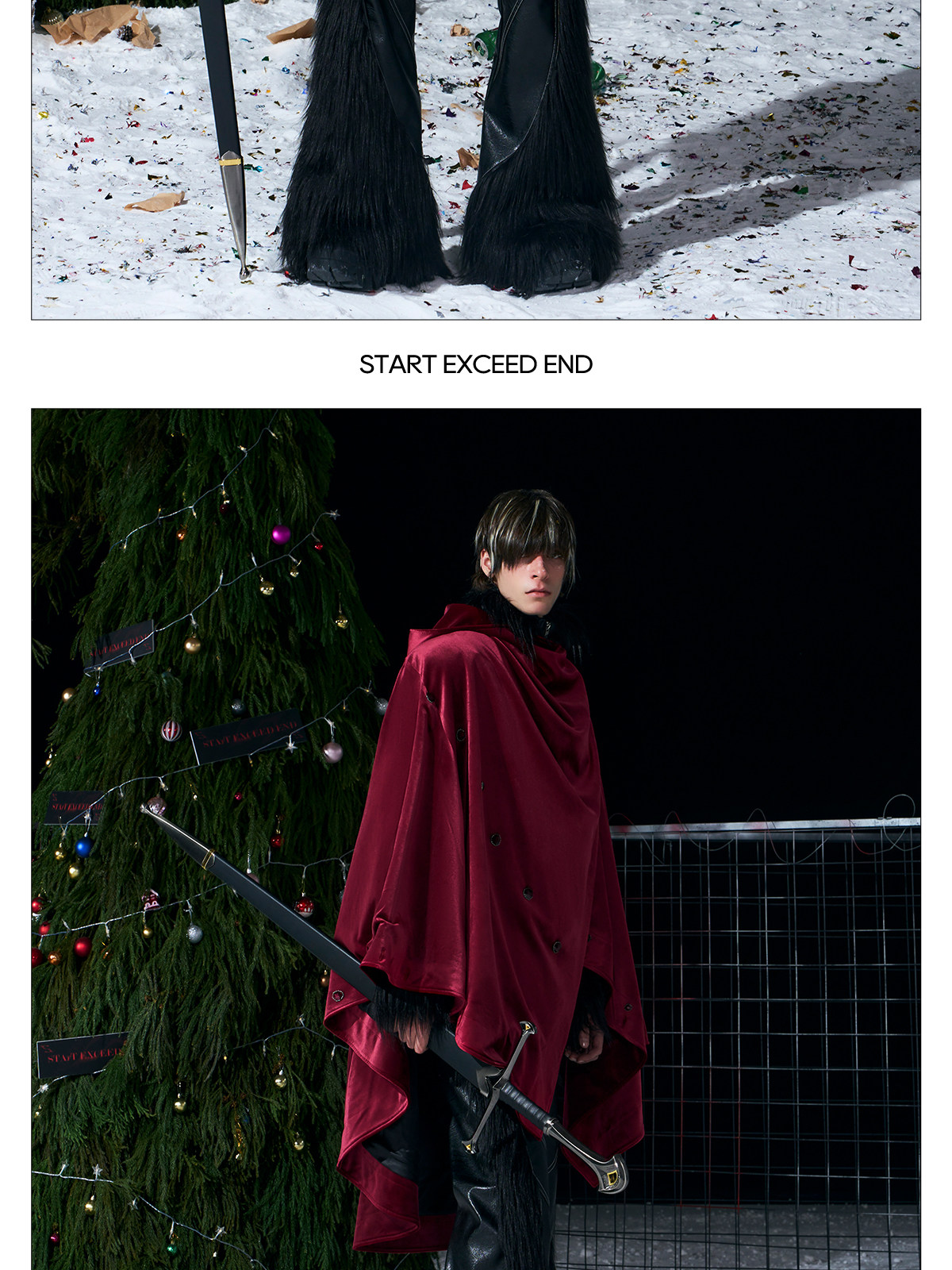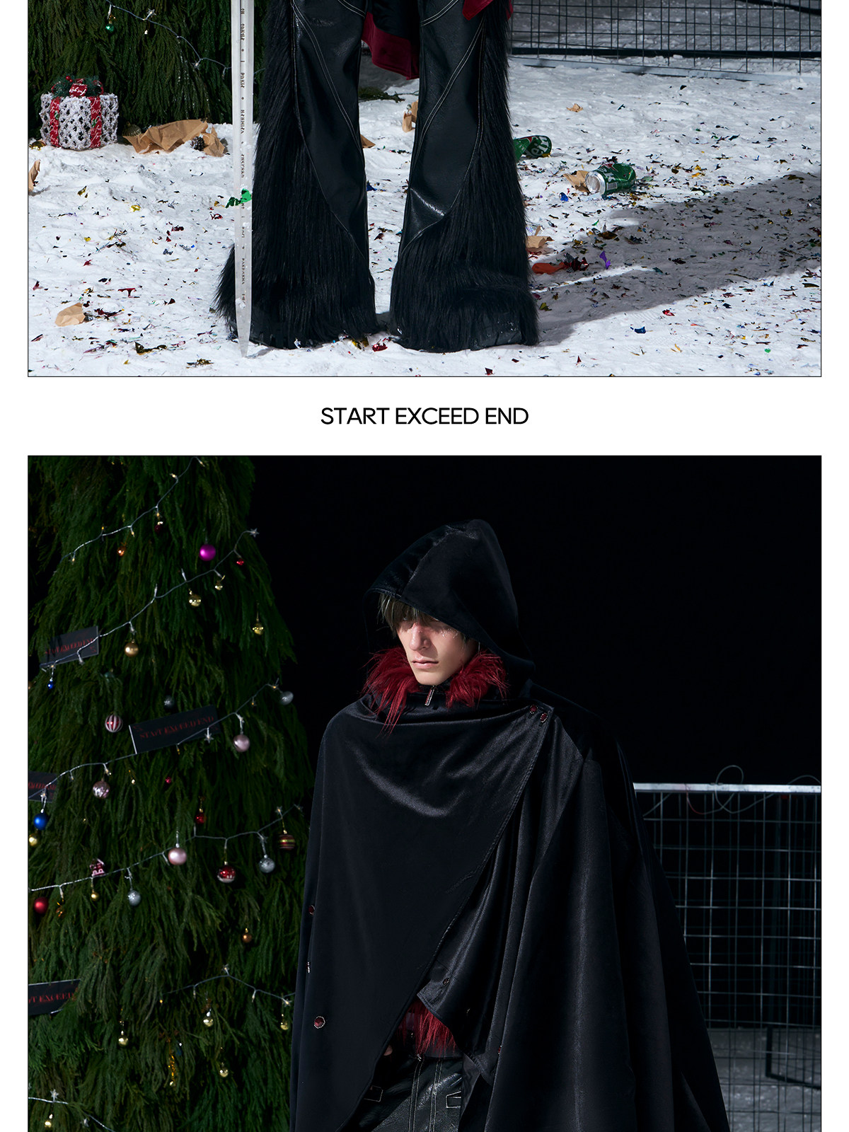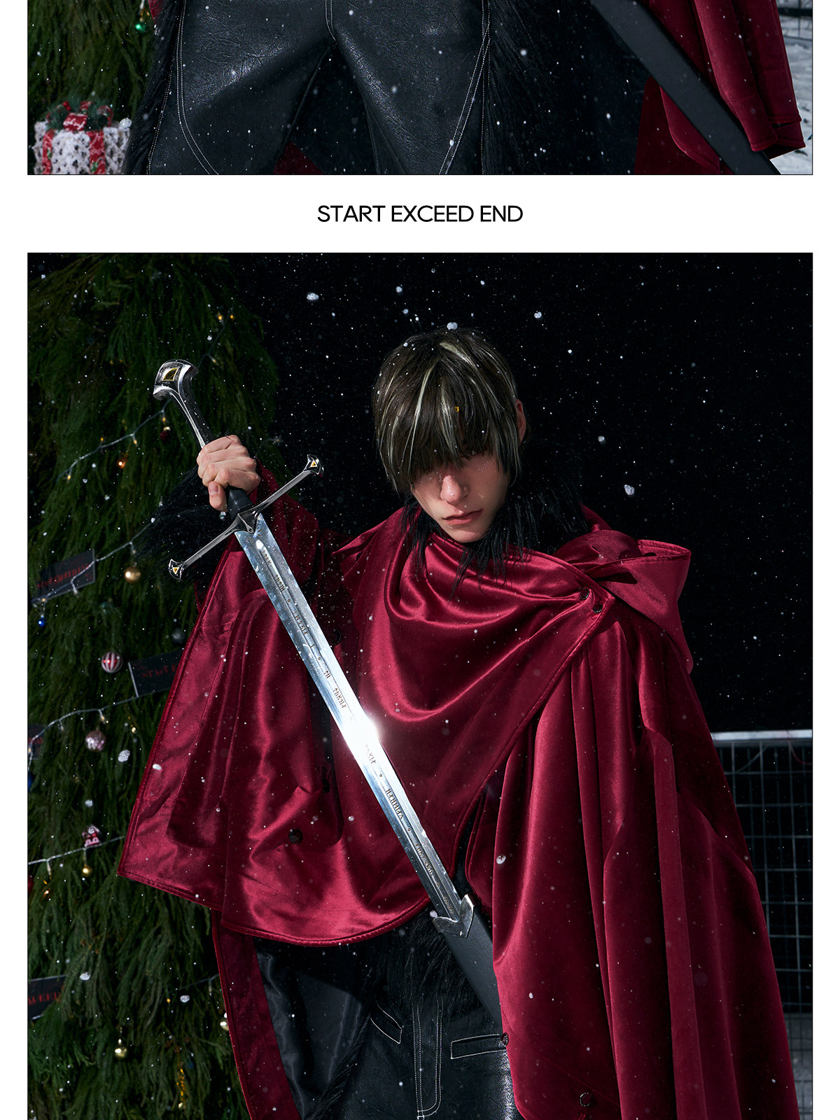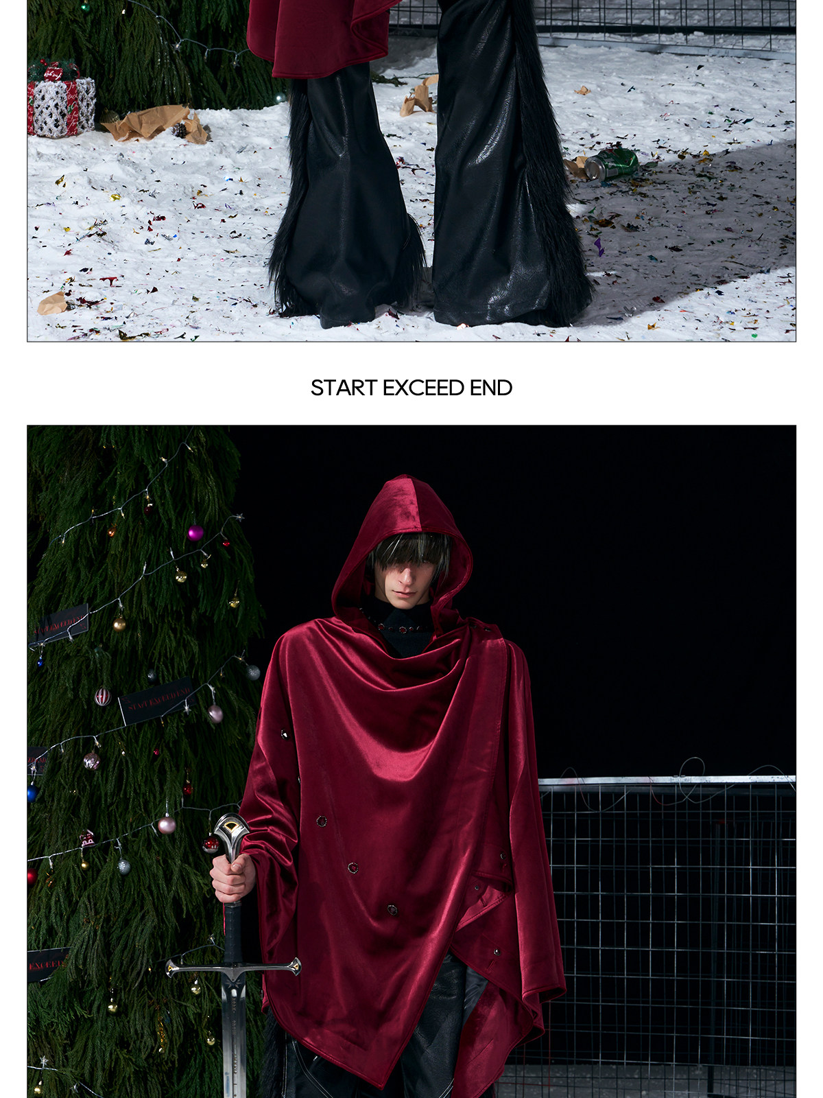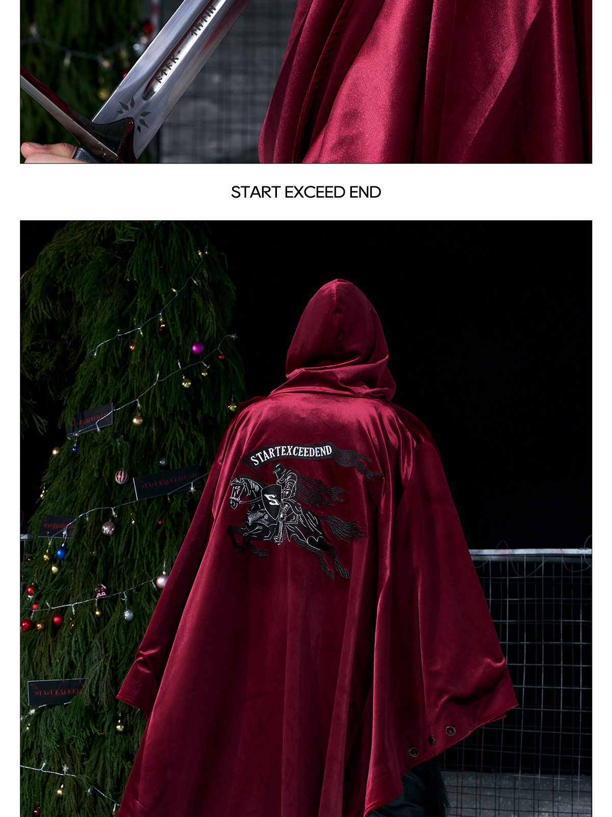 Embroidery Velvet Medieval Hooded Coat WN22728
