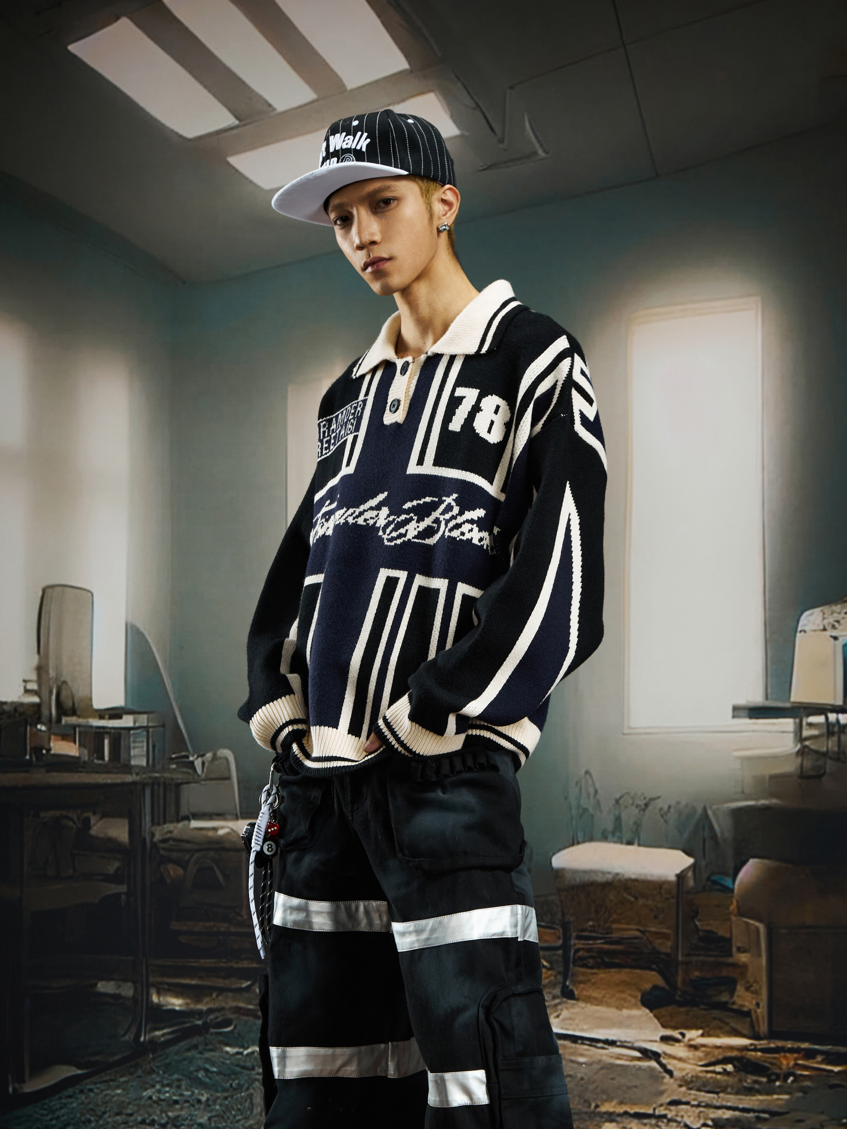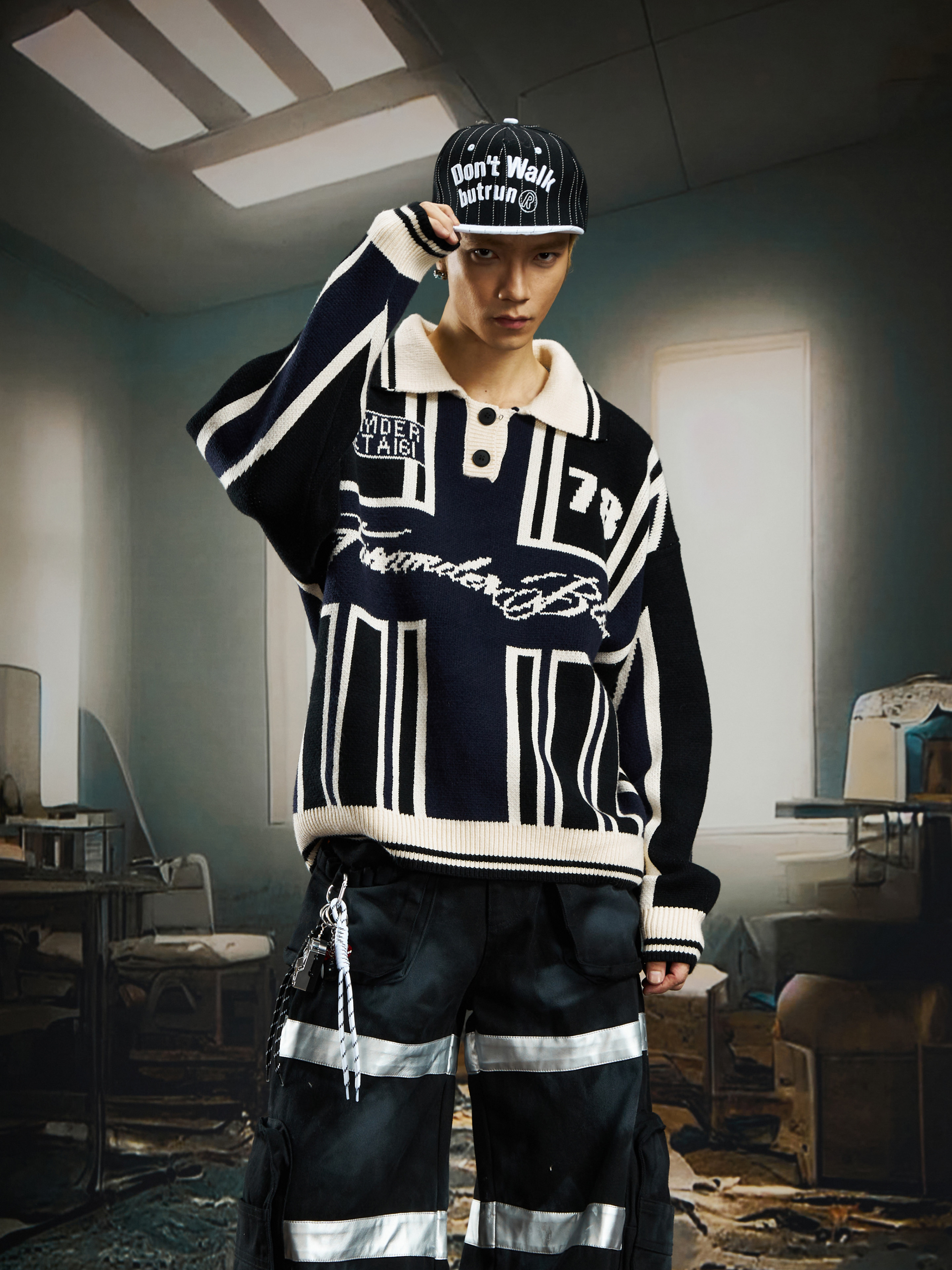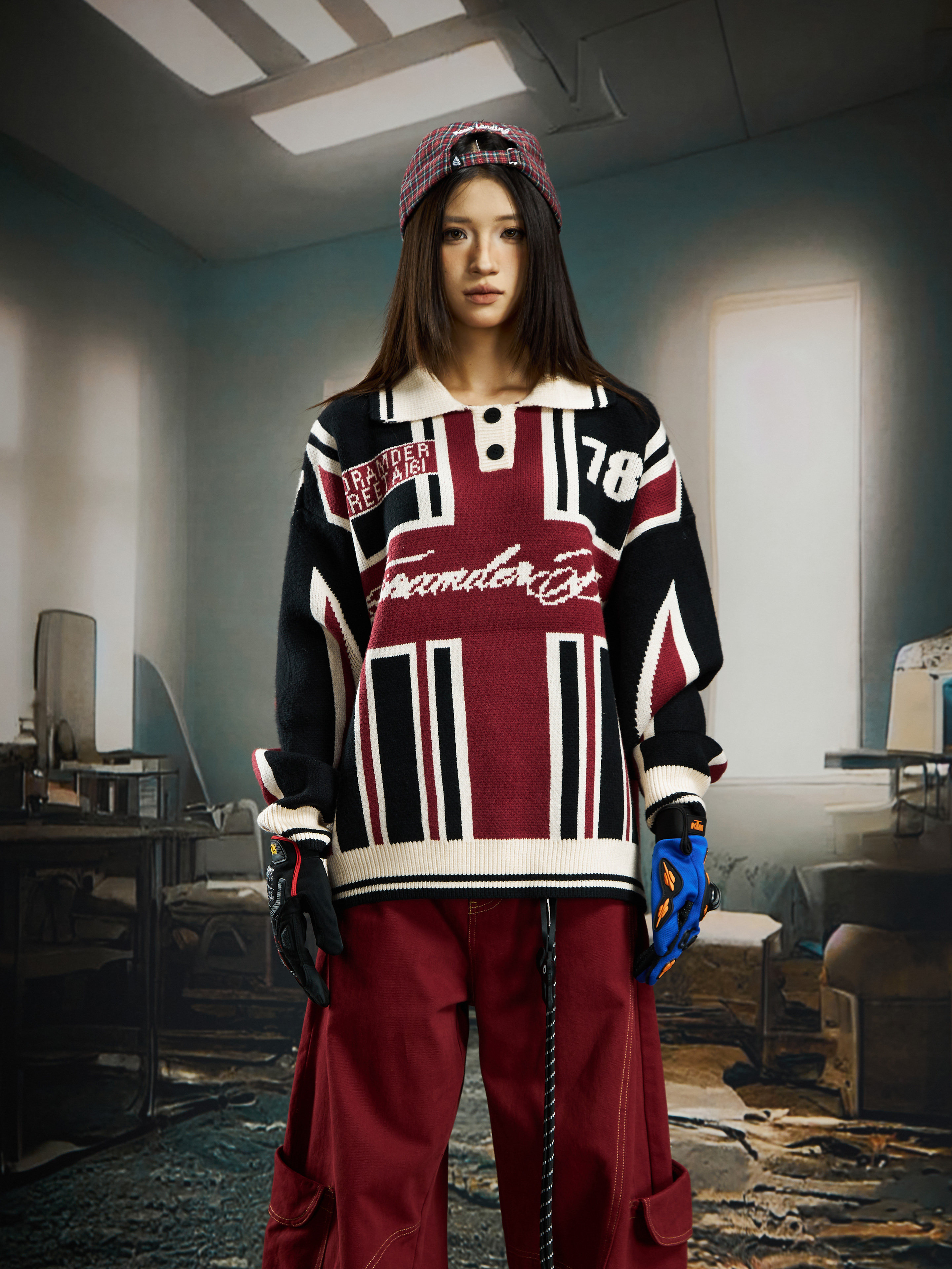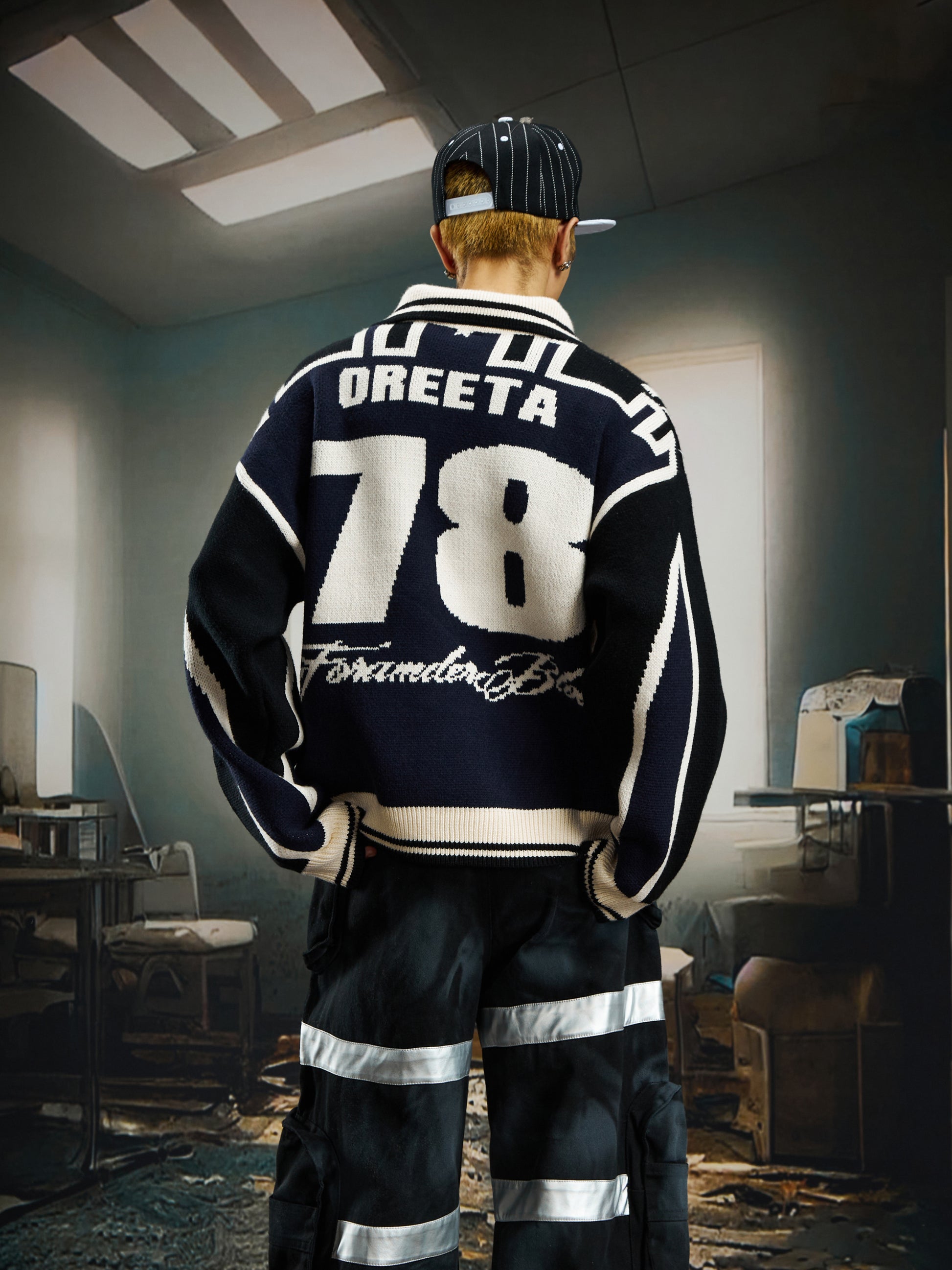 Contrast Jersey Style Oversize Sporty Knit Sweater WN22746