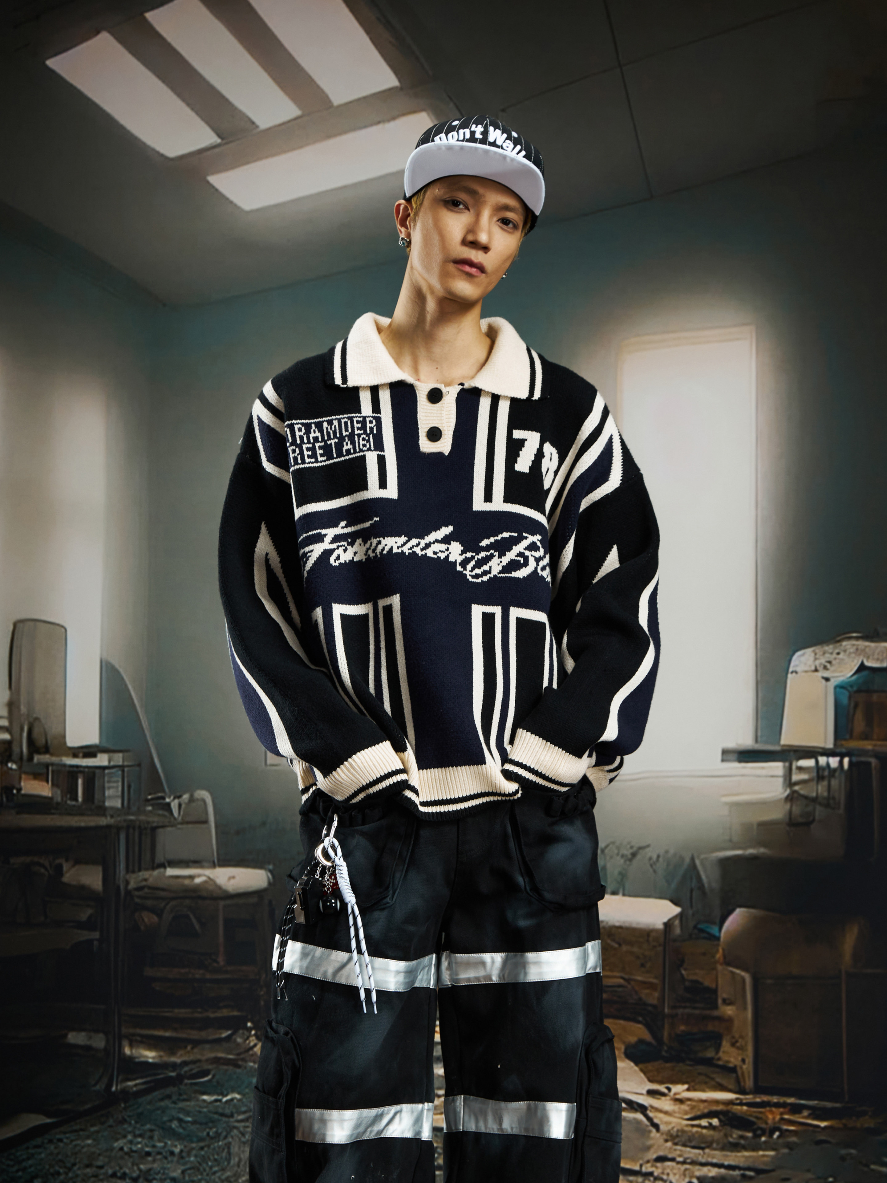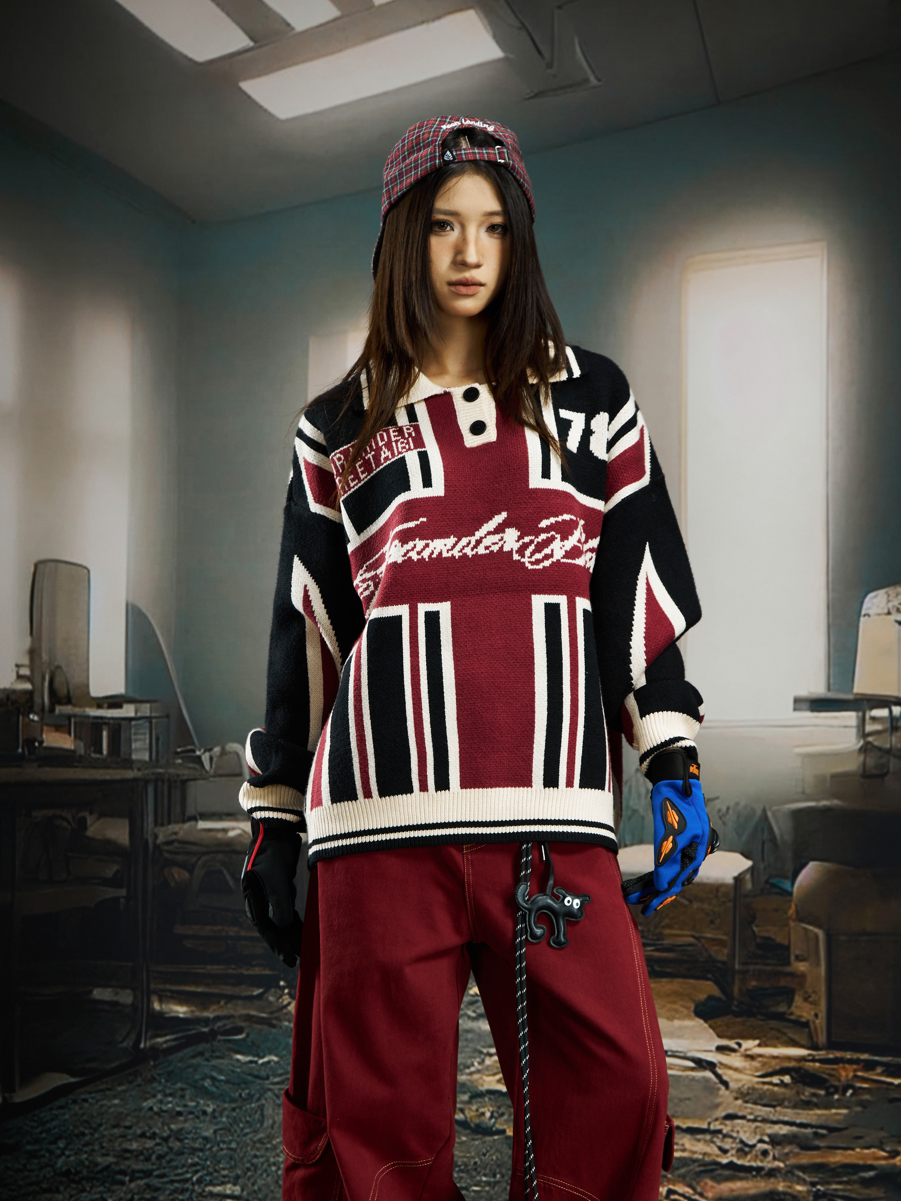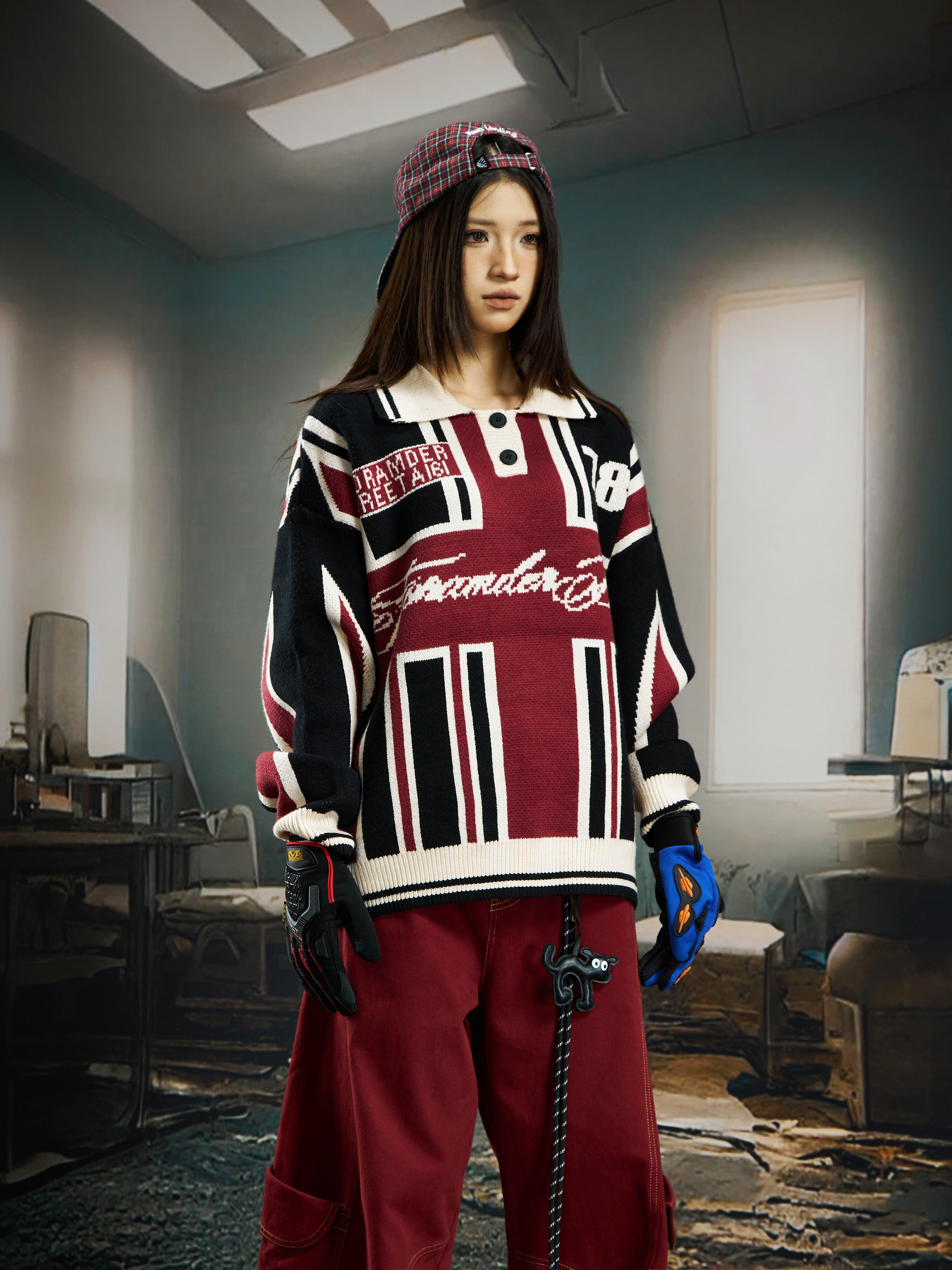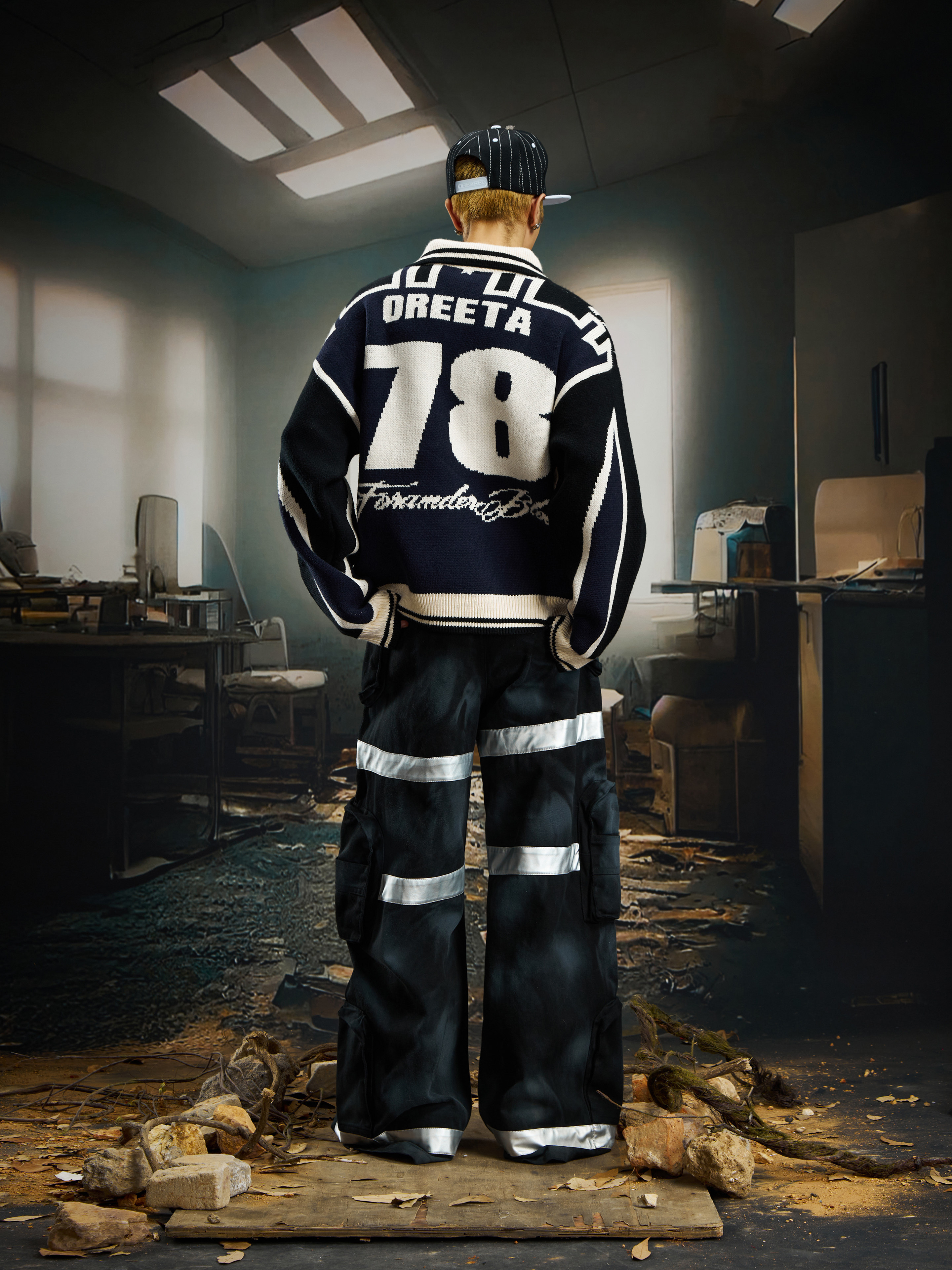 Contrast Jersey Style Oversize Sporty Knit Sweater WN22746