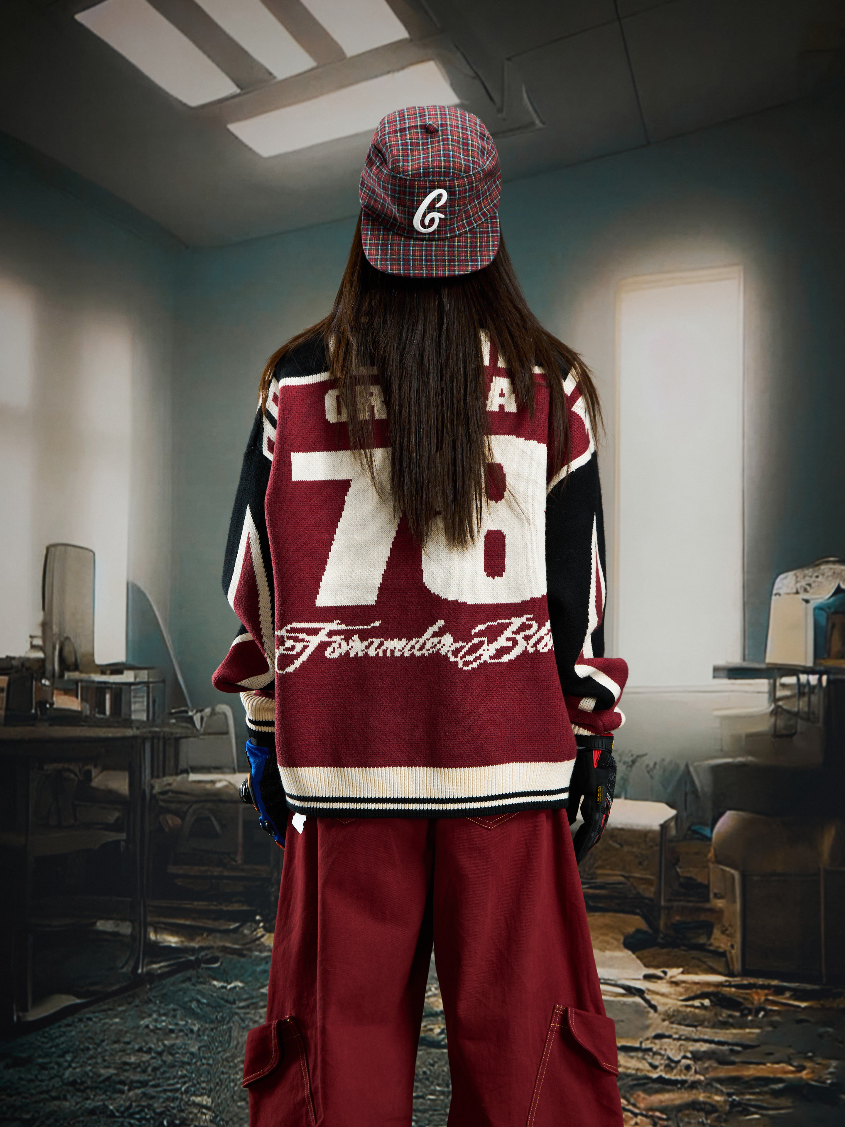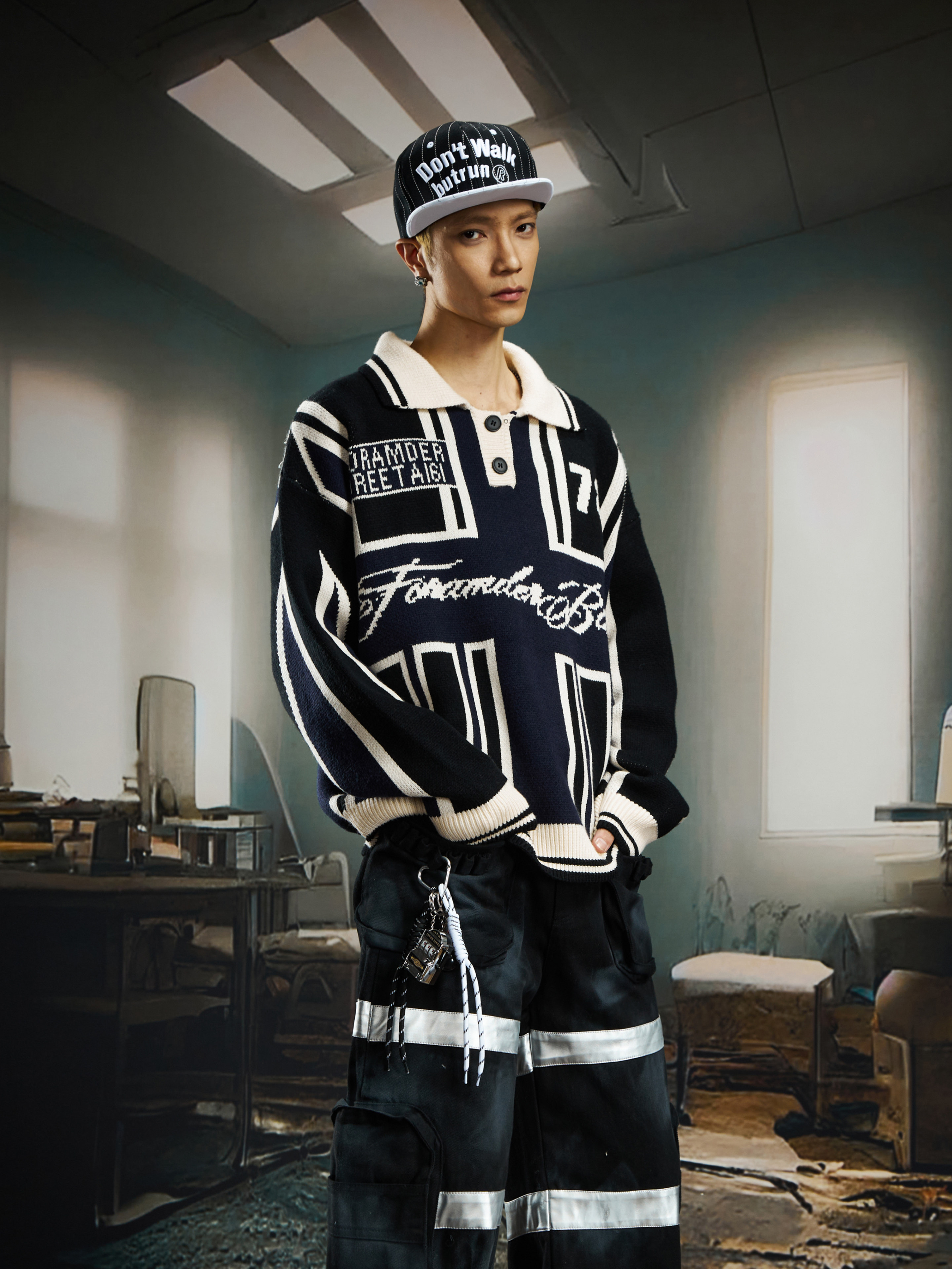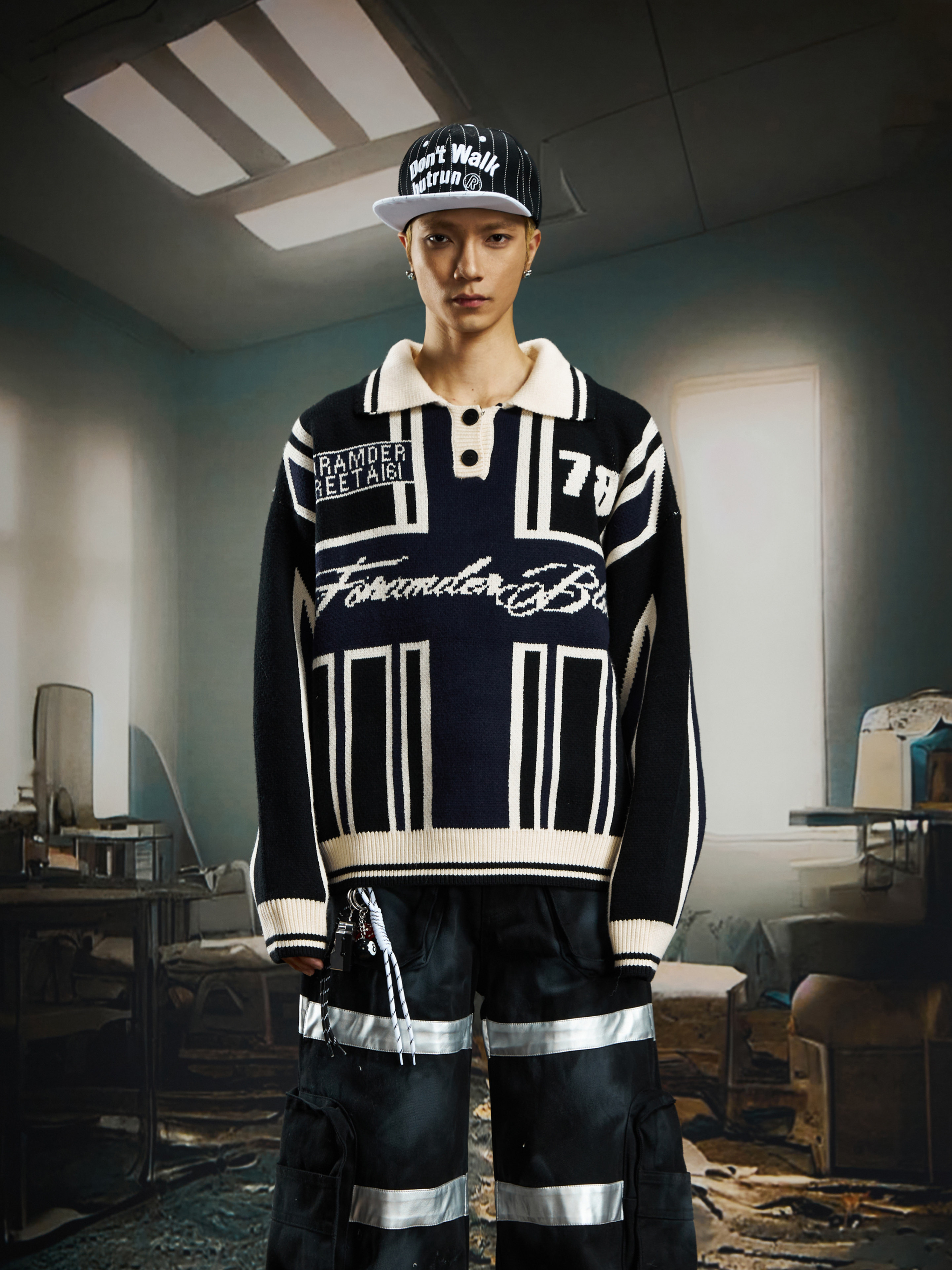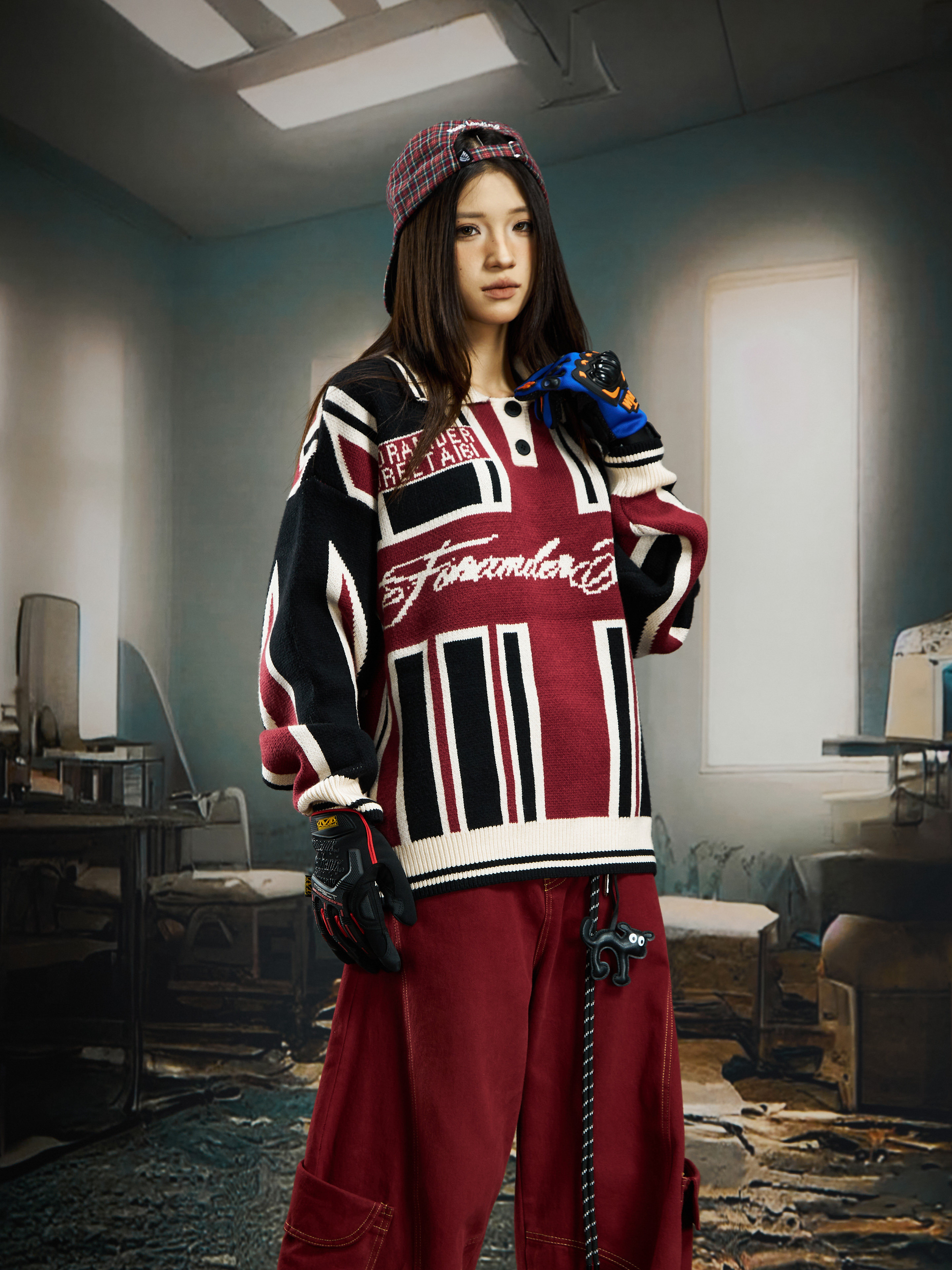 Contrast Jersey Style Oversize Sporty Knit Sweater WN22746