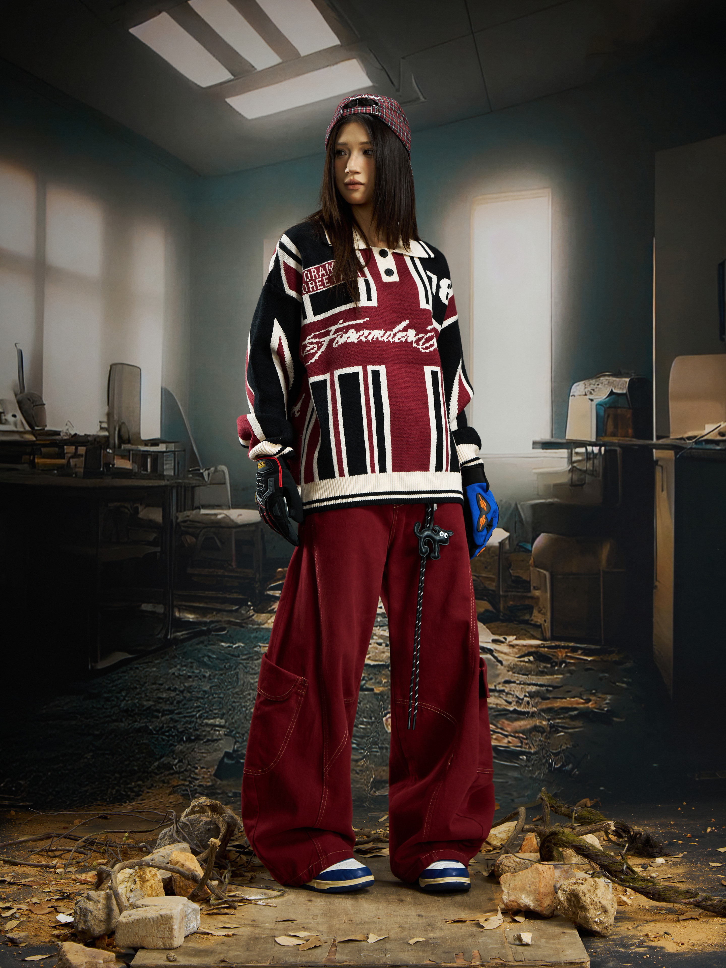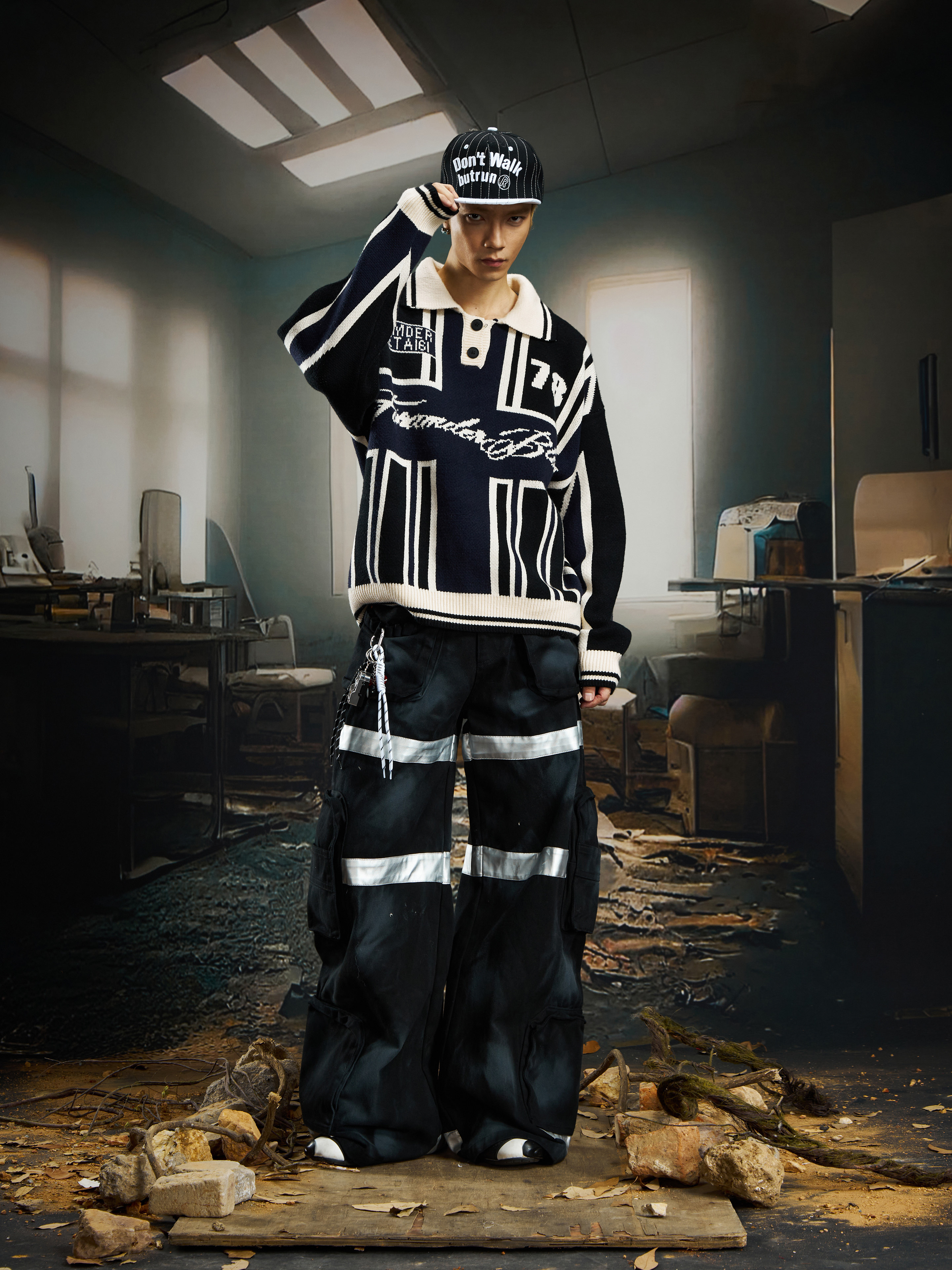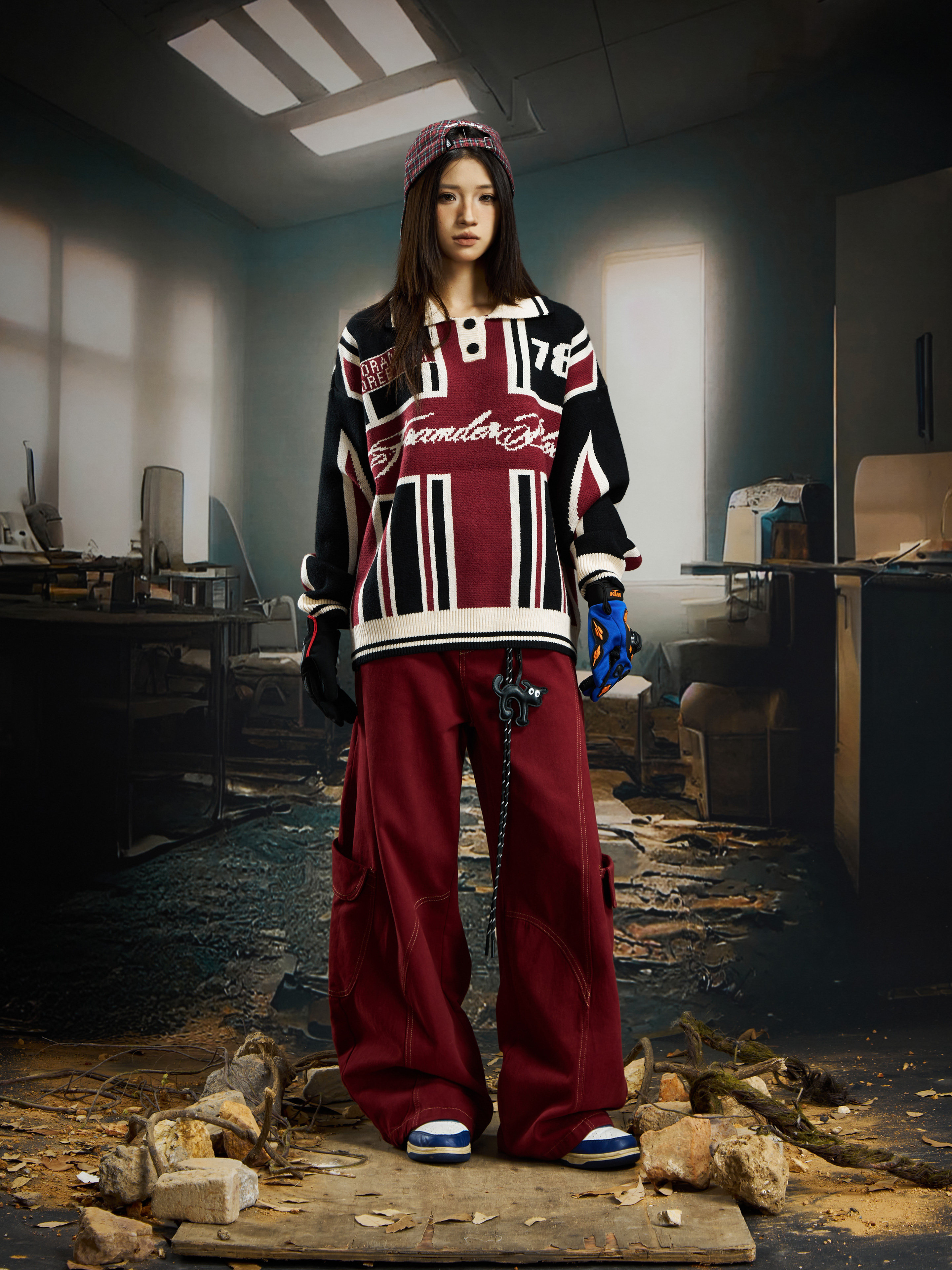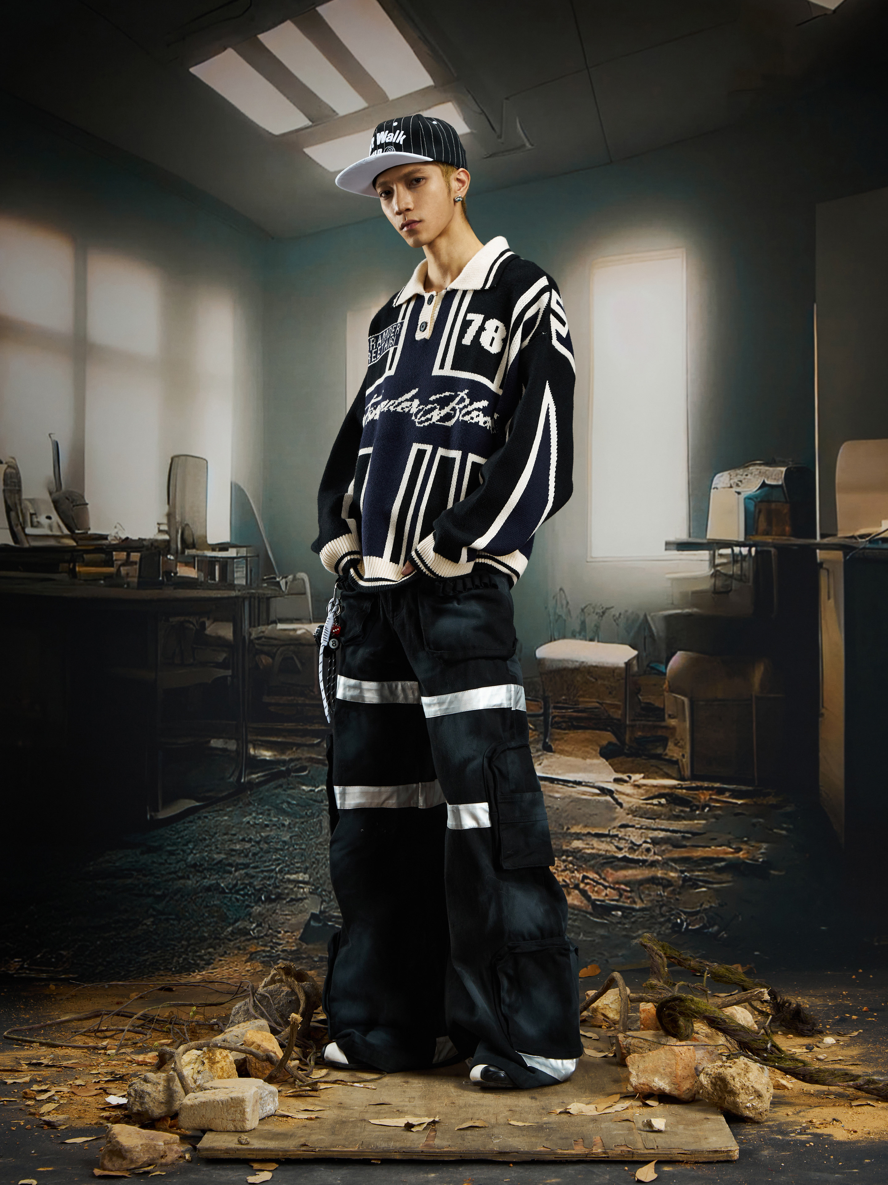Contrast Jersey Style Oversize Sporty Knit Sweater WN22746