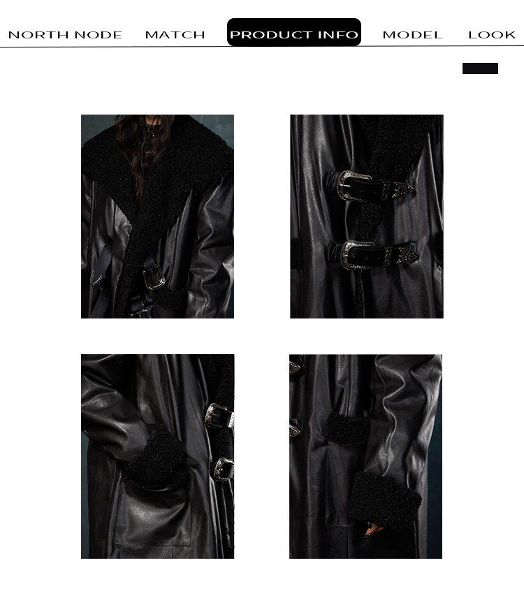 Metal Buckle Lapel Shearling Leather Coat WN22825