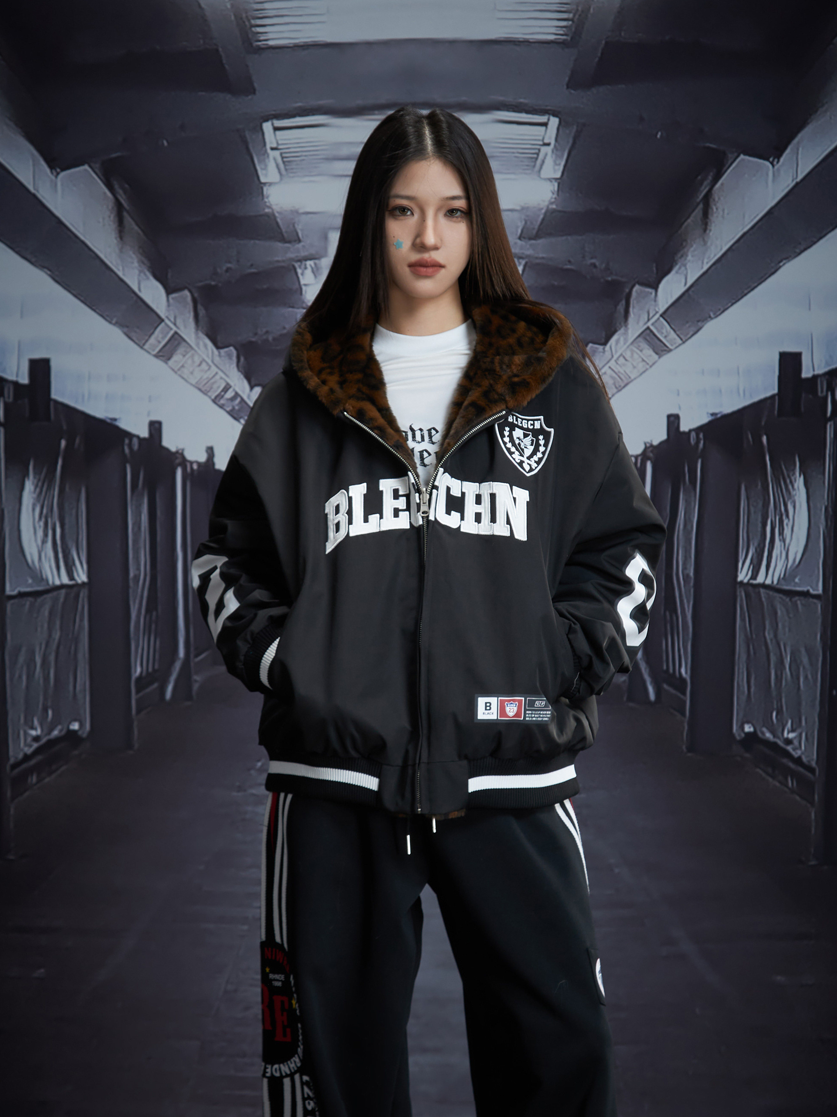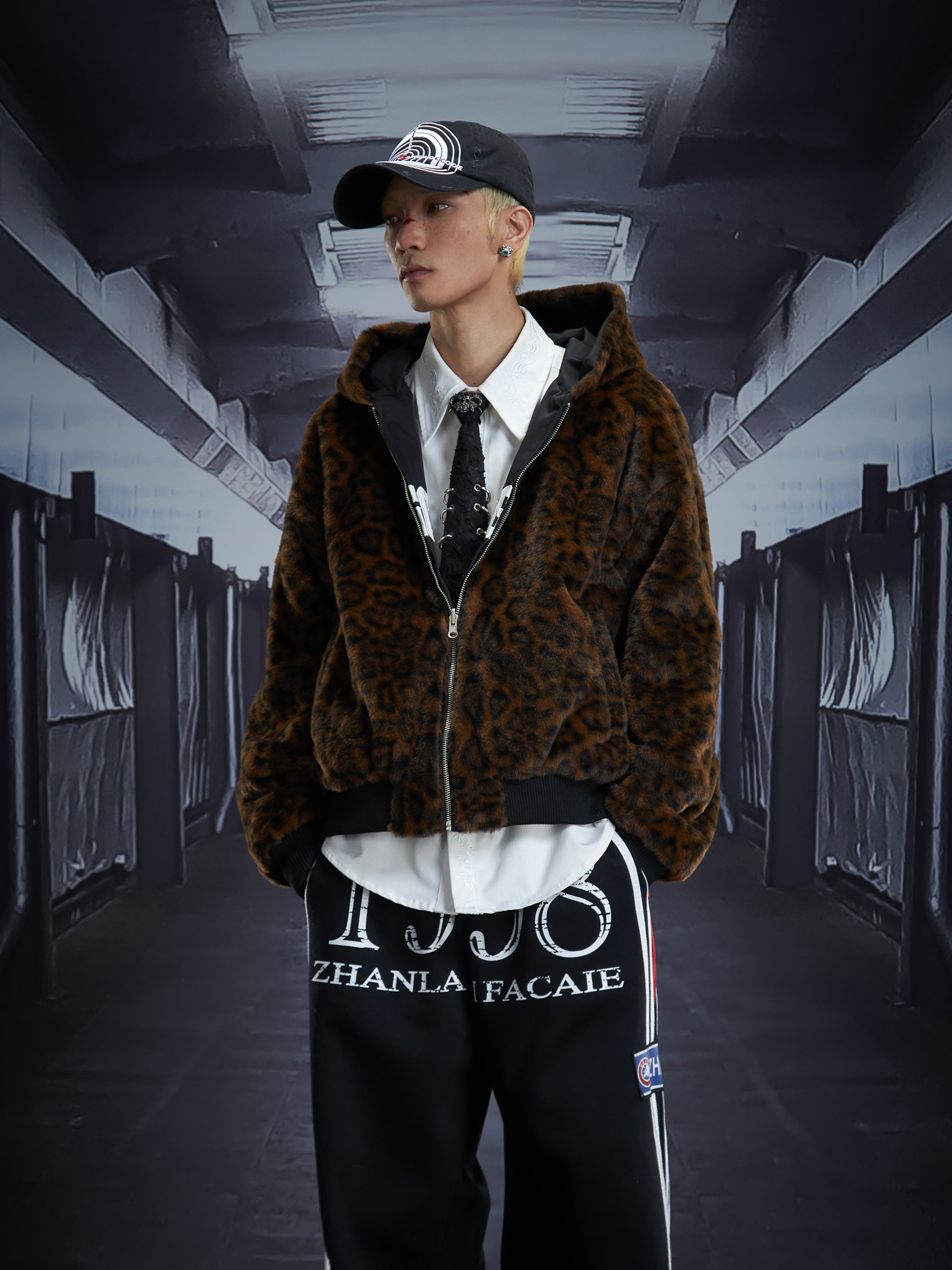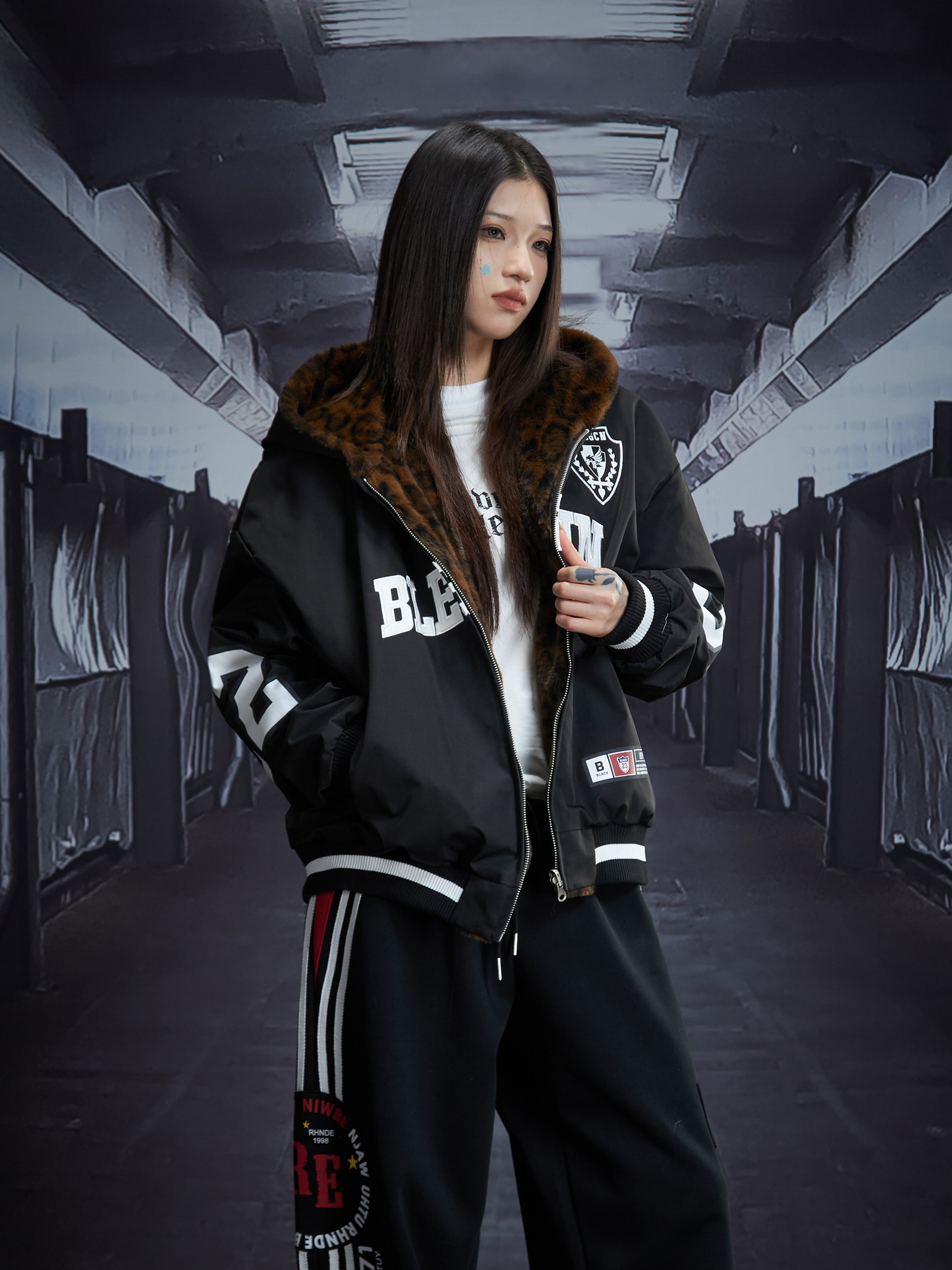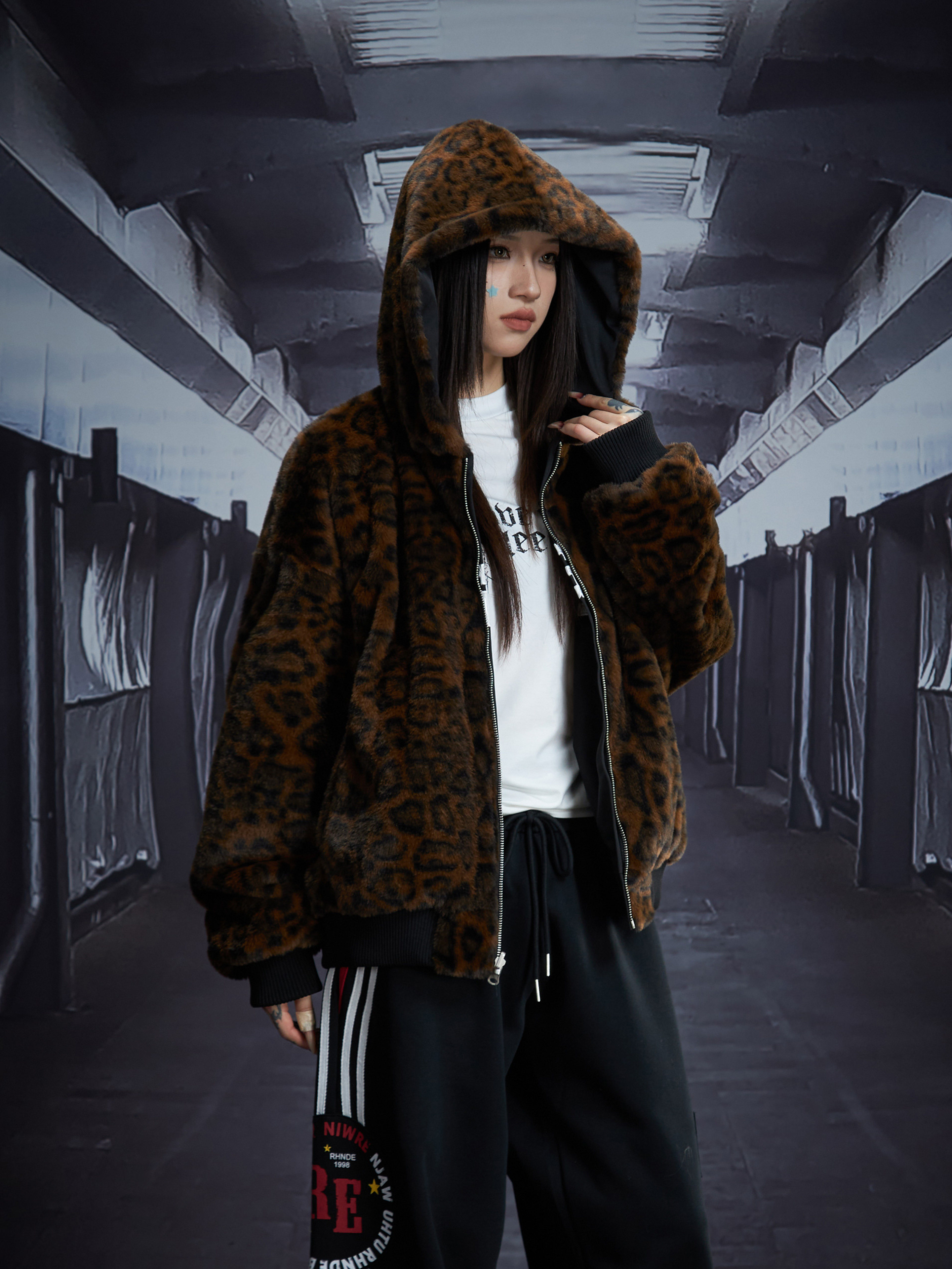 Reversible Jersey Style Leopard Fake Fur Hooded Jacket WN22846