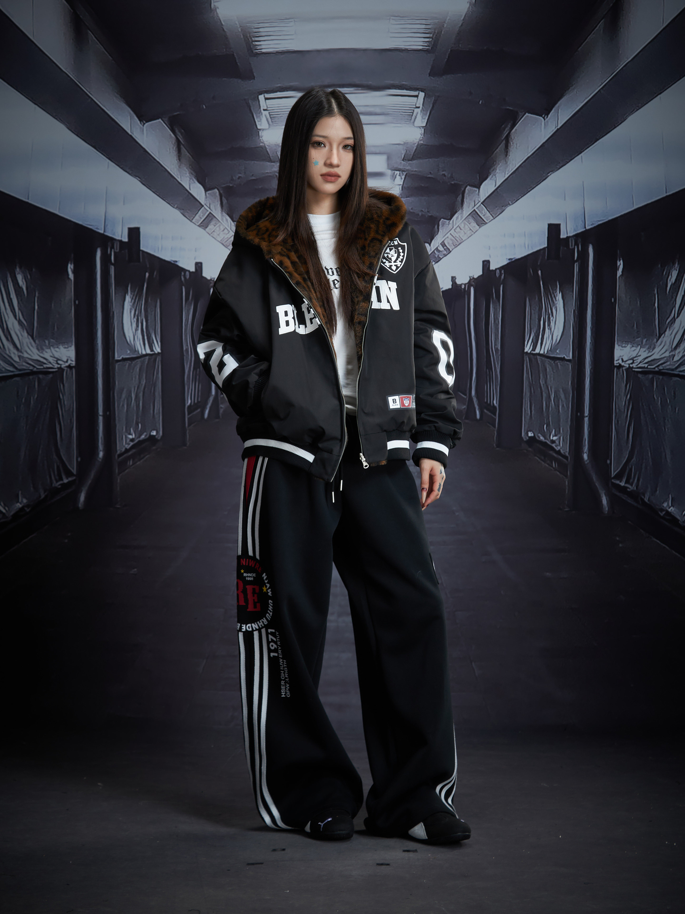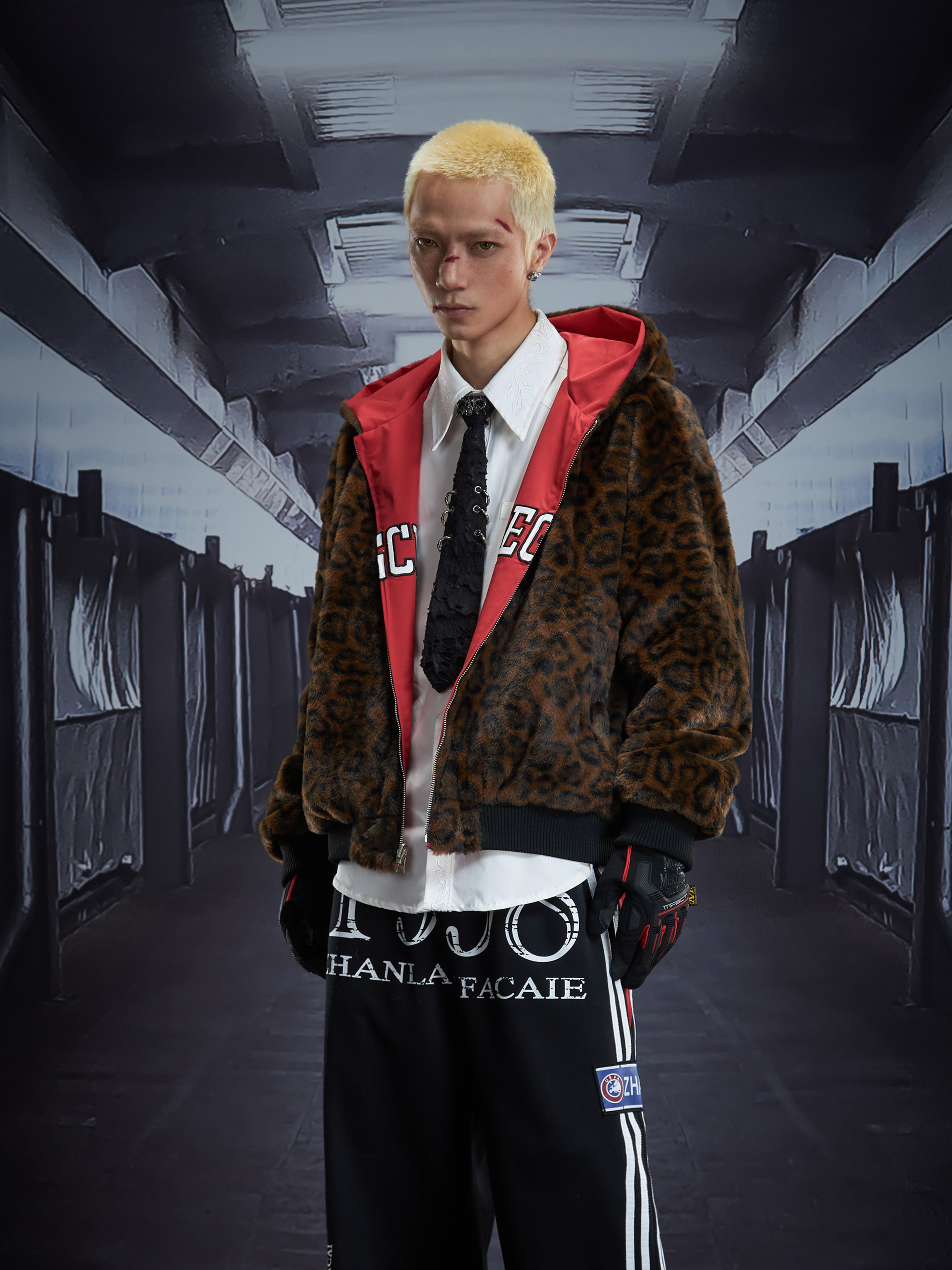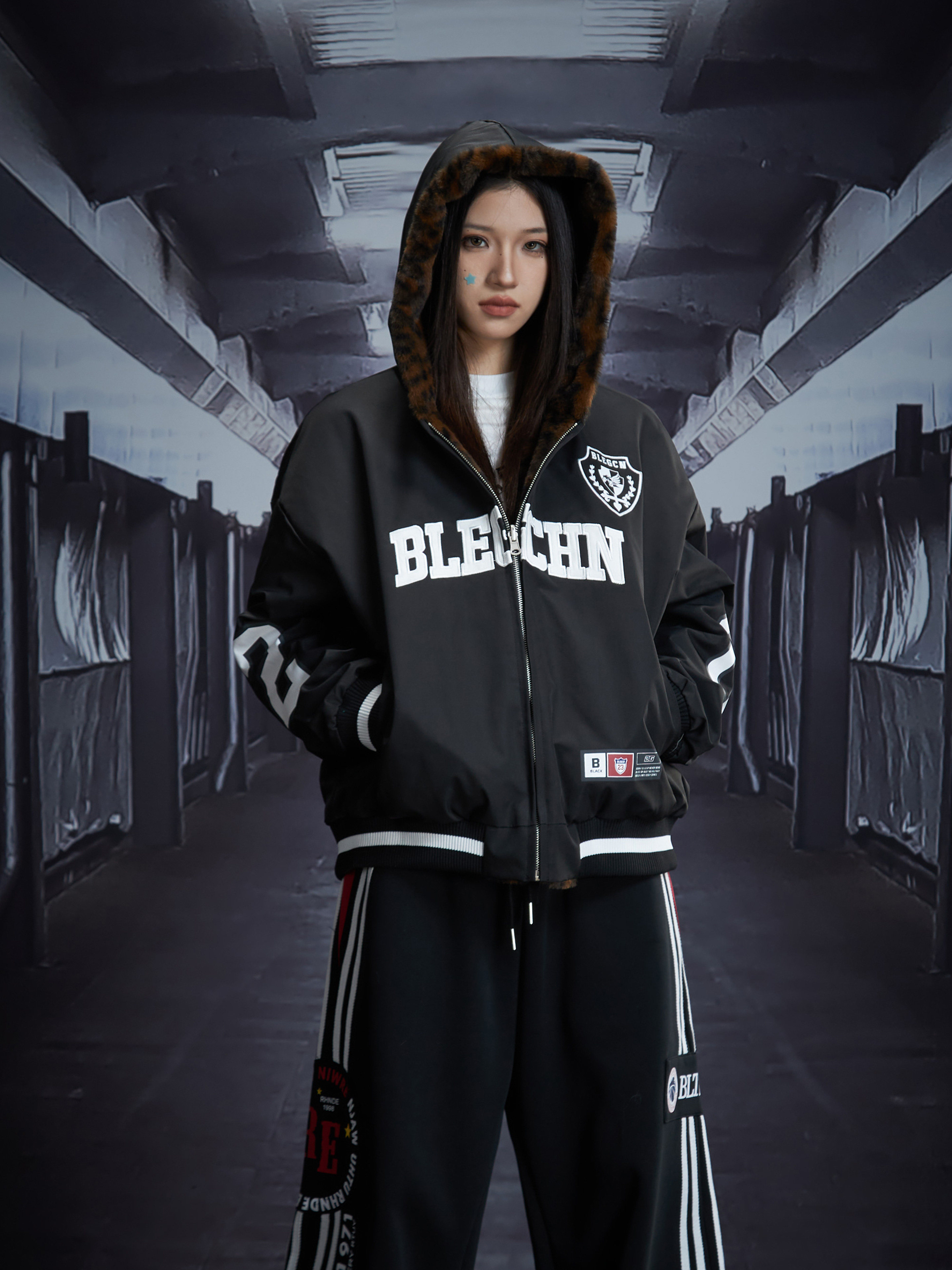 Reversible Jersey Style Leopard Fake Fur Hooded Jacket WN22846