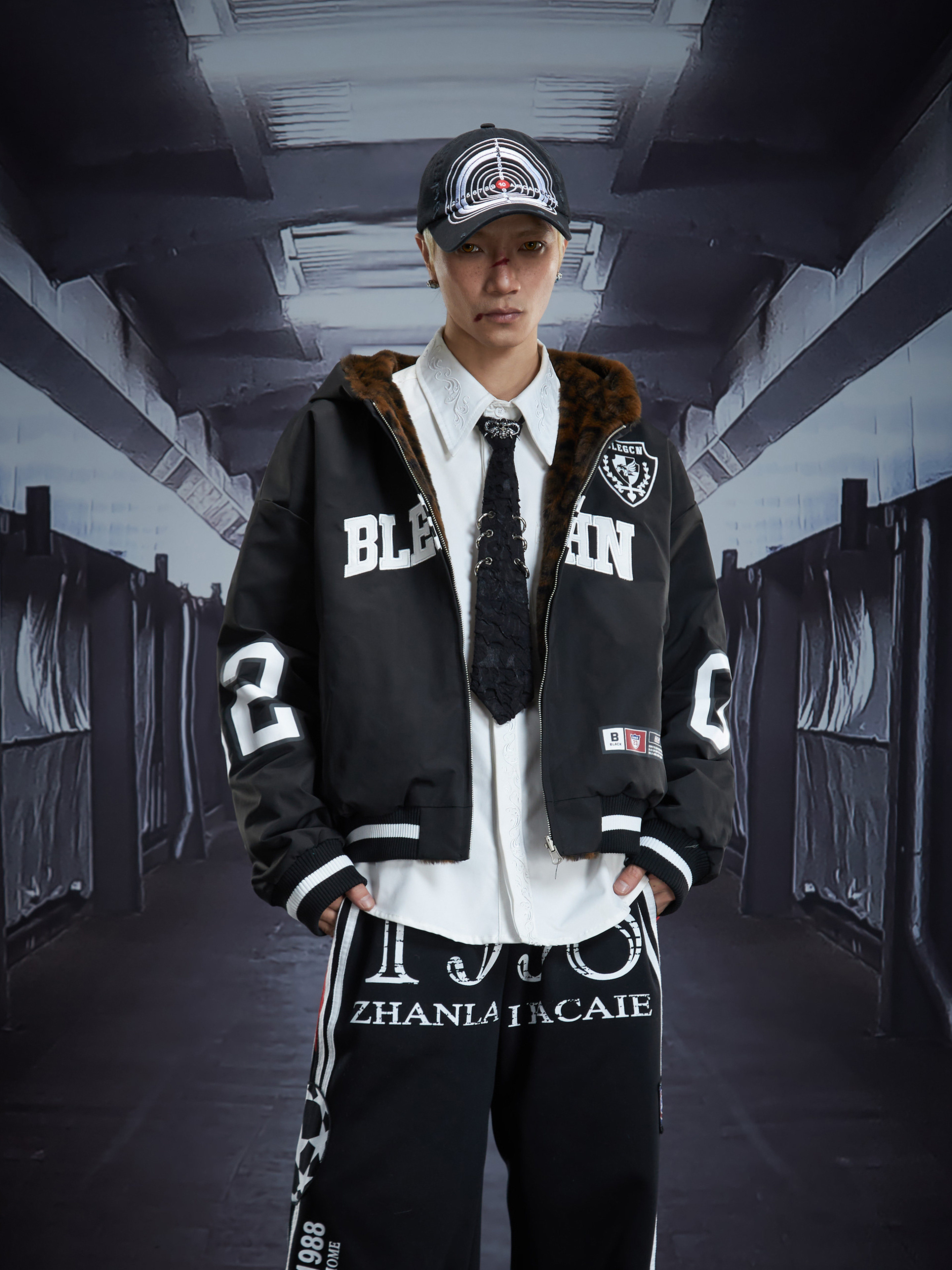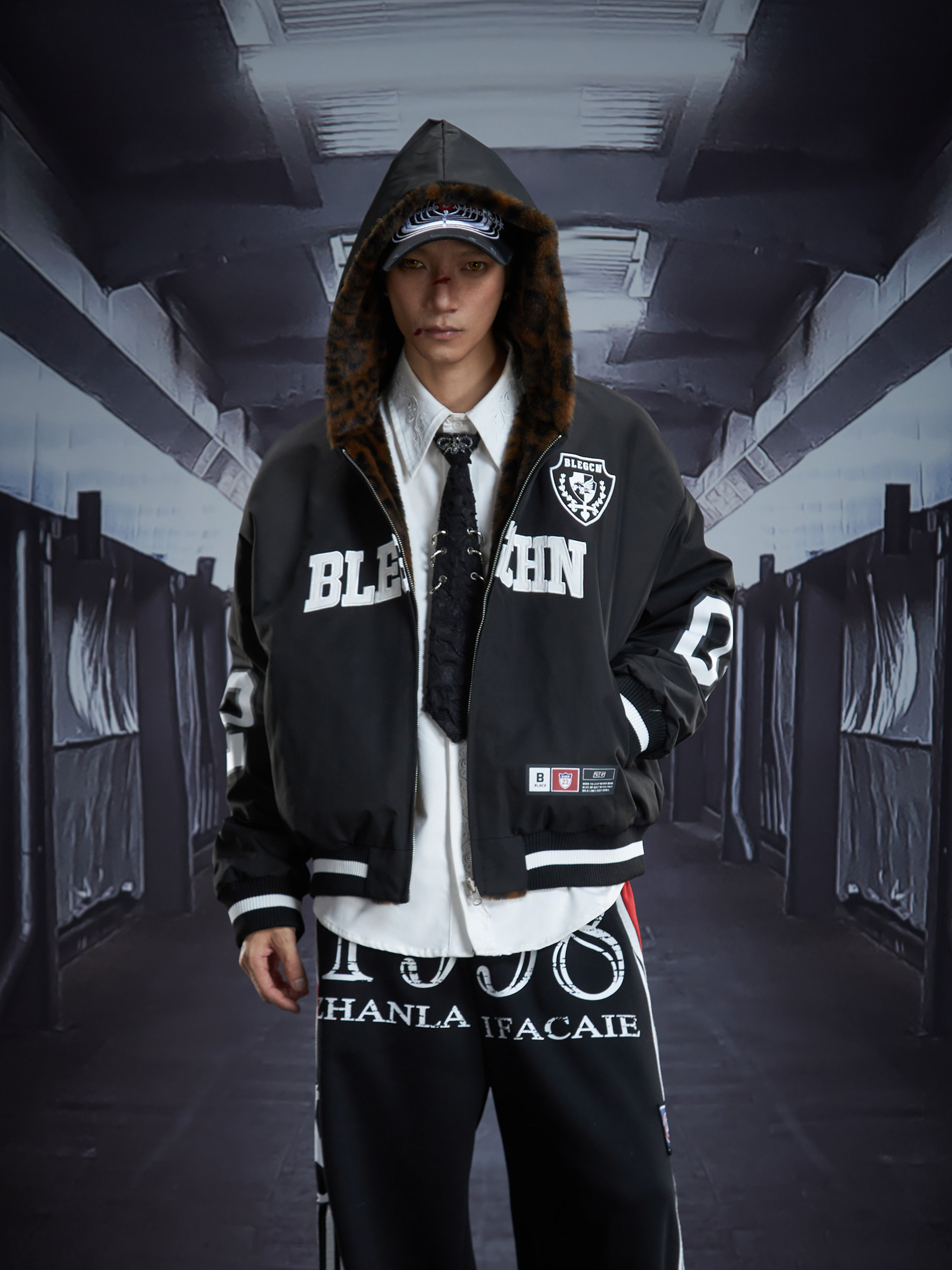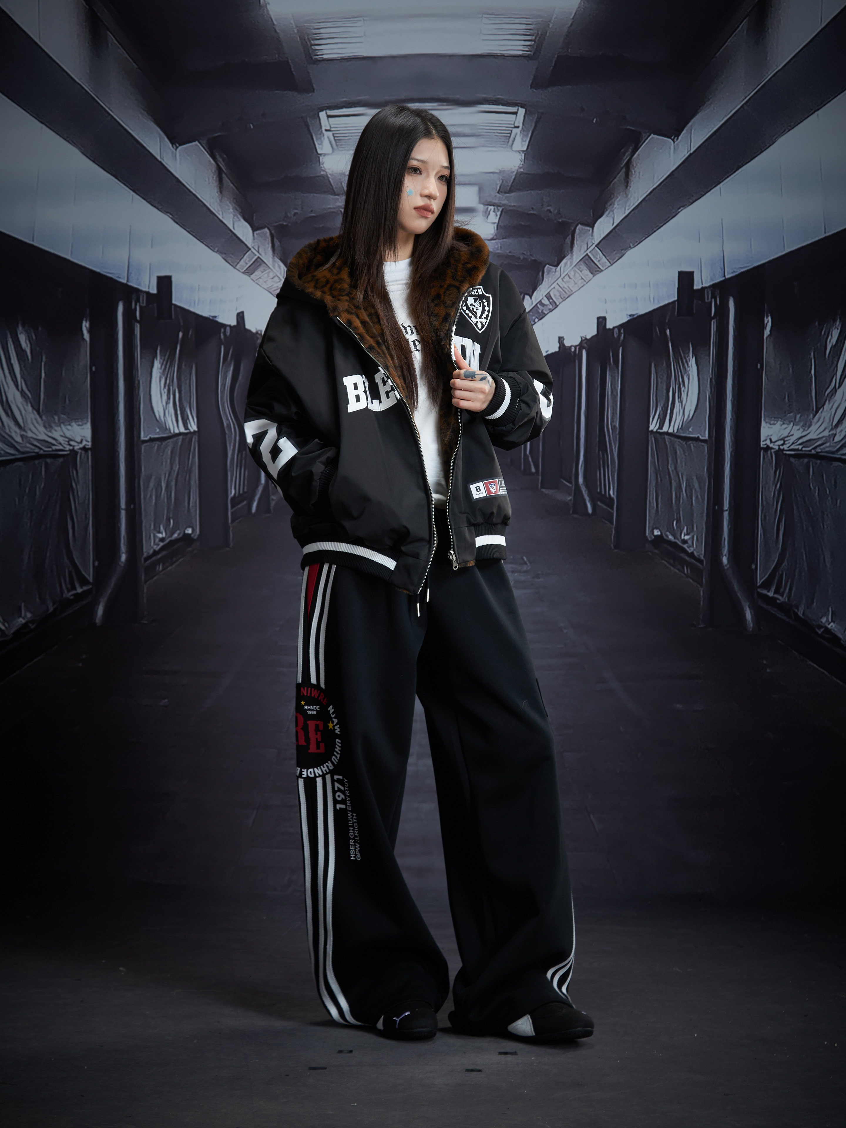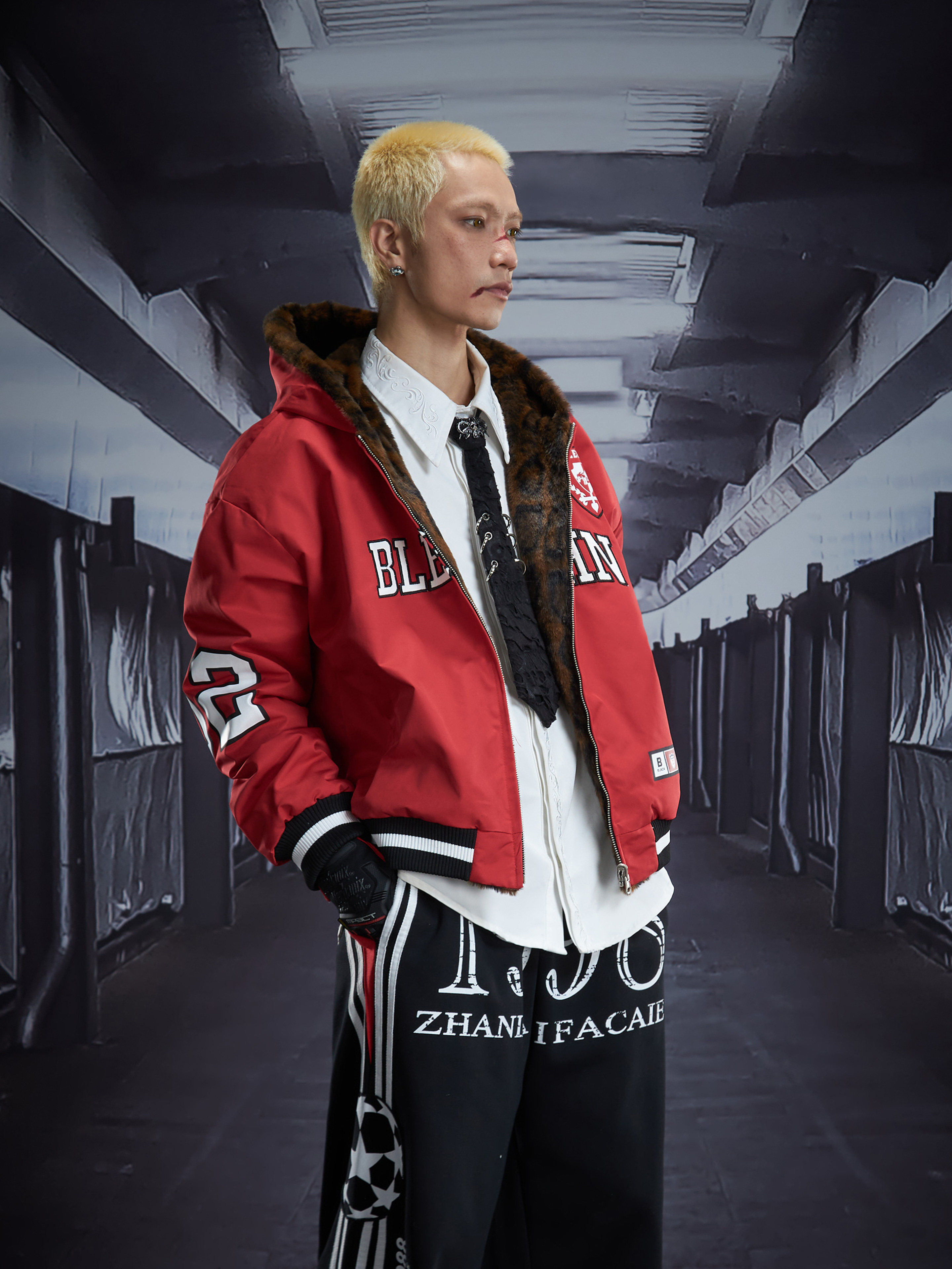 Reversible Jersey Style Leopard Fake Fur Hooded Jacket WN22846