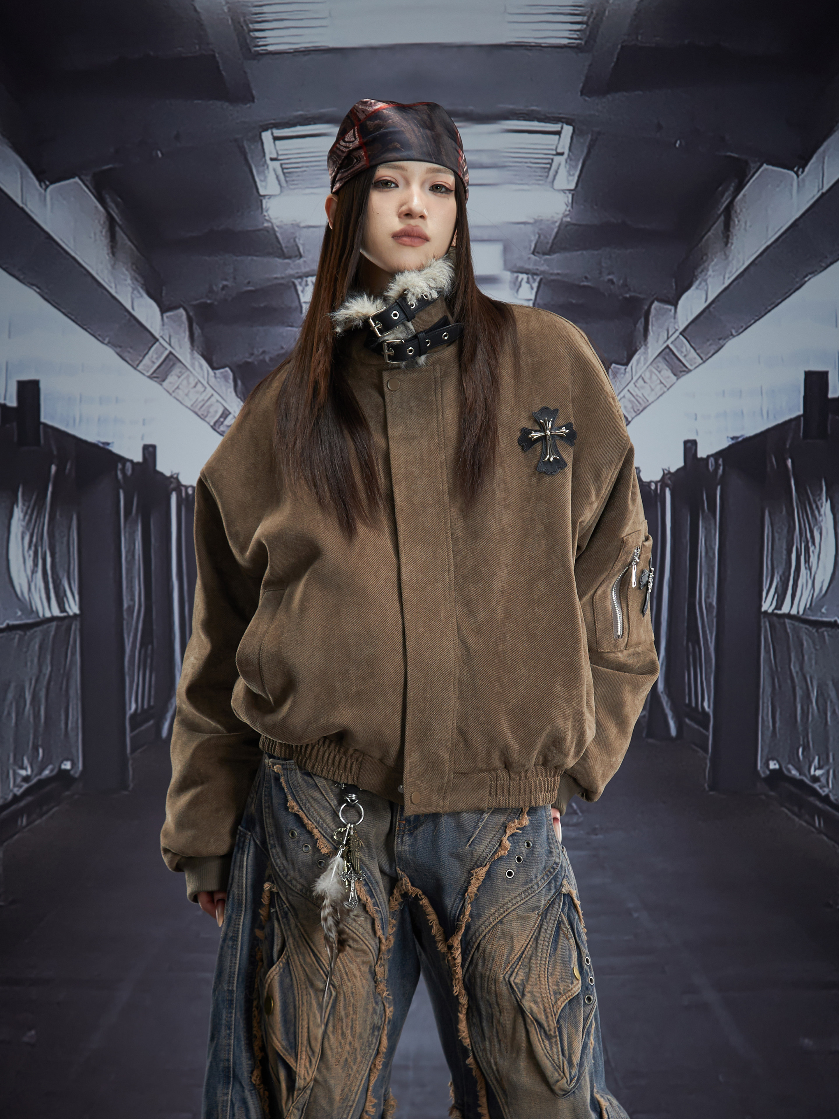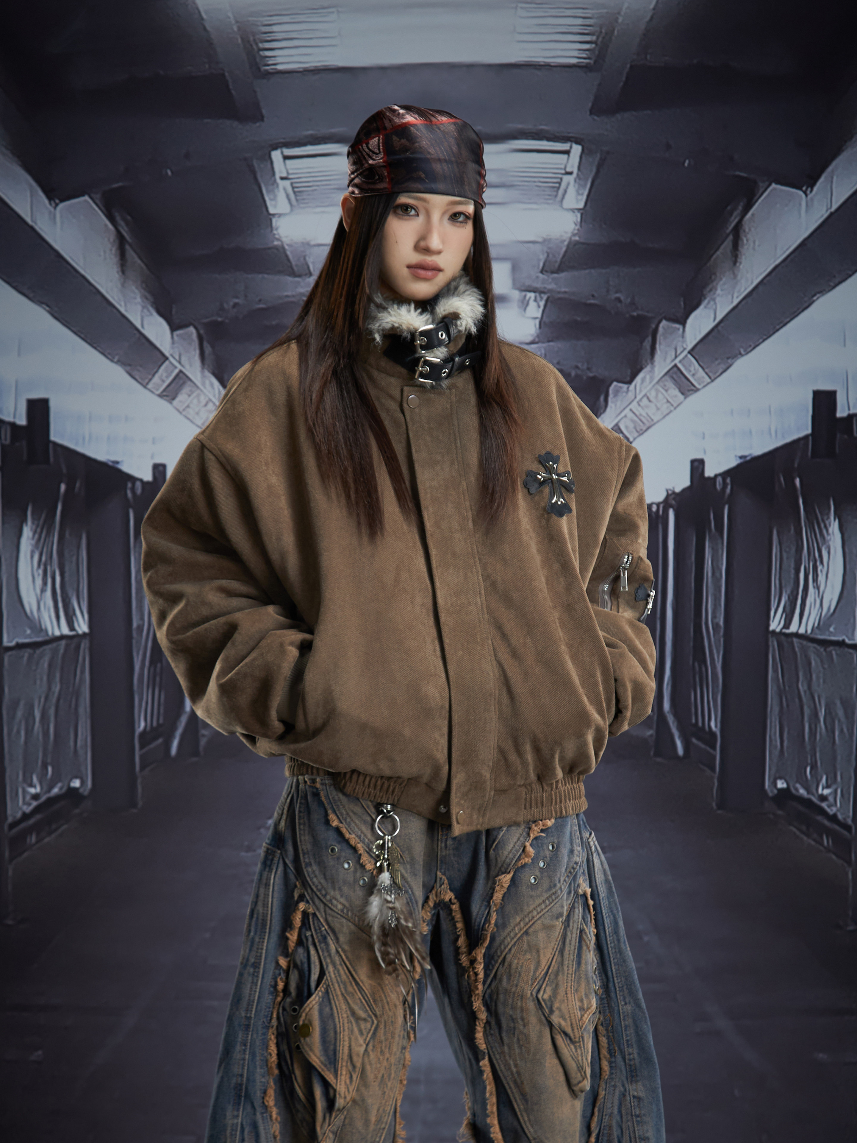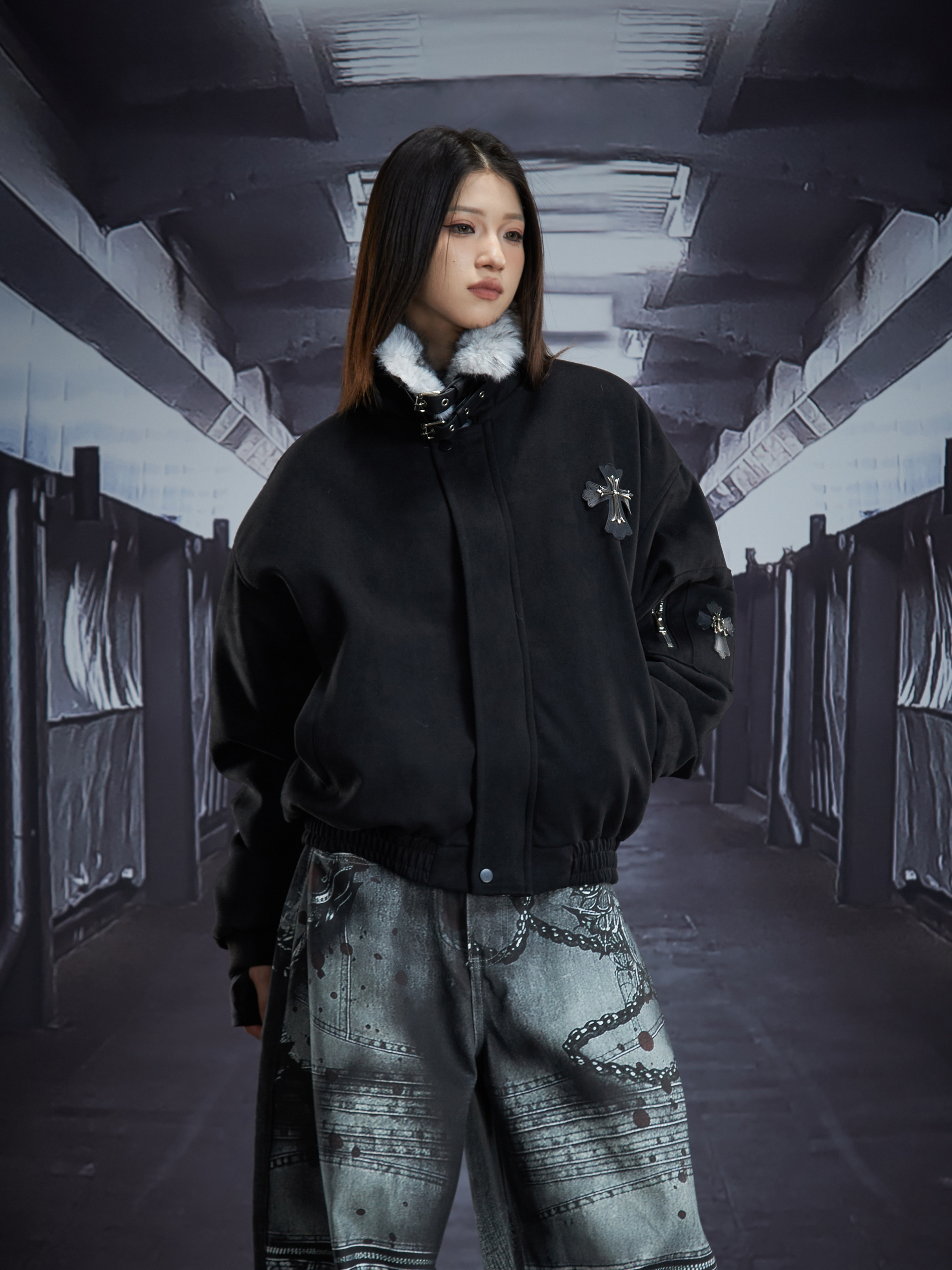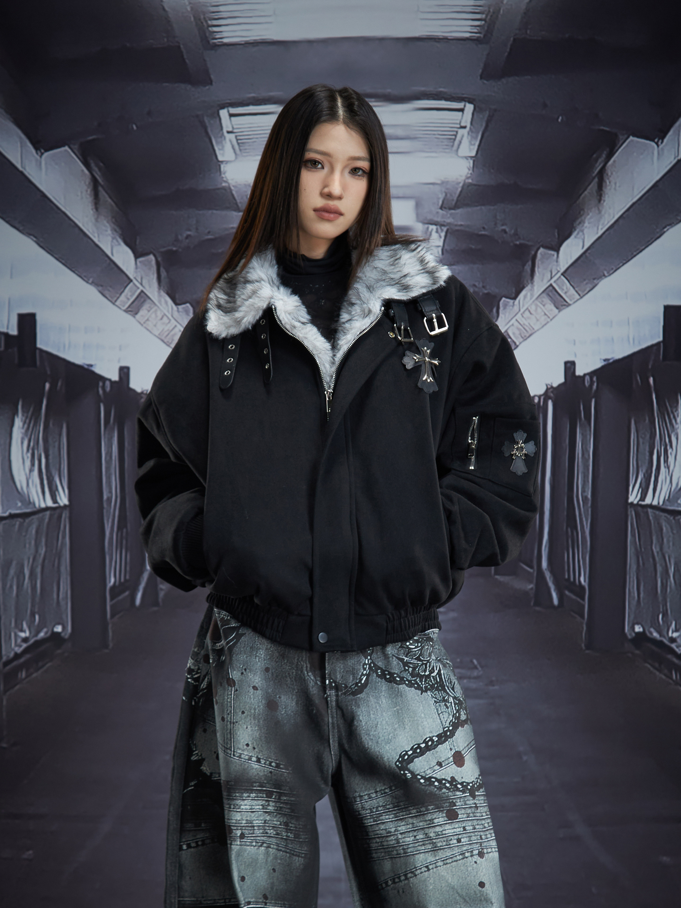 Short Metal Buckle Padded Jacket WN22866