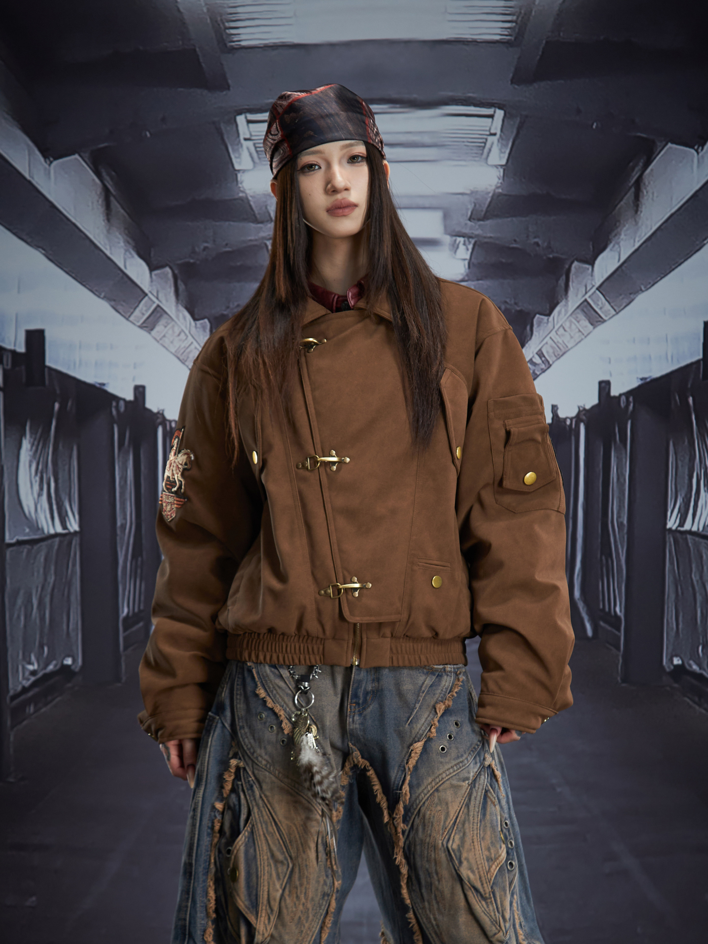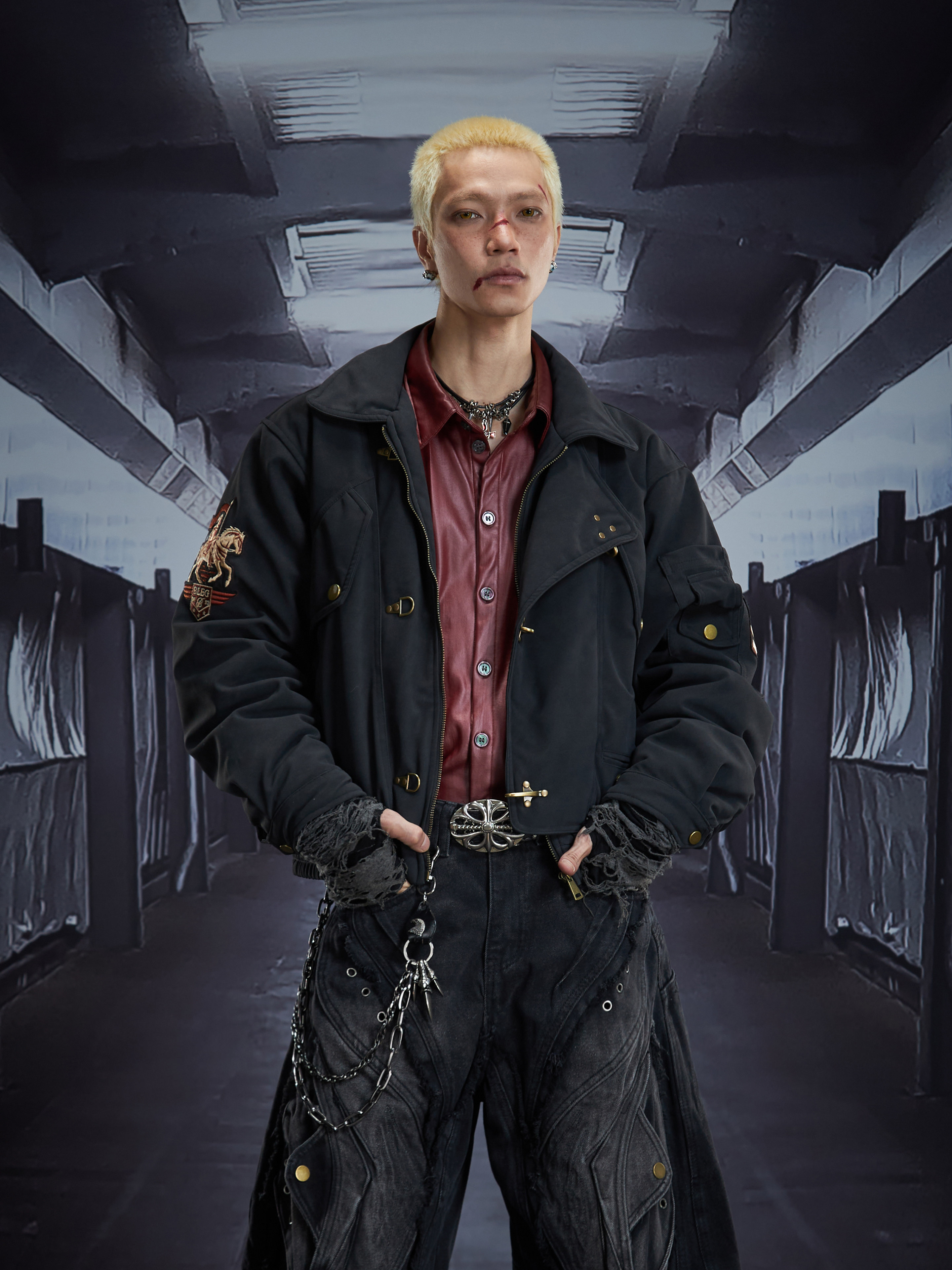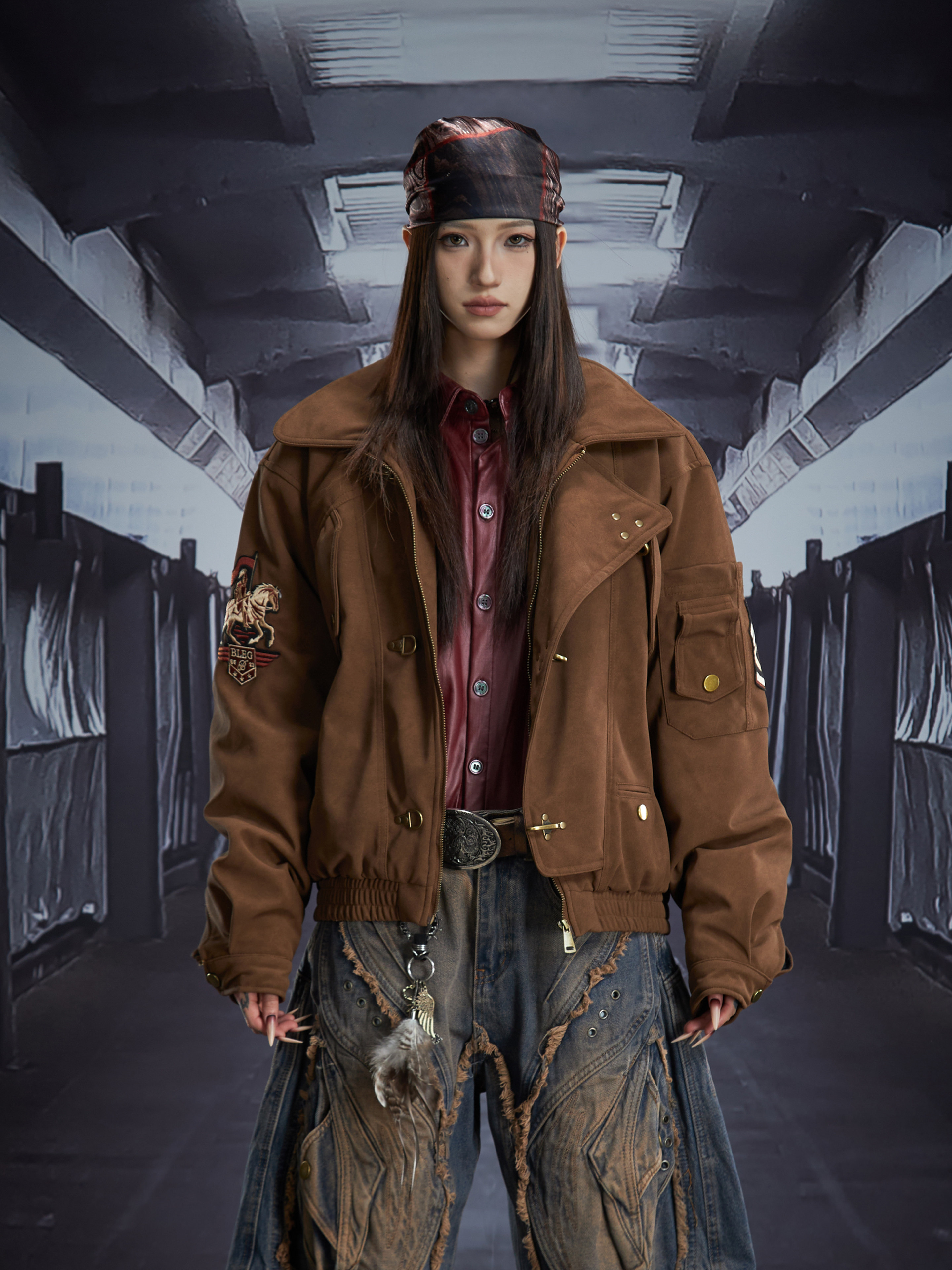 Matte PU Leather Embroidery Lapel Collar White Duck Down Jacket WN22875