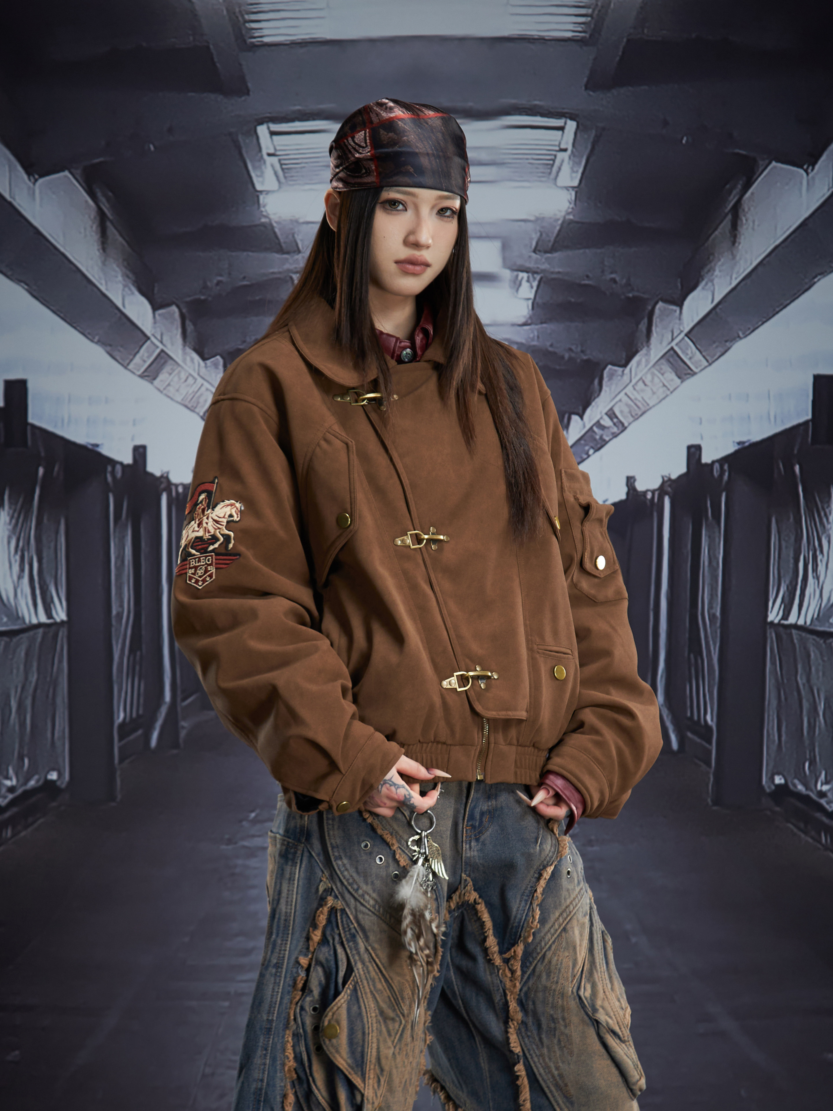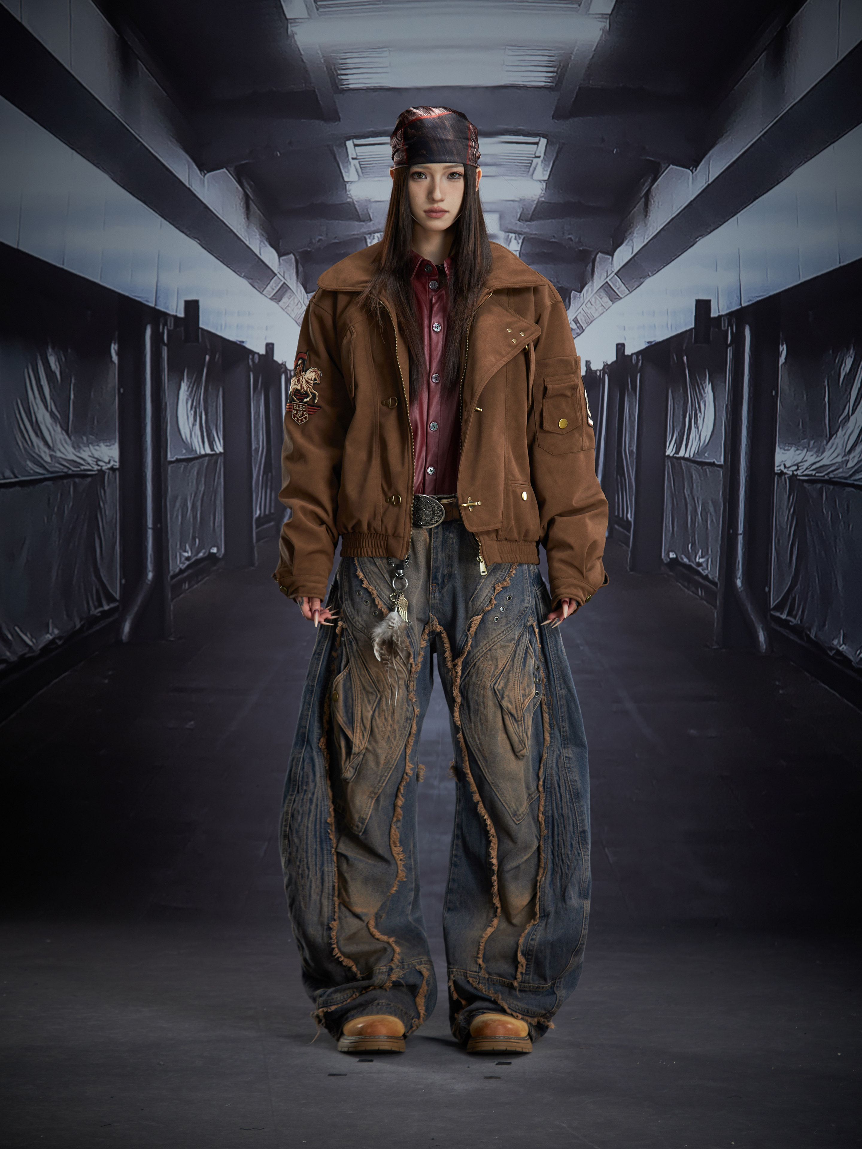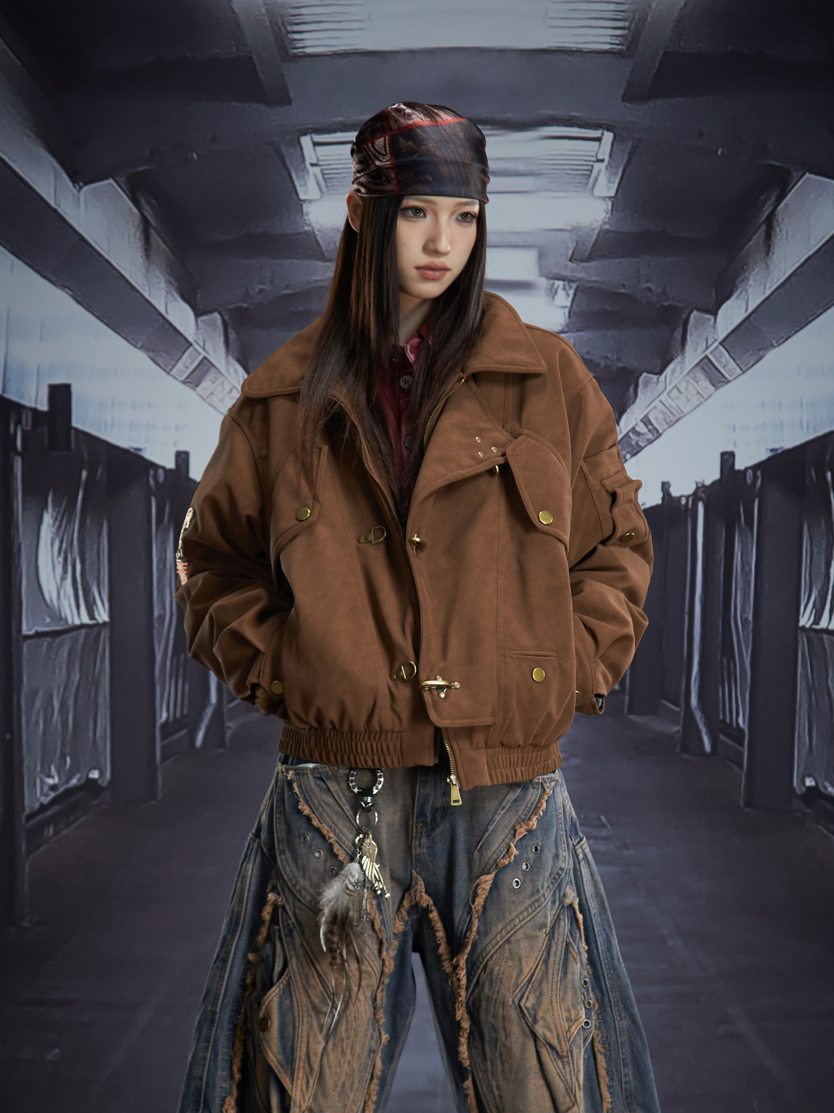 Matte PU Leather Embroidery Lapel Collar White Duck Down Jacket WN22875