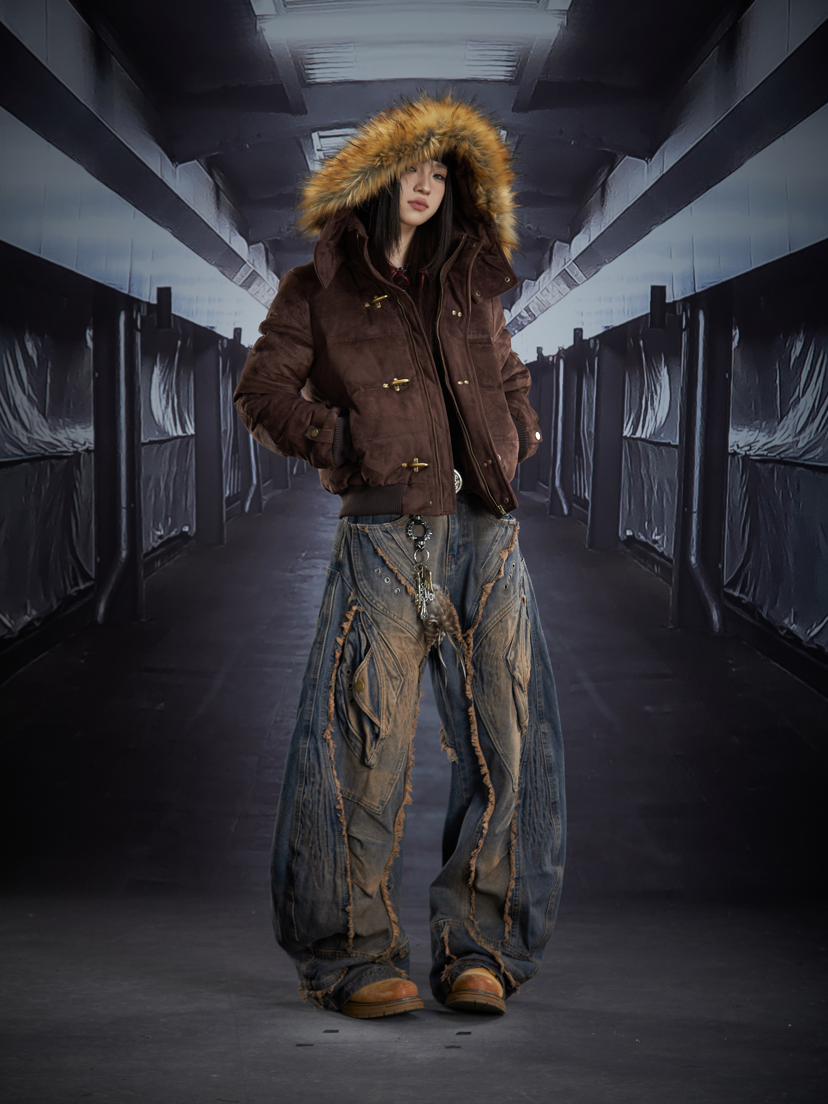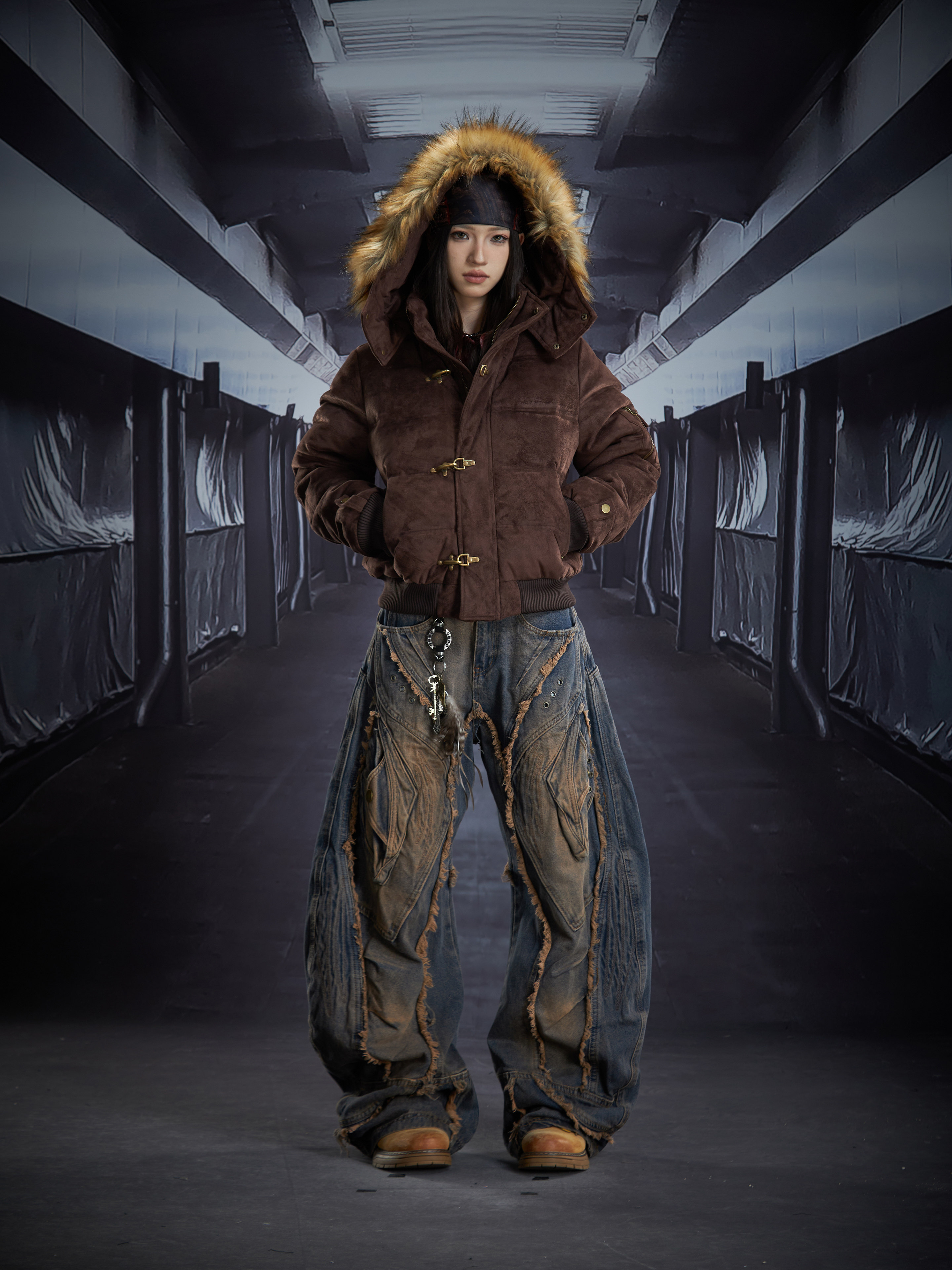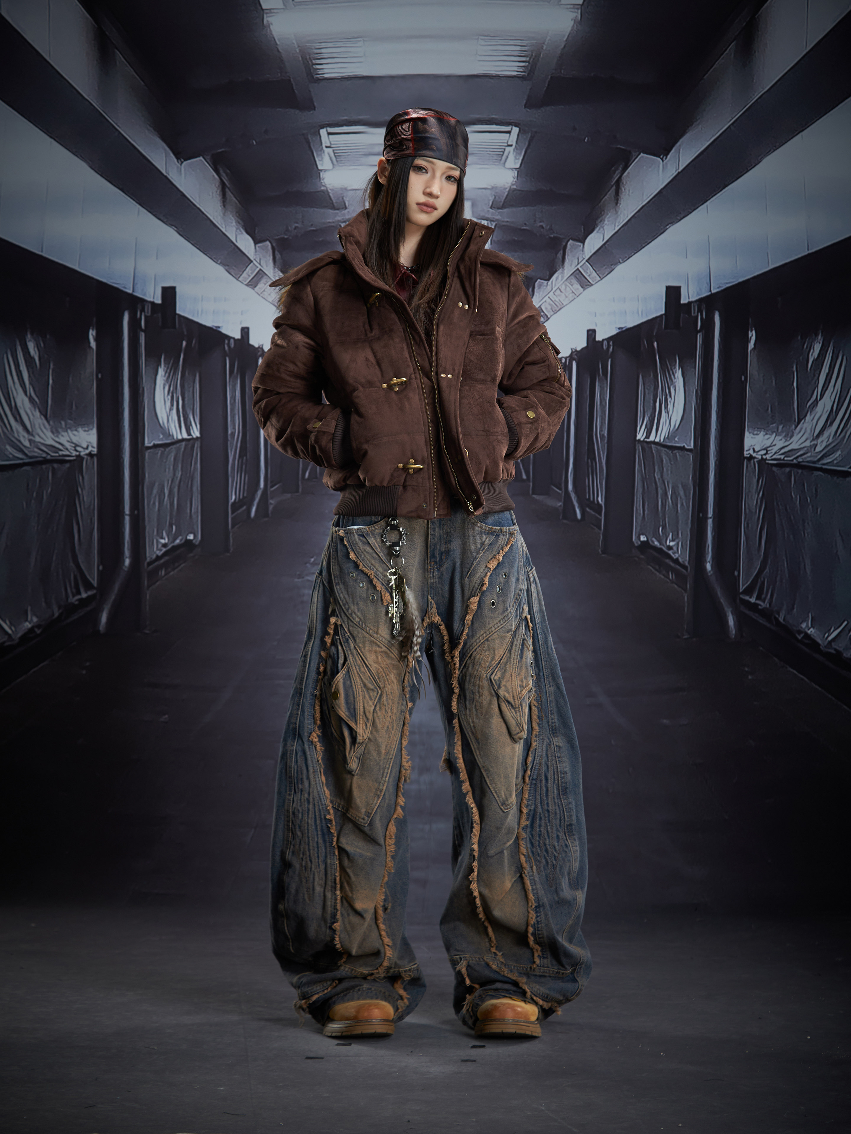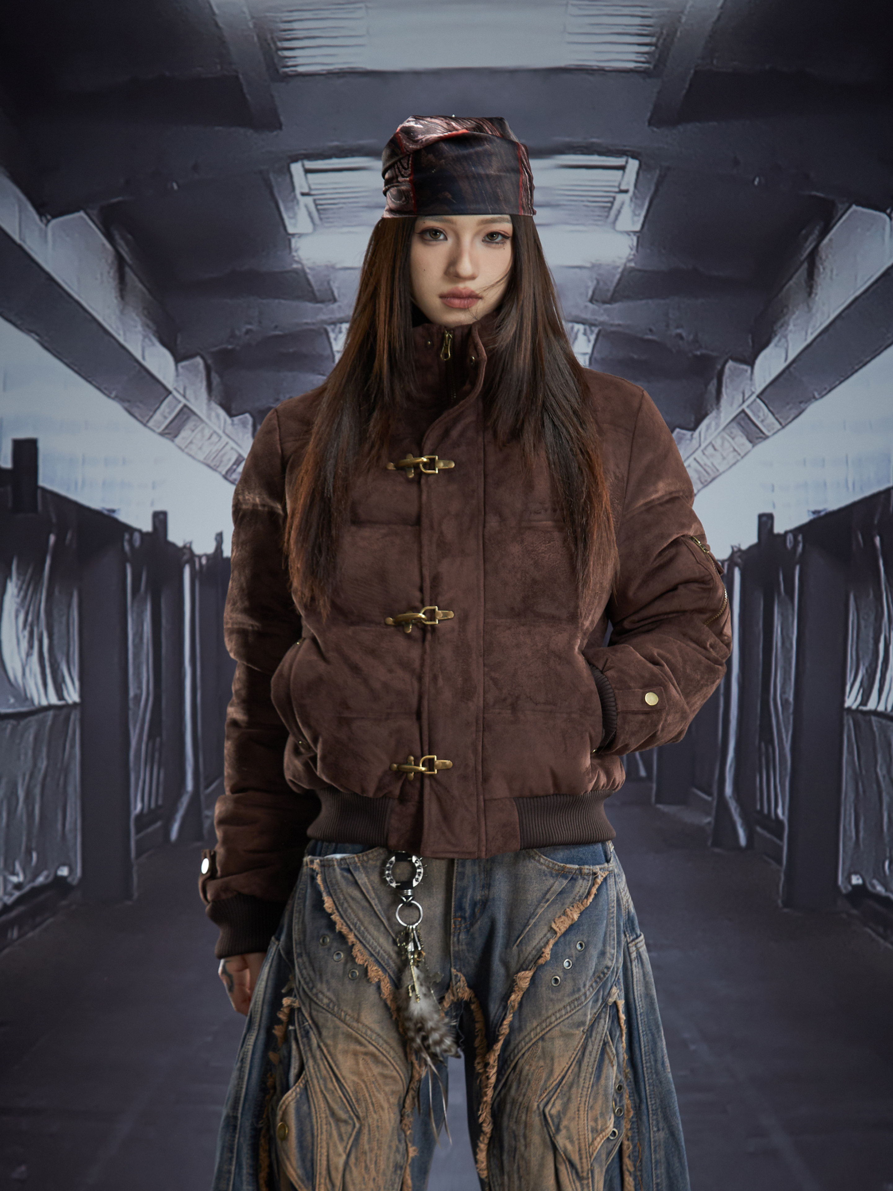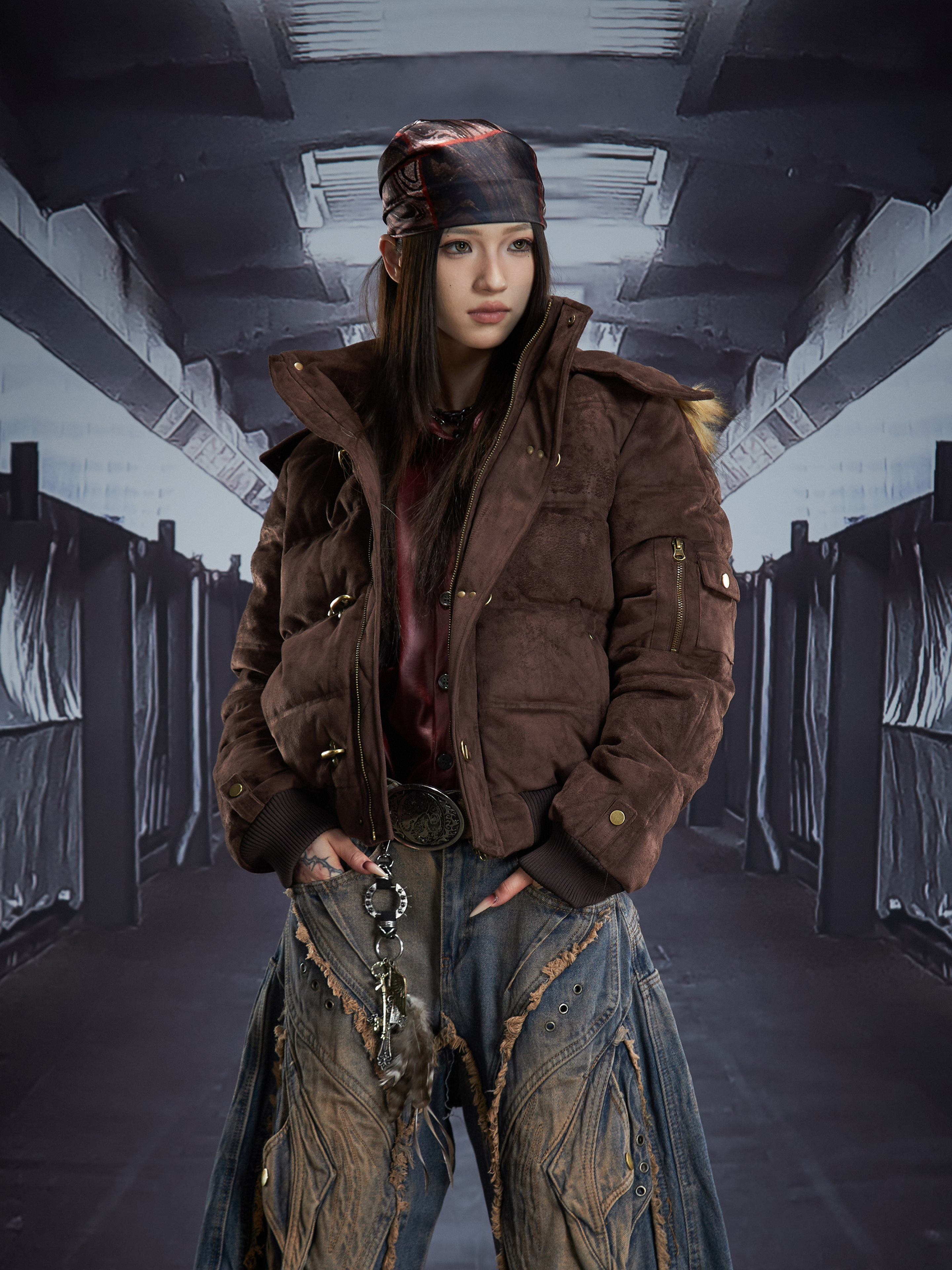 Detachable Hooded Suede Stand Neck Puffer Jacket WN22877