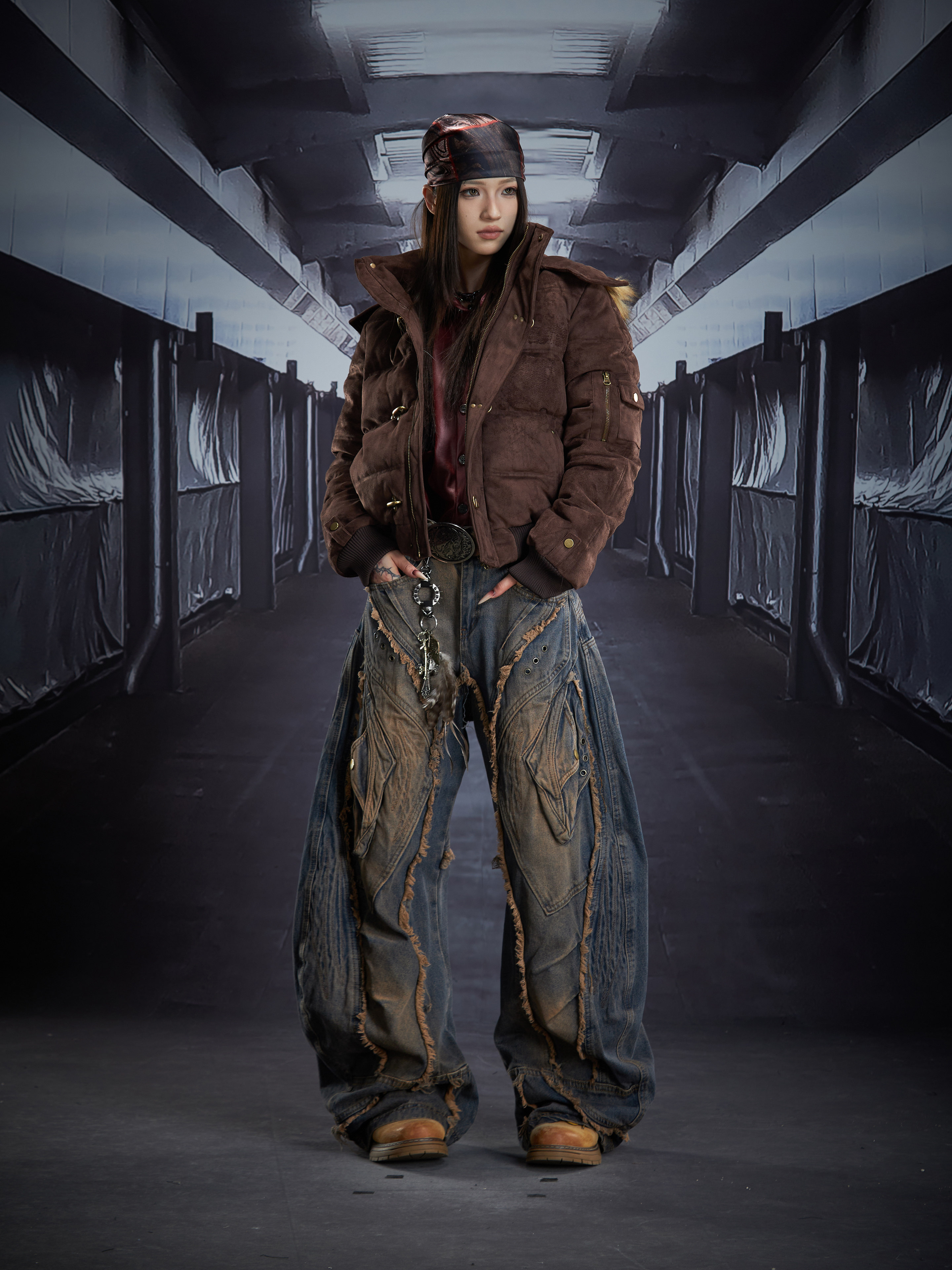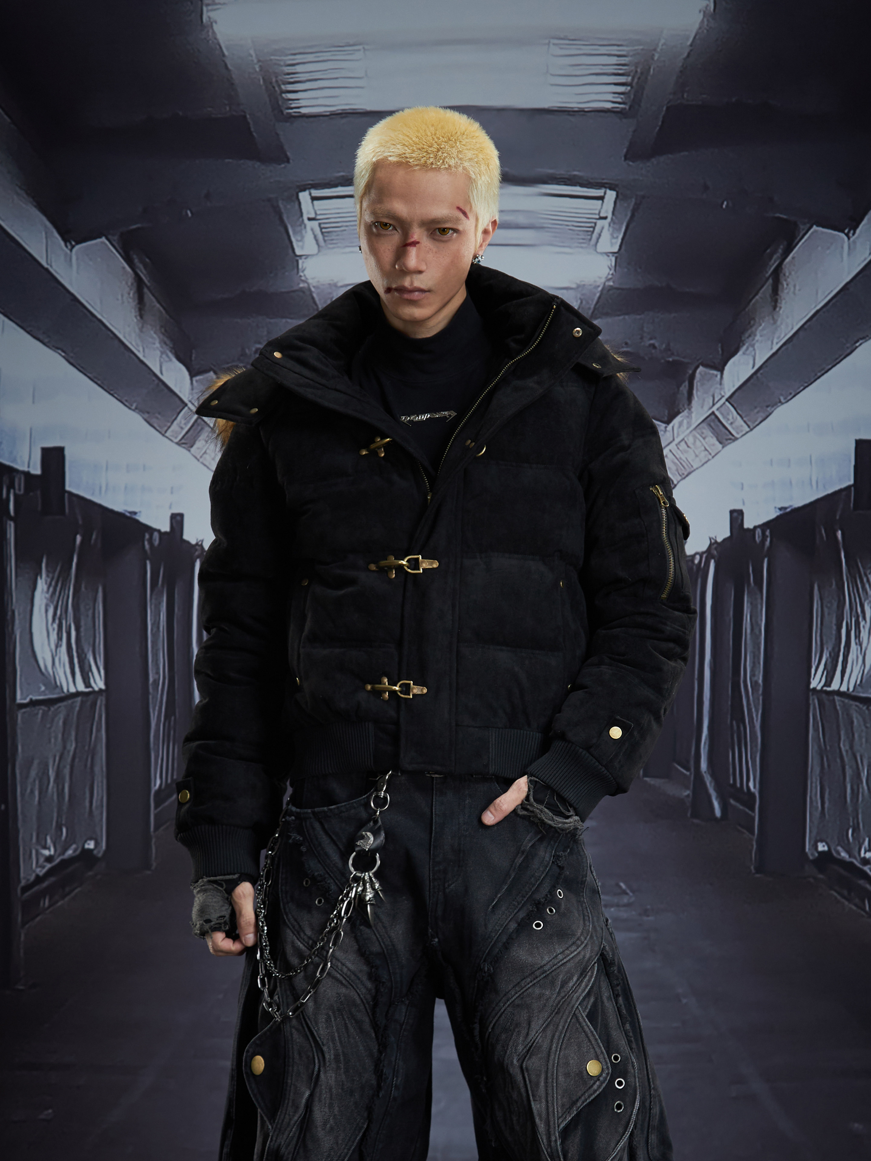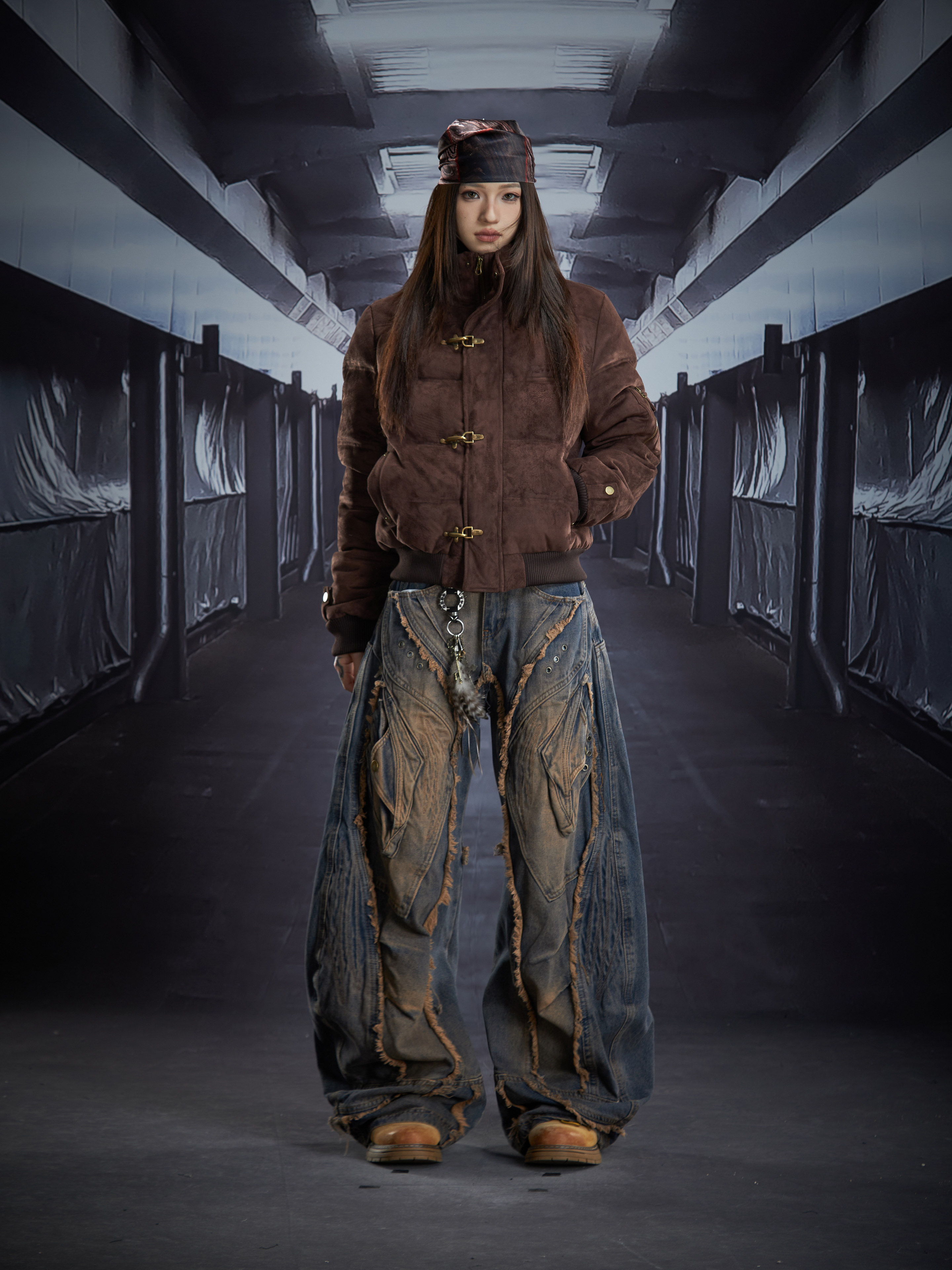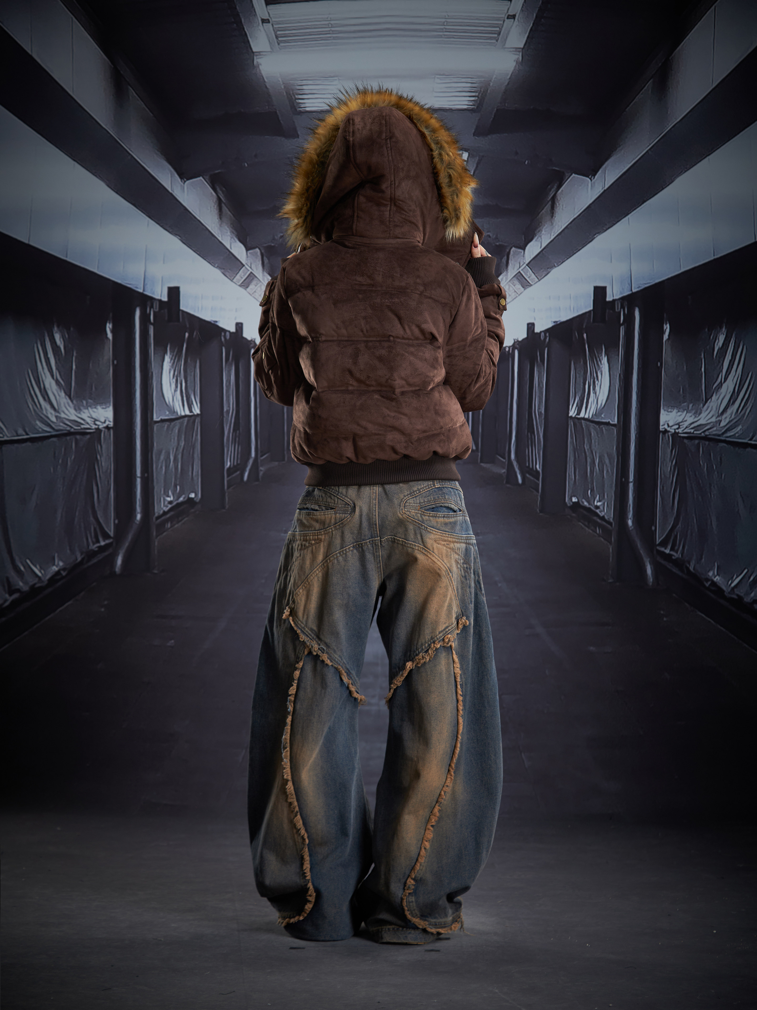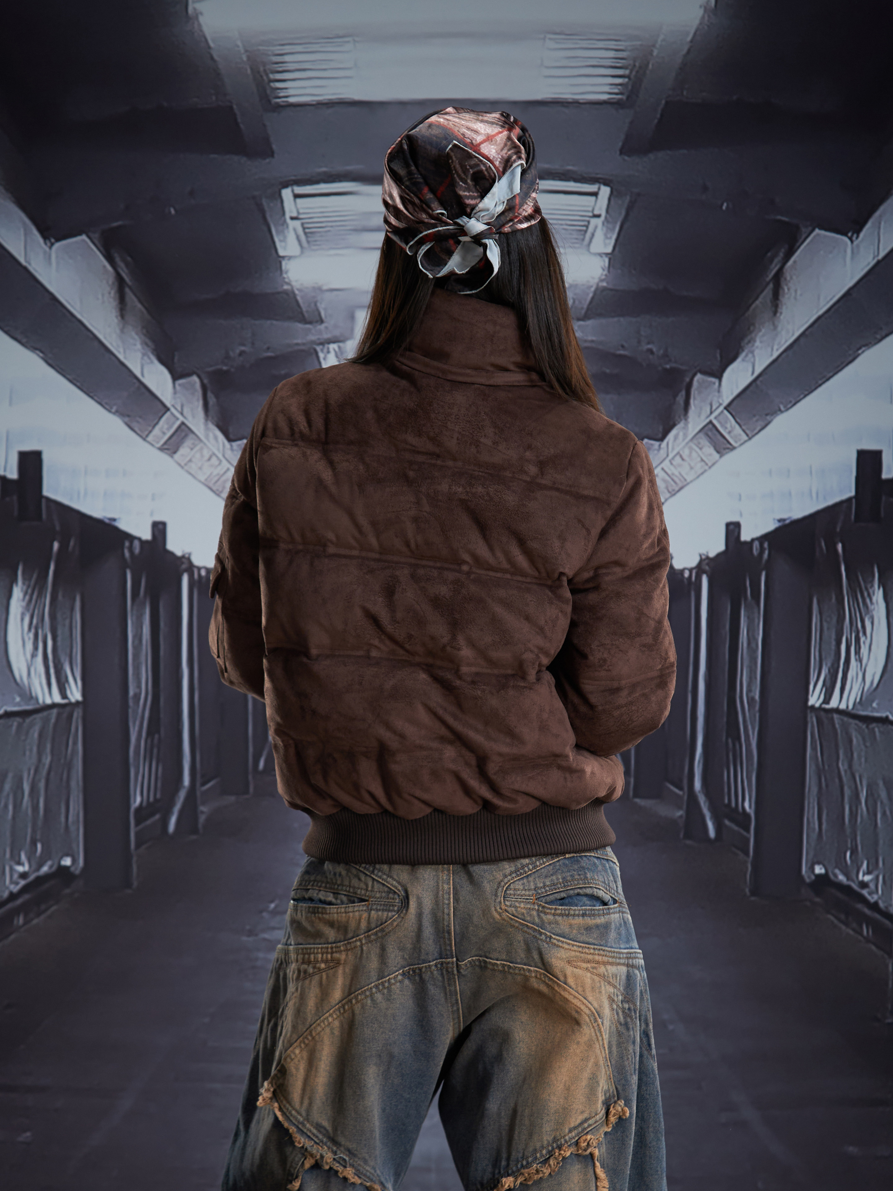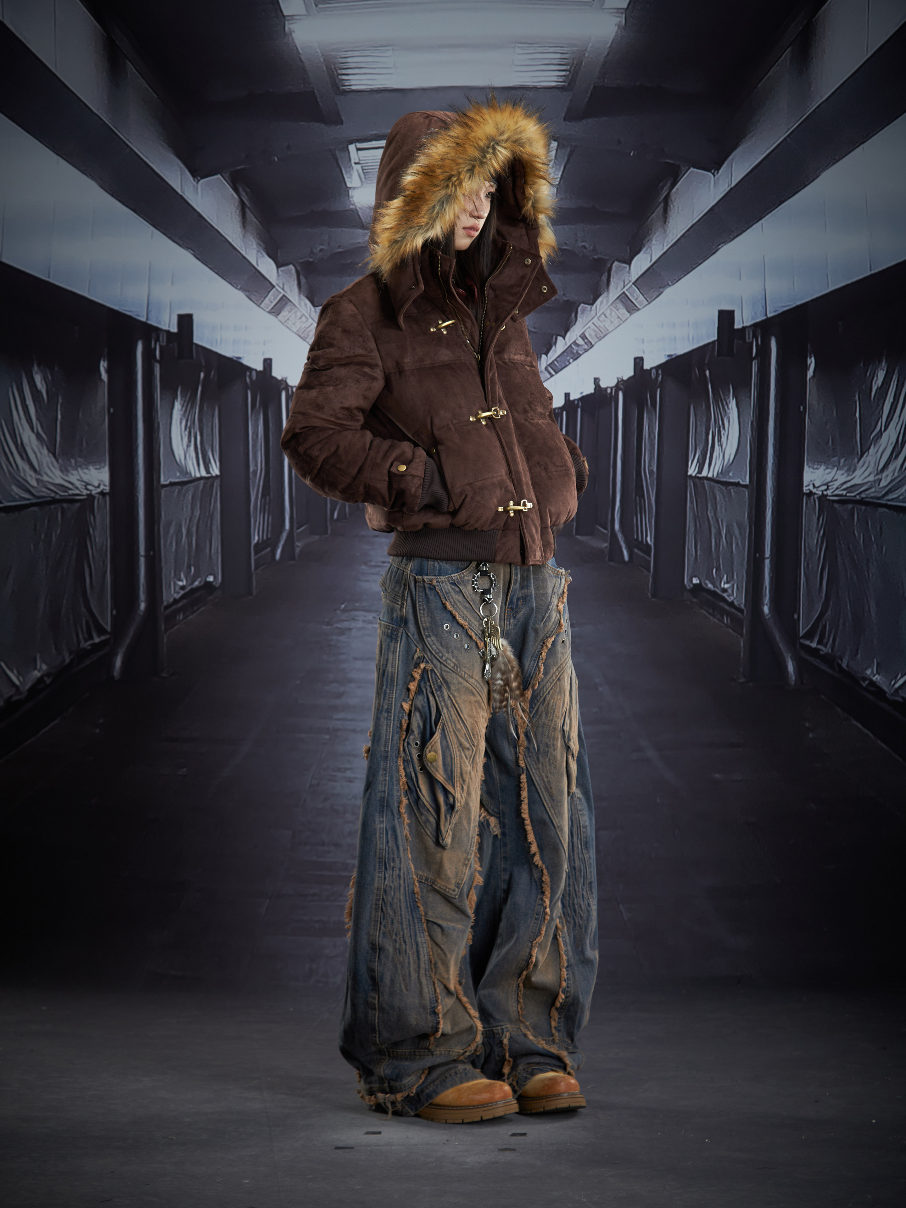 Detachable Hooded Suede Stand Neck Puffer Jacket WN22877