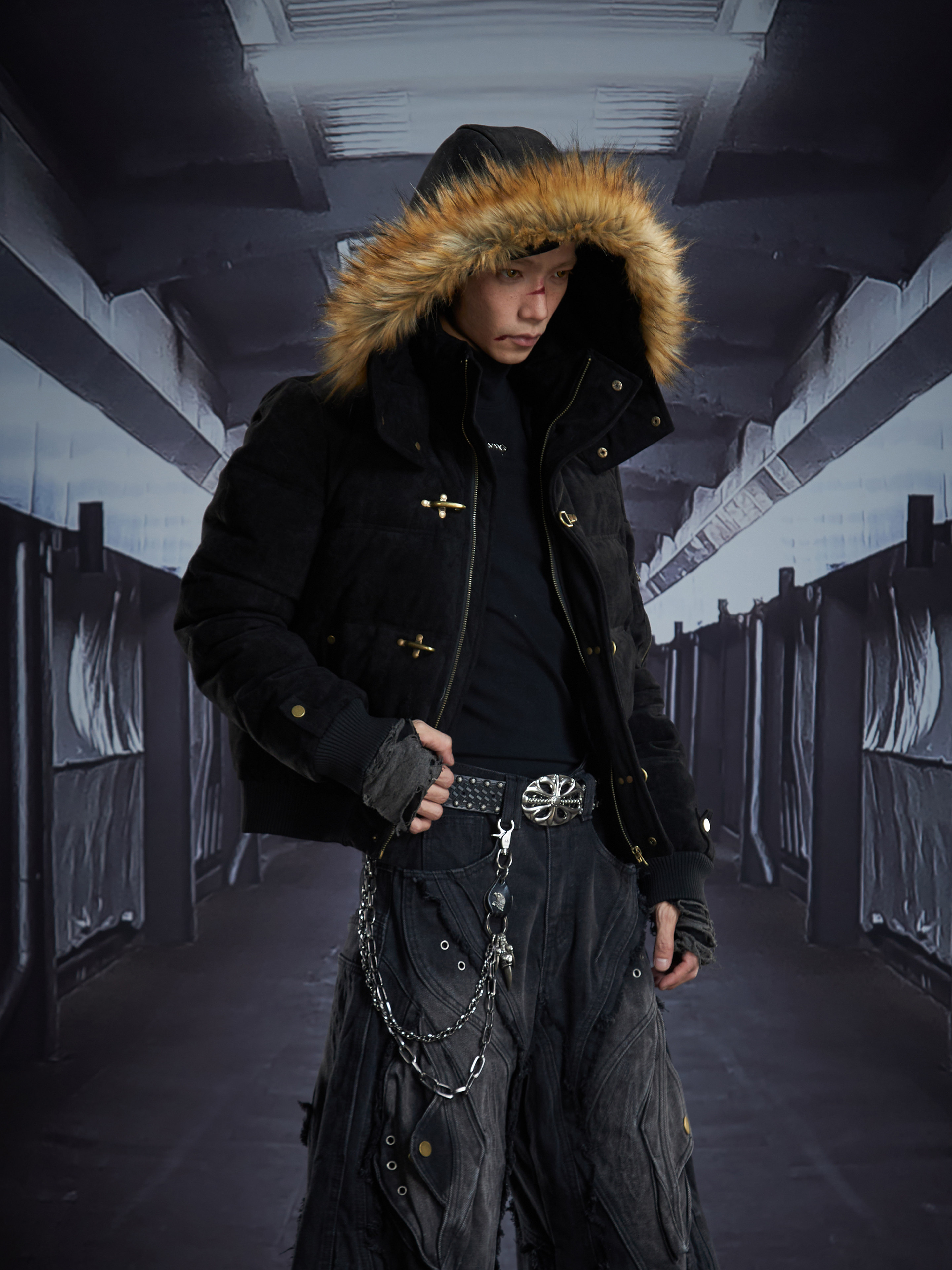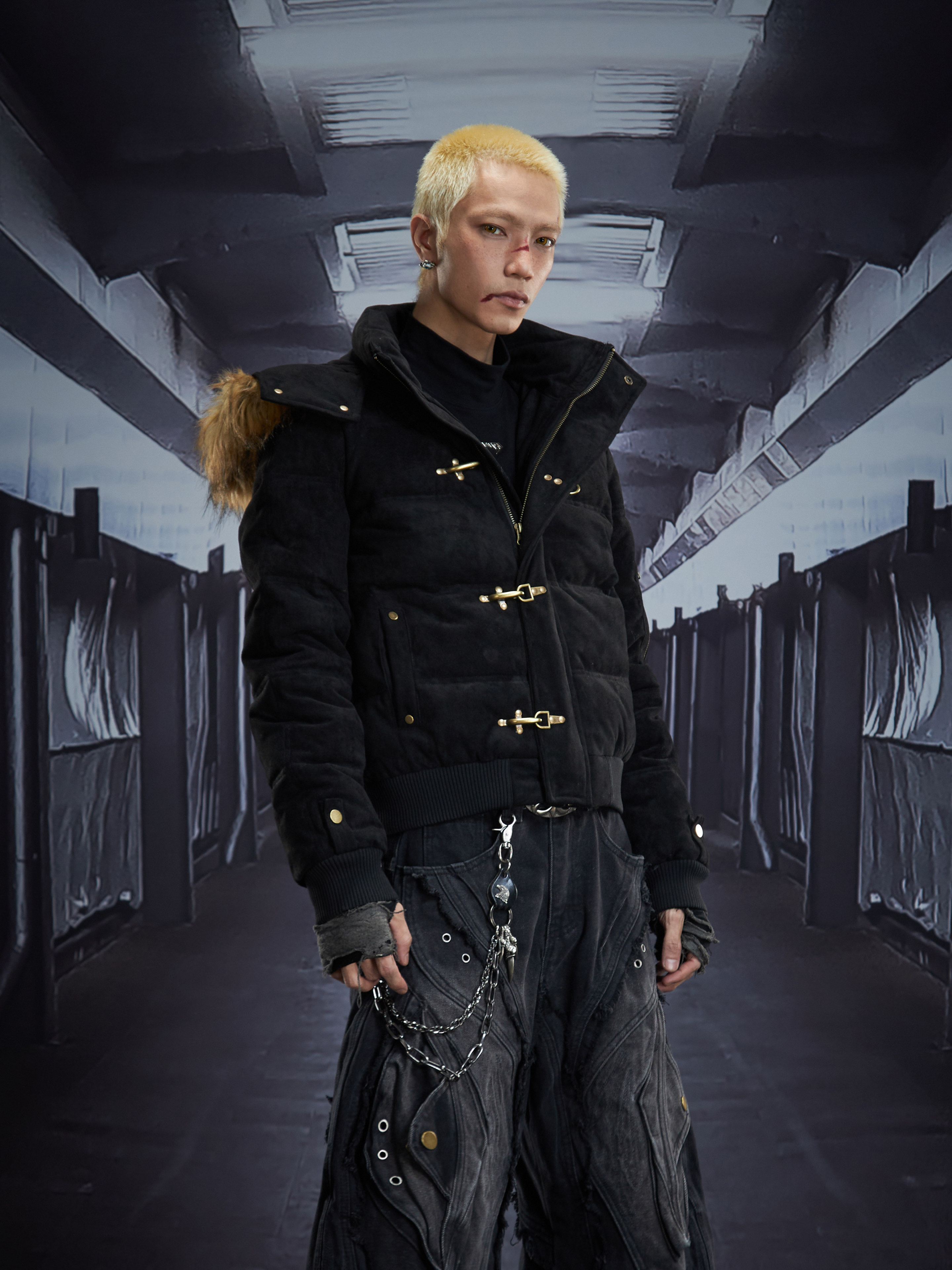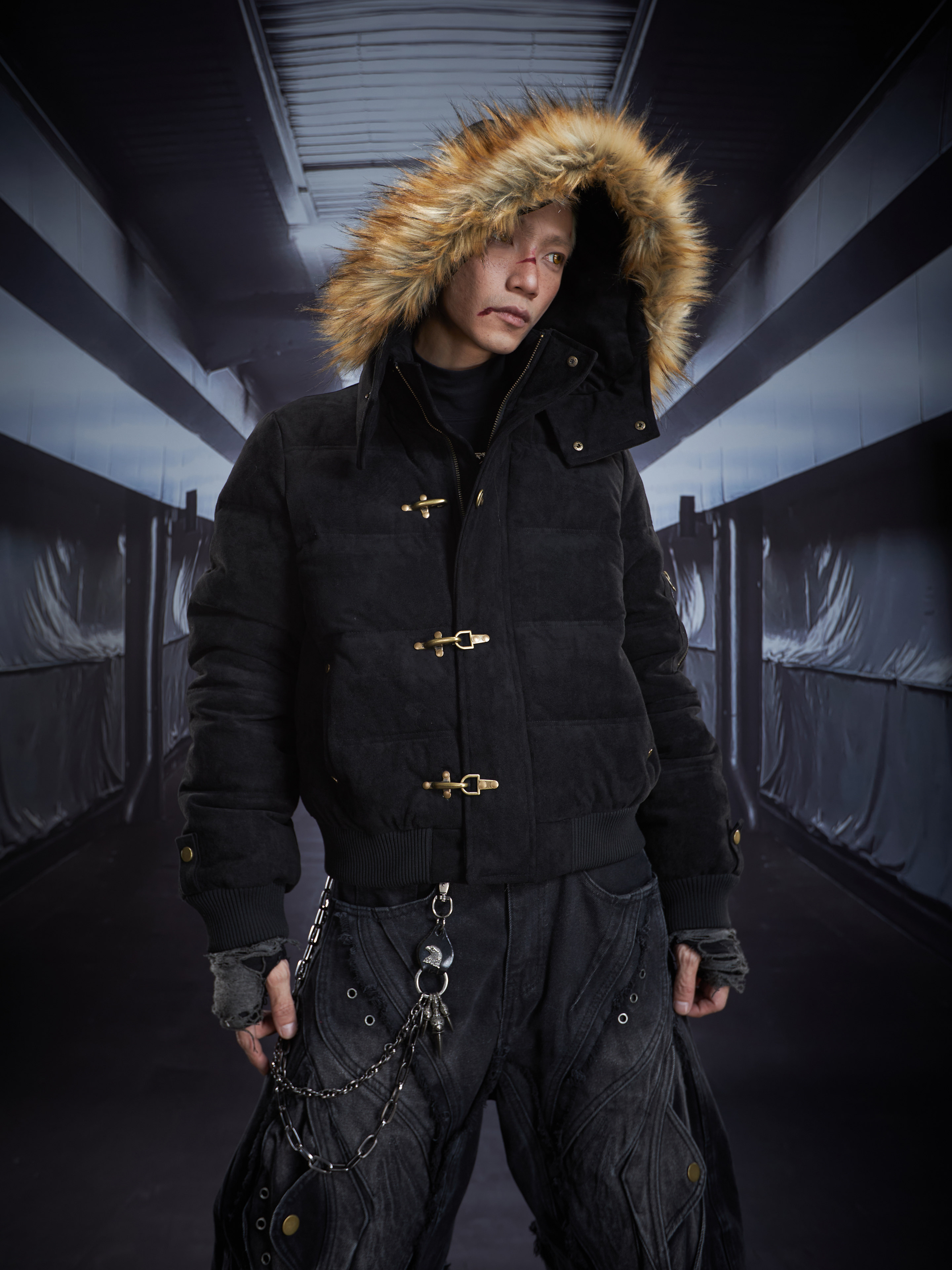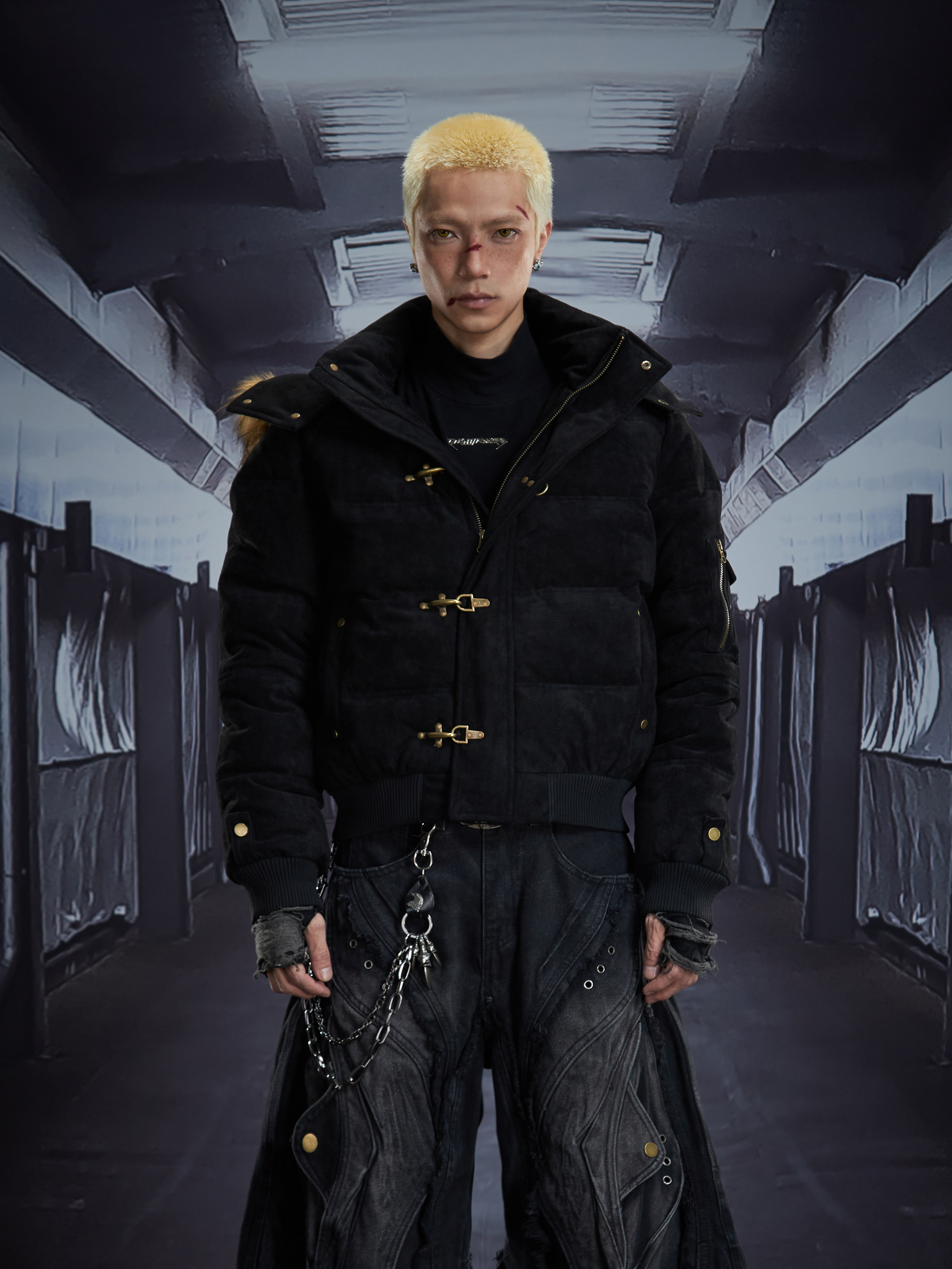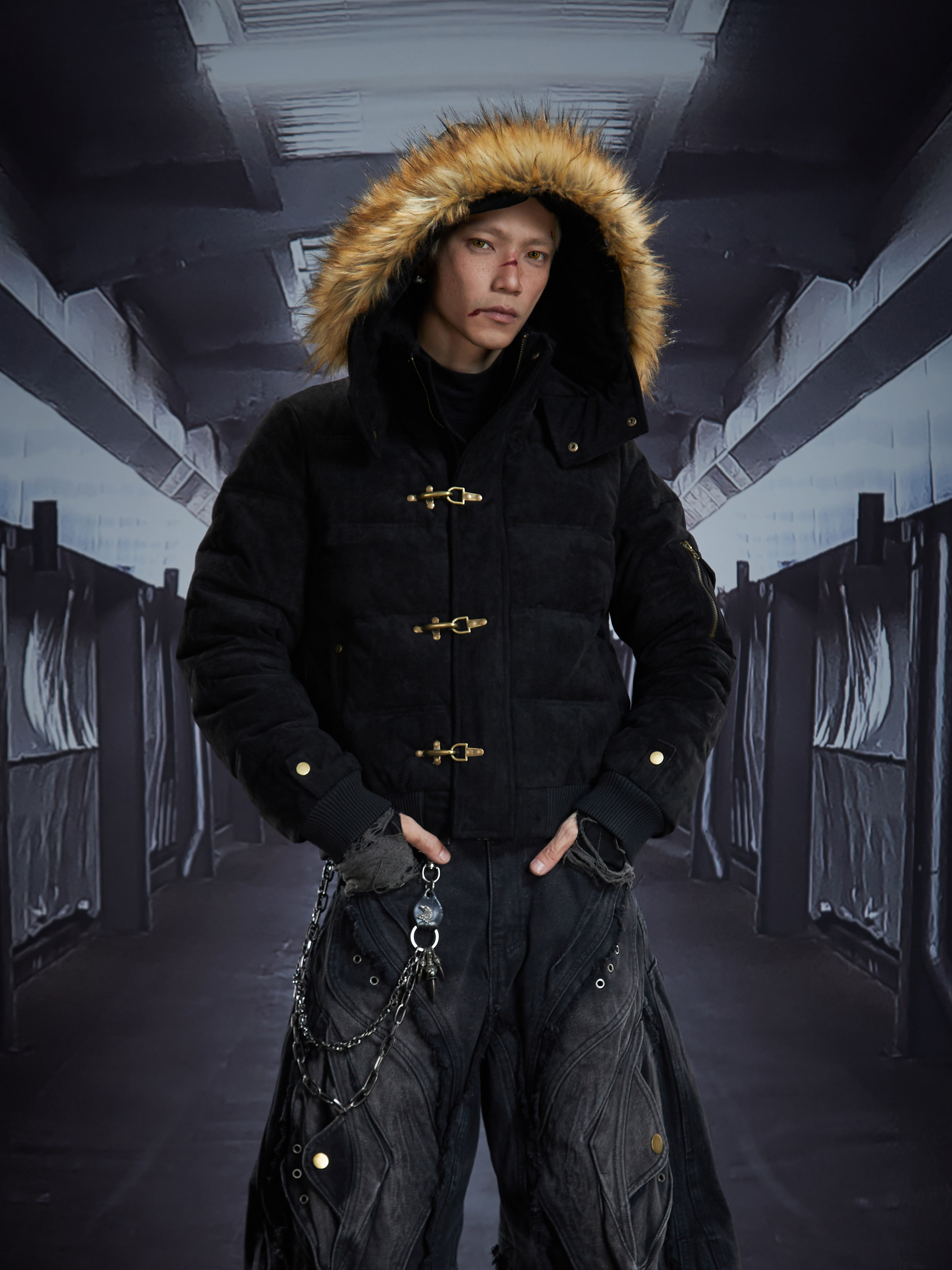 Detachable Hooded Suede Stand Neck Puffer Jacket WN22877