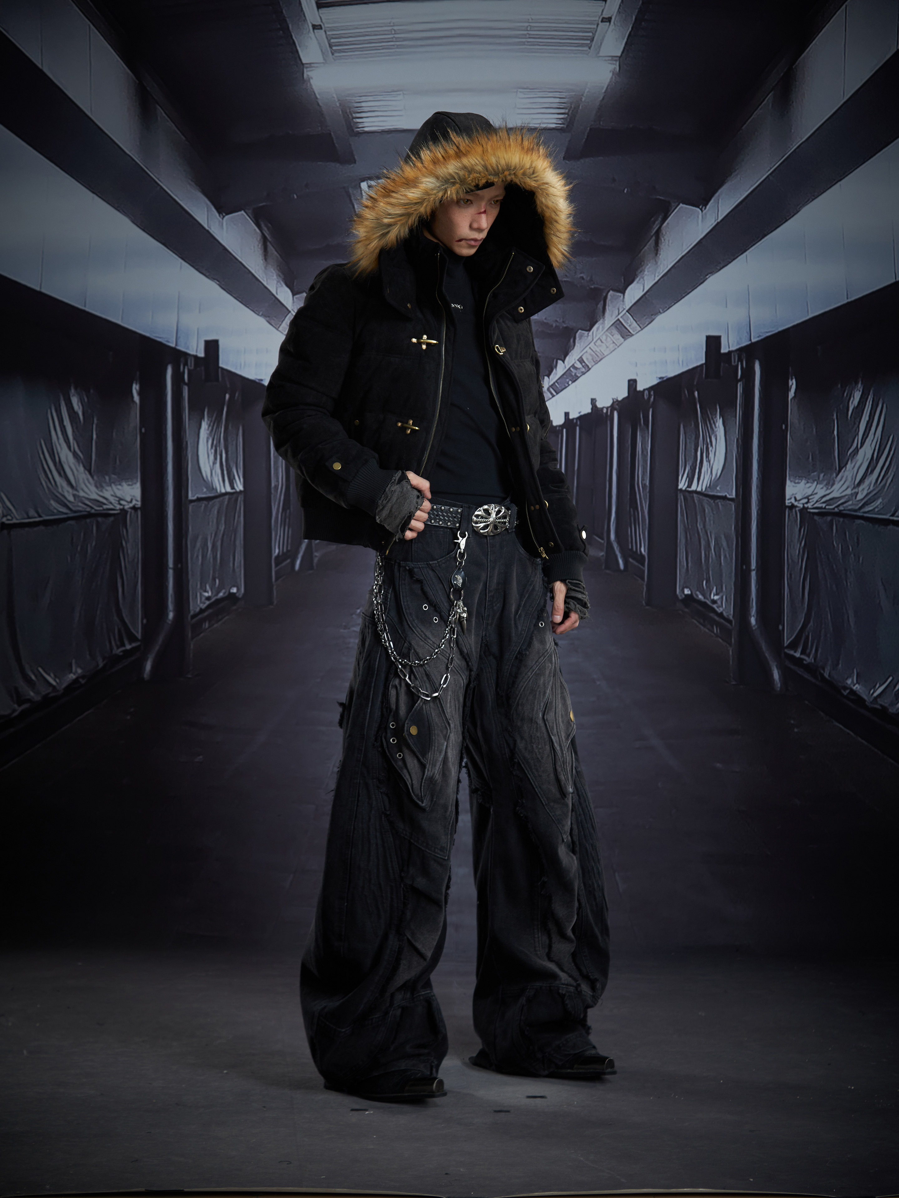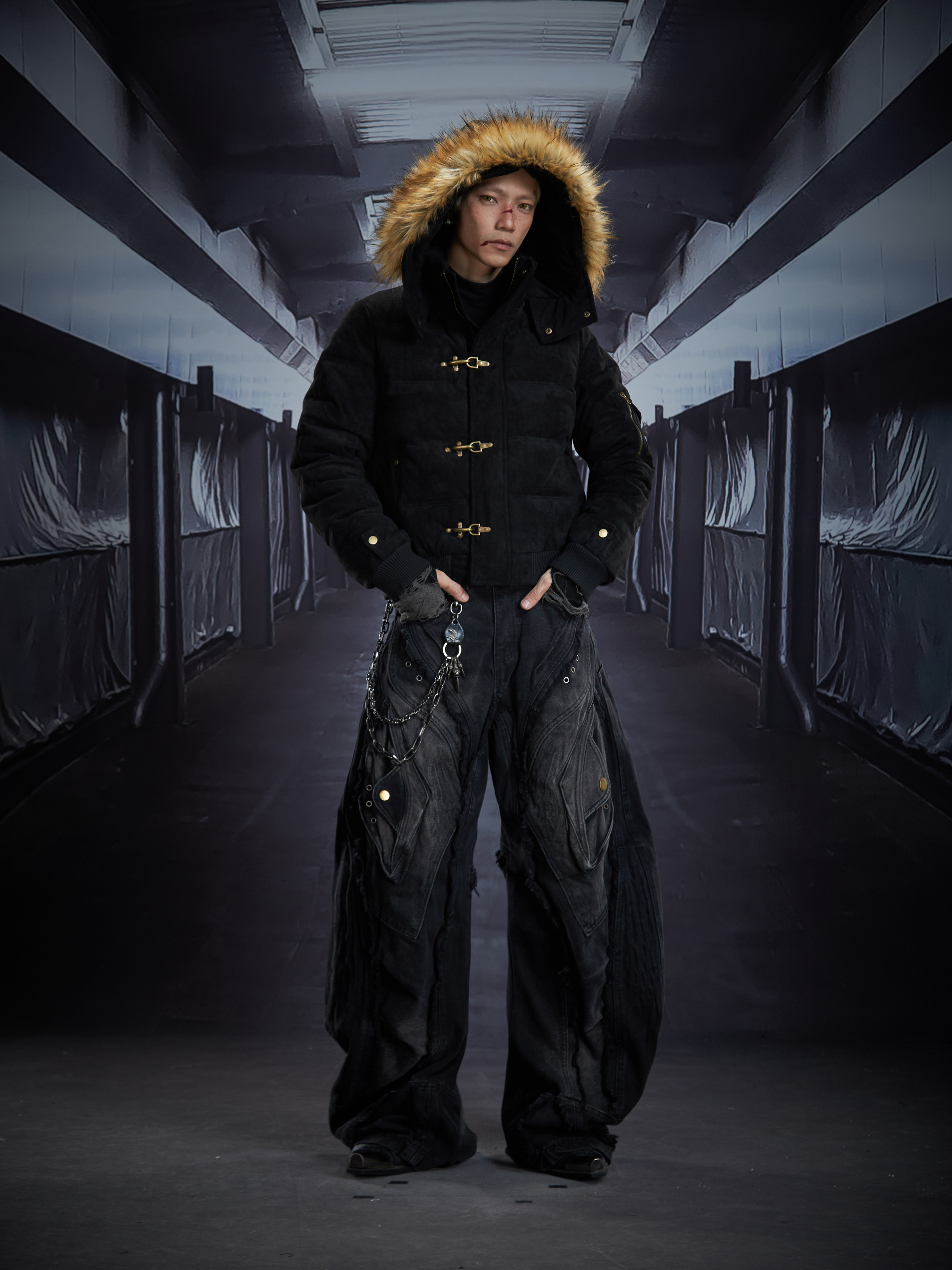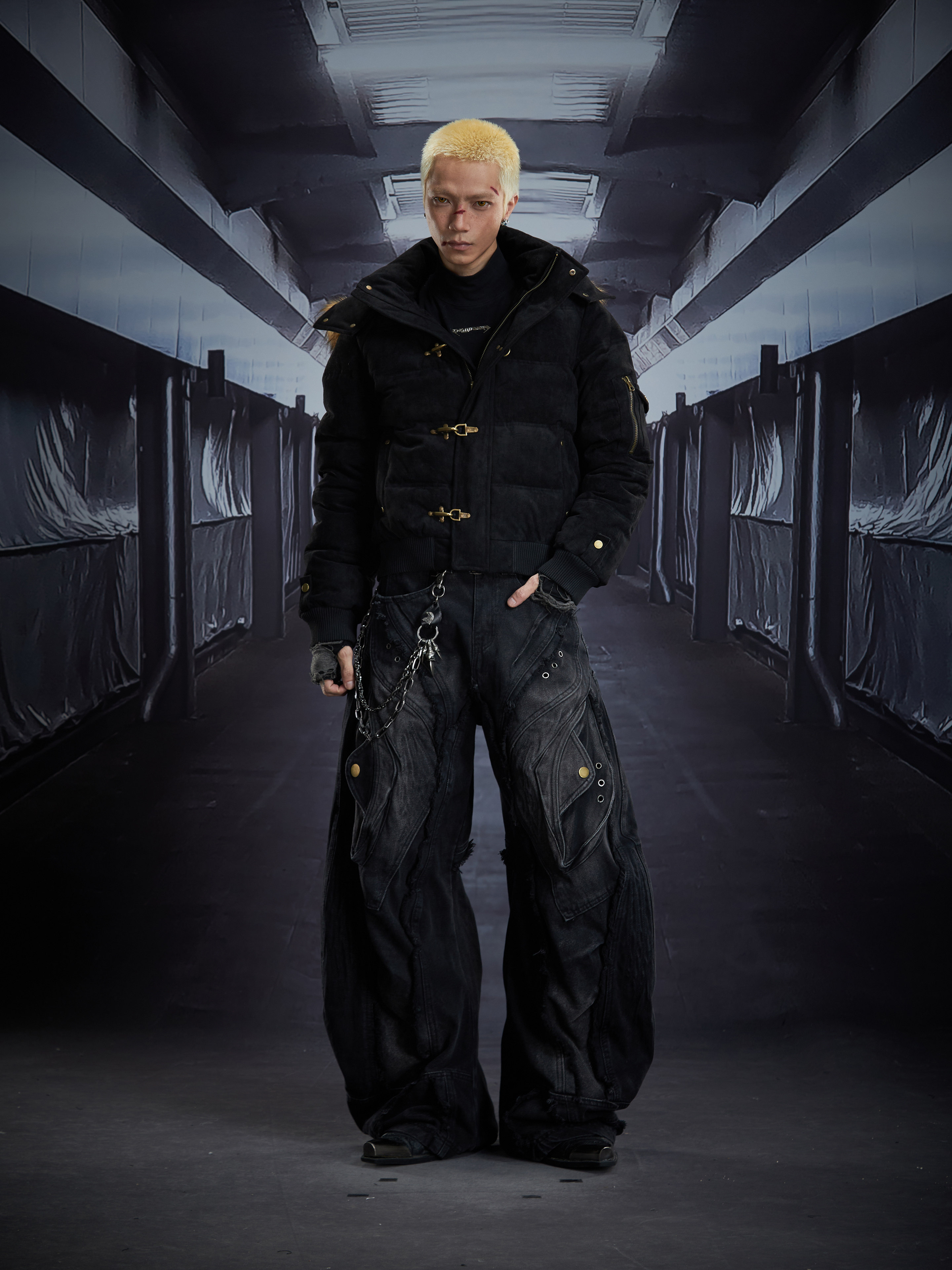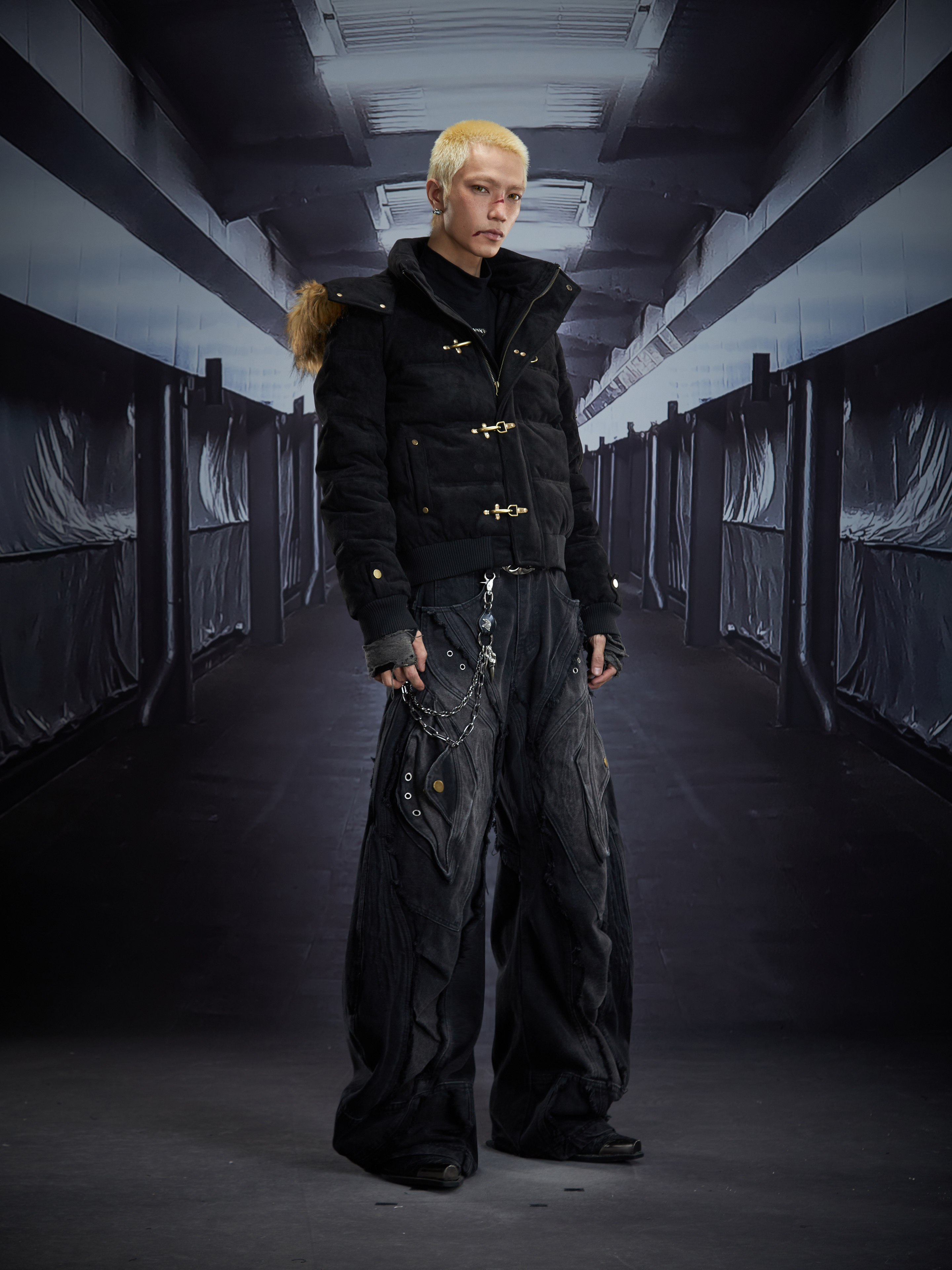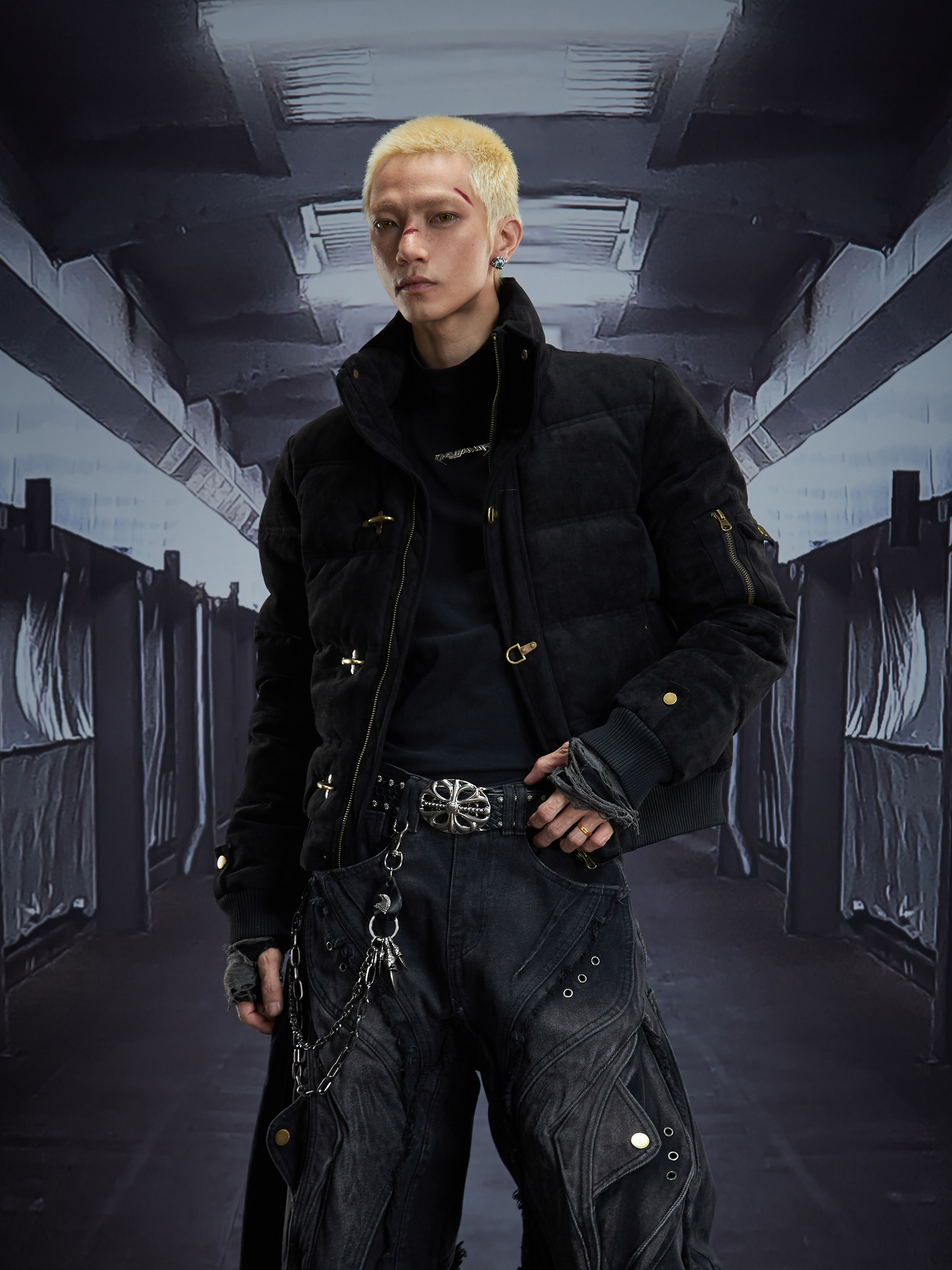 Detachable Hooded Suede Stand Neck Puffer Jacket WN22877