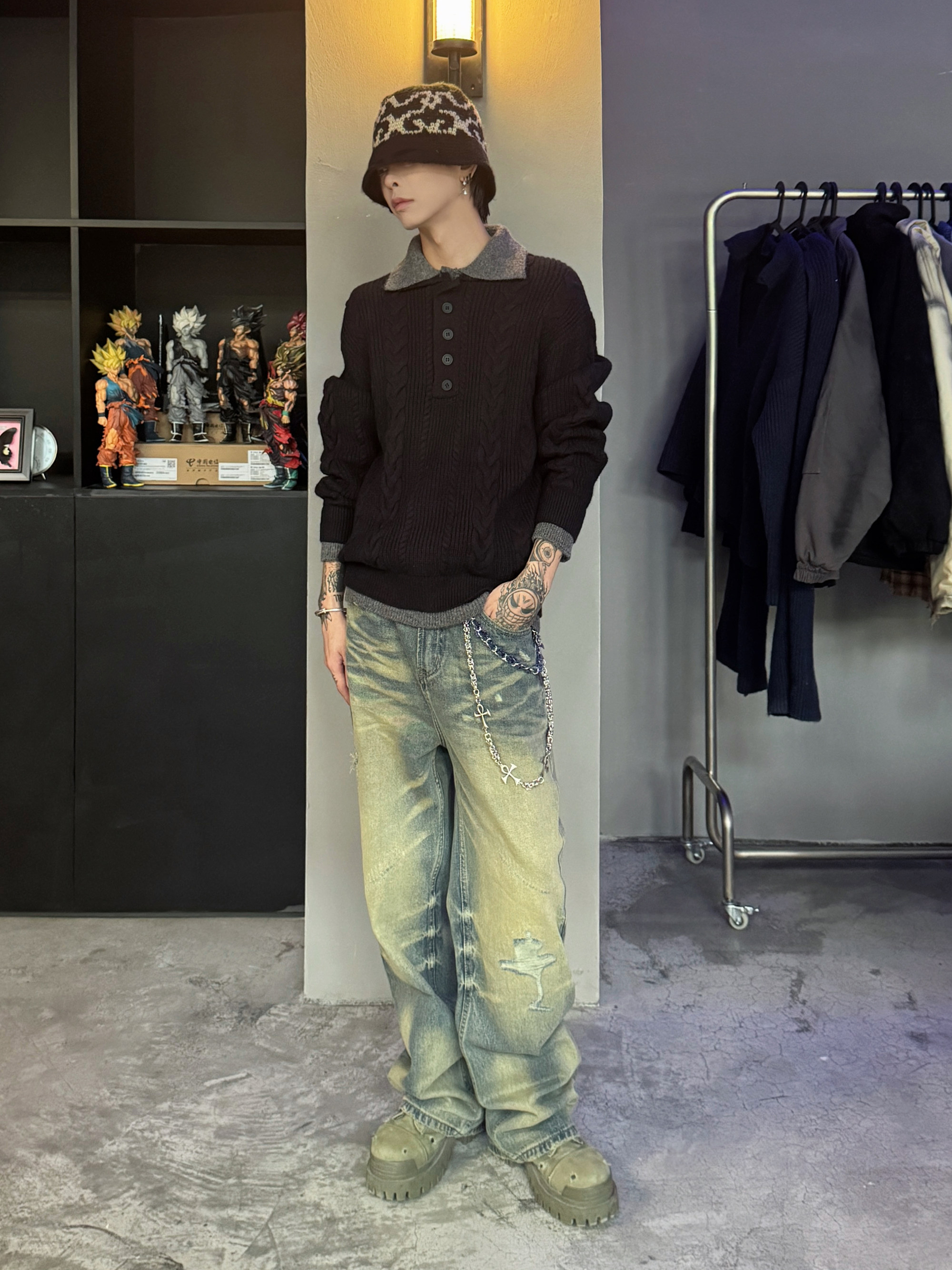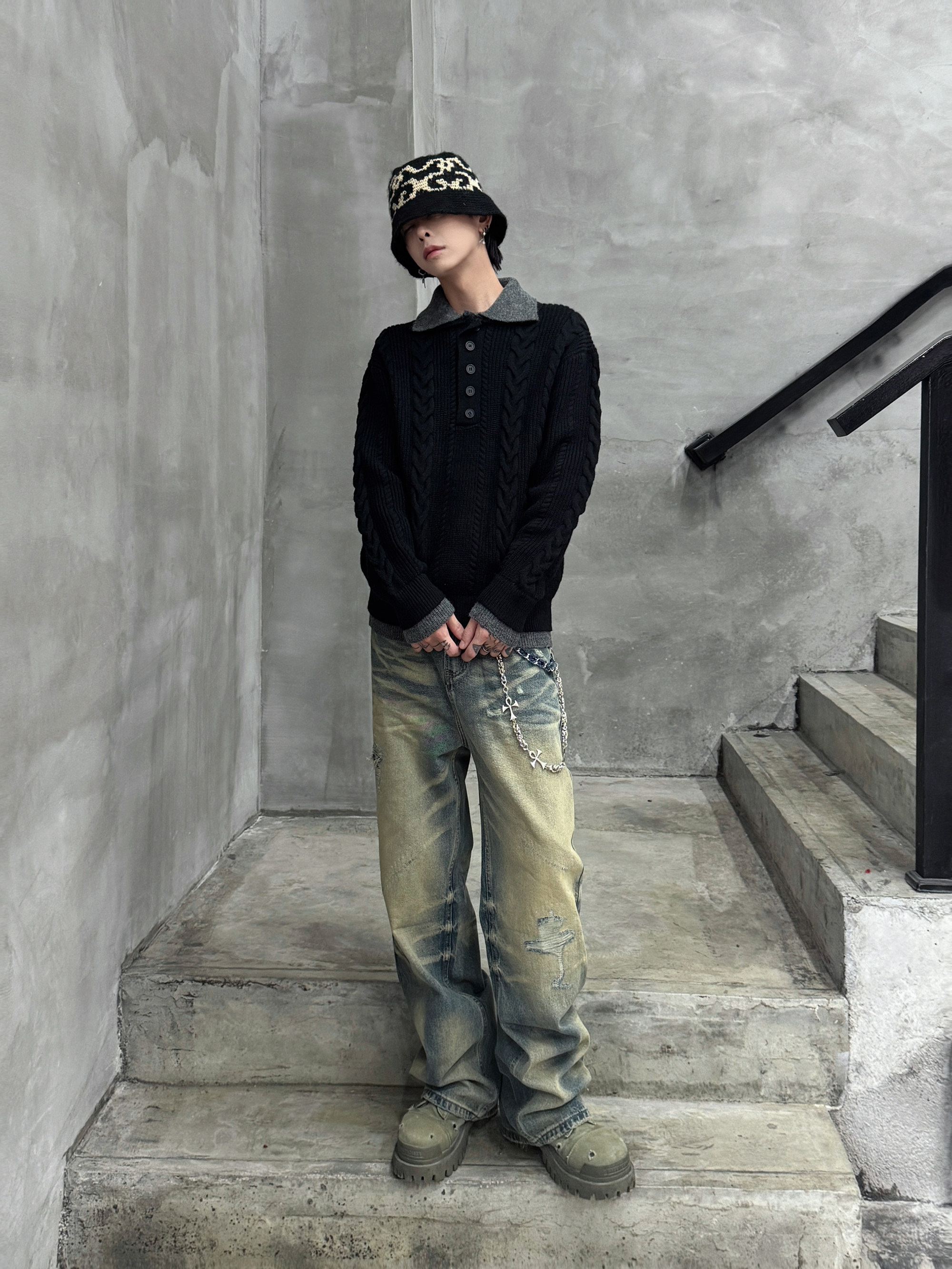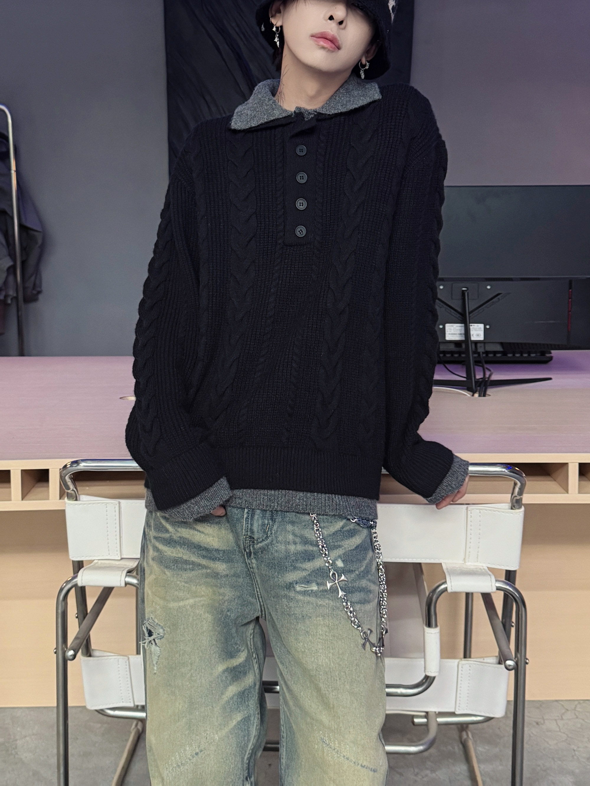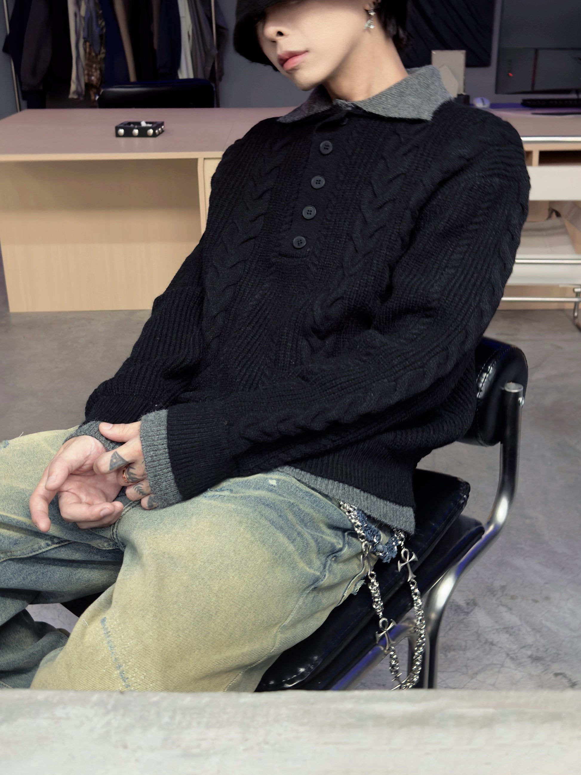 Polo Colar Cable Knit Sweater WN22953
