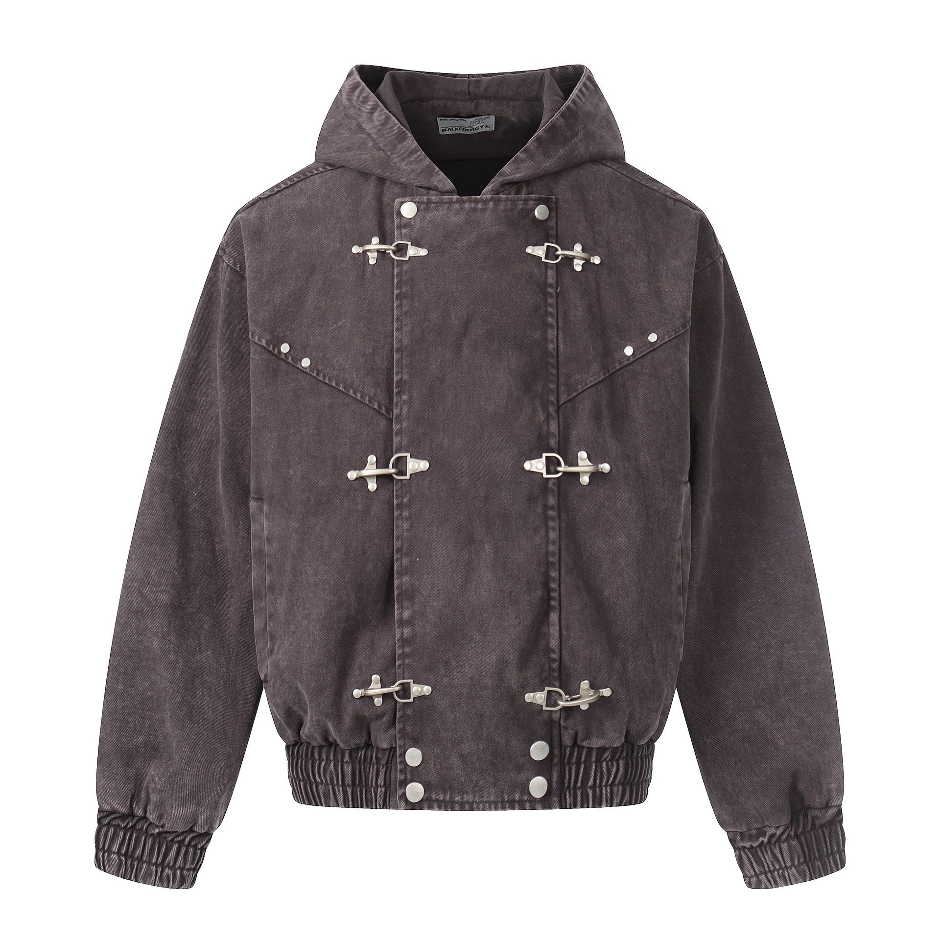Washed Metal Buckle Hooded Denim Jacket WN23044