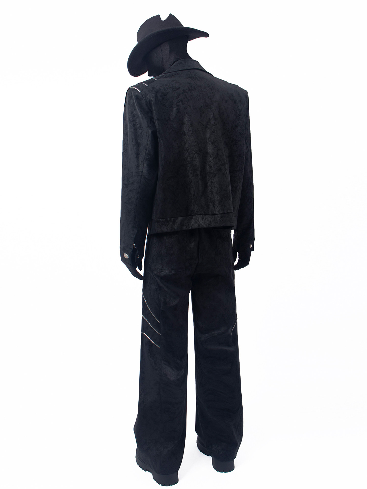 Short PU Leather Jacket & Wide Leg Curved Pants Setup WN23743