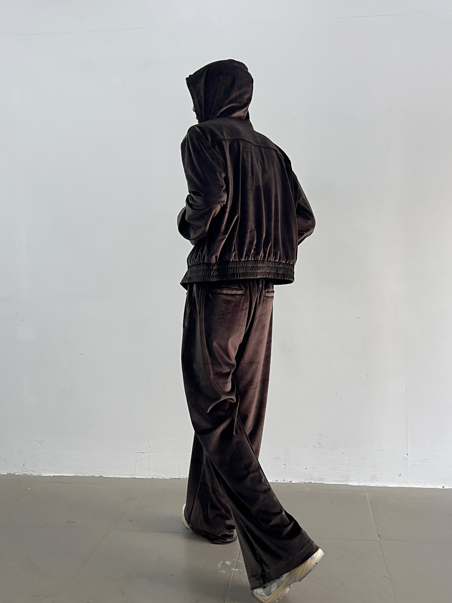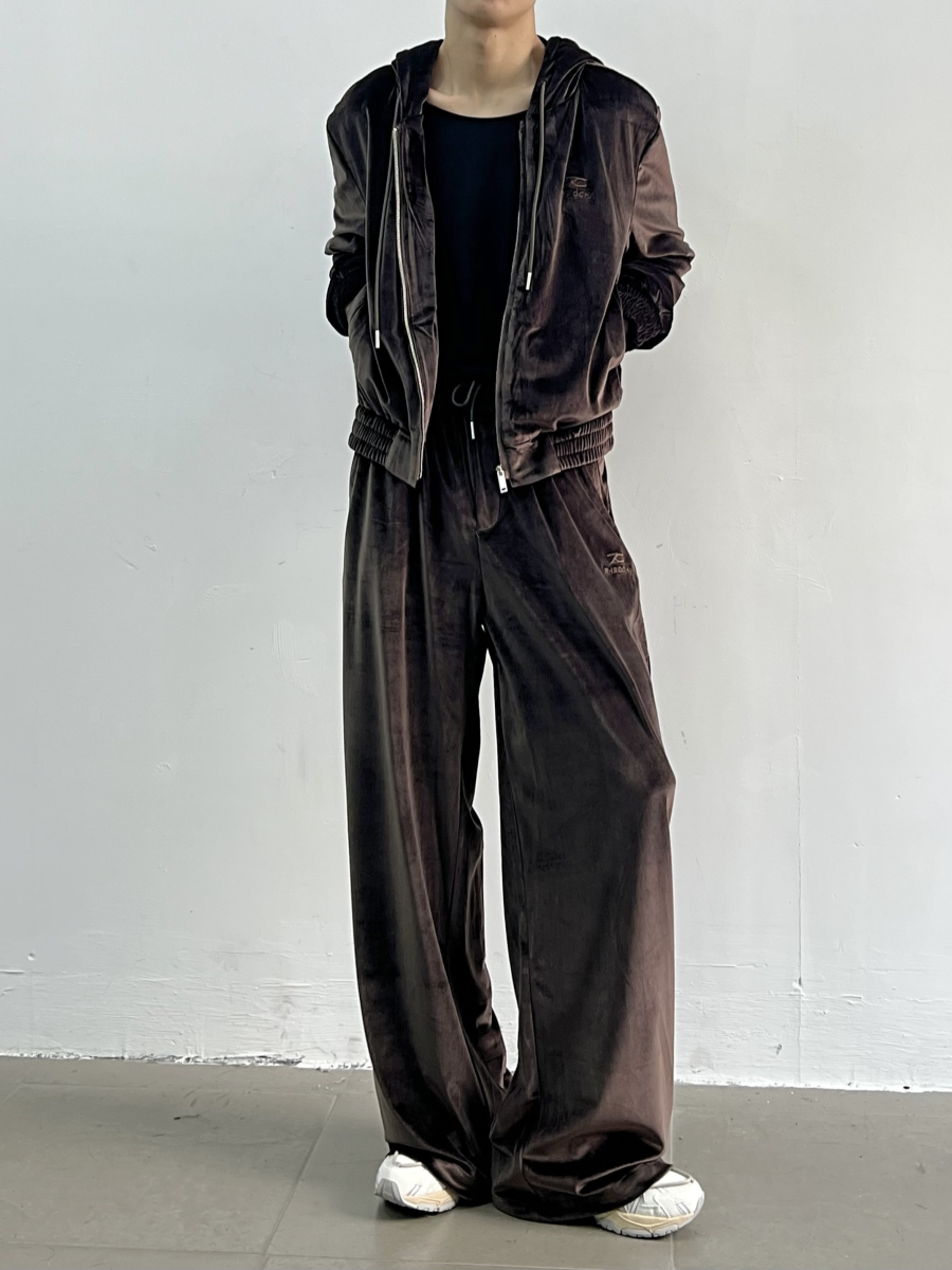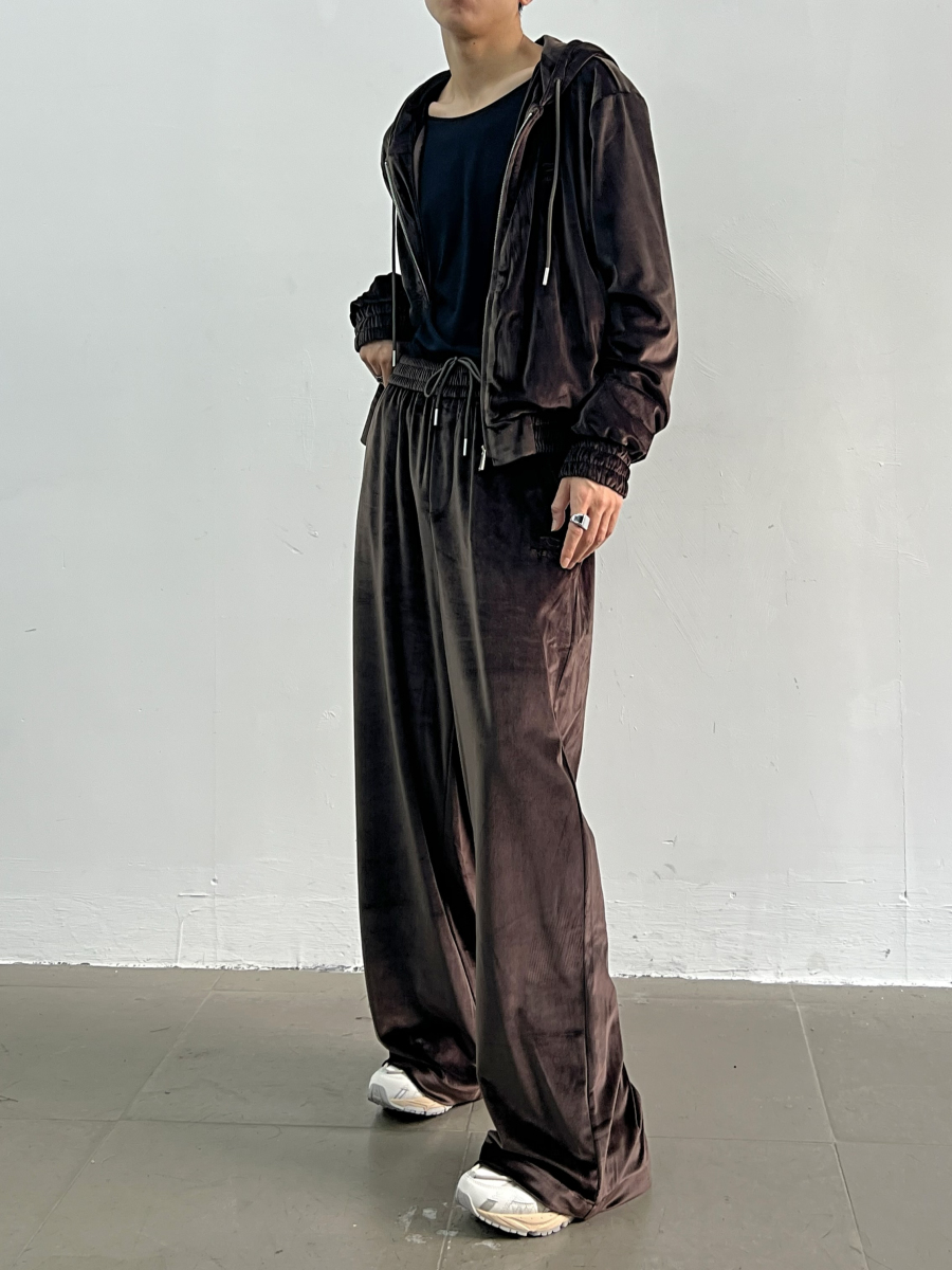 Corduroy Zipper Hoodie & Wide-leg Corduroy Pants Setup WN5016