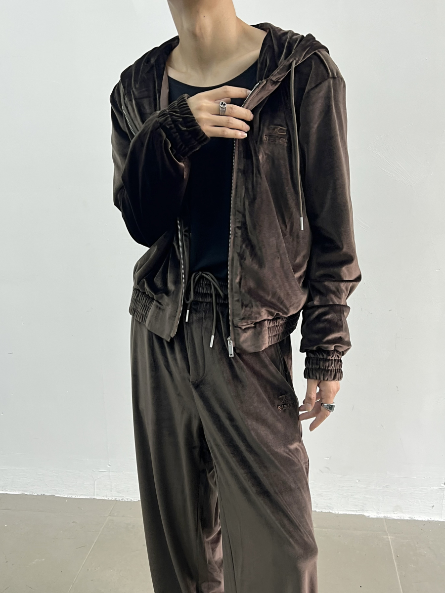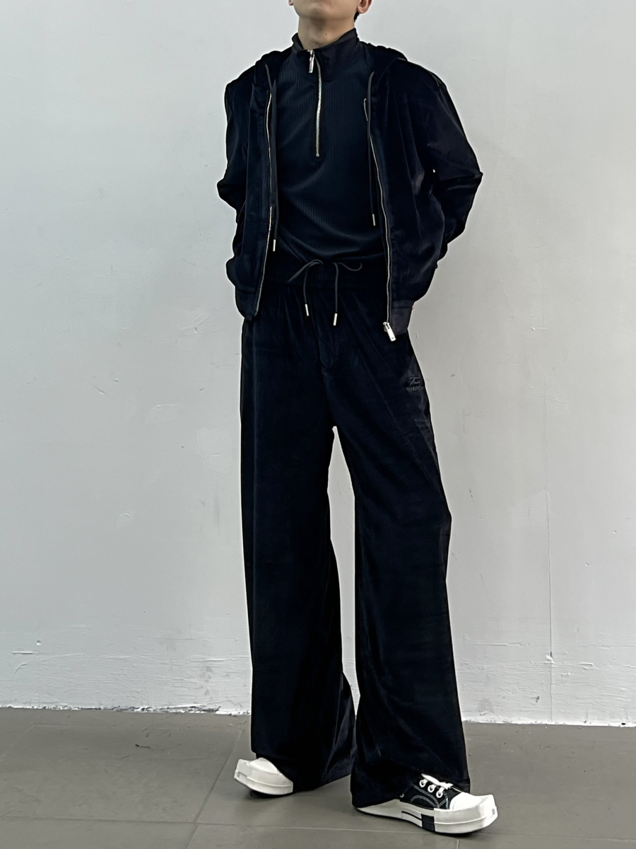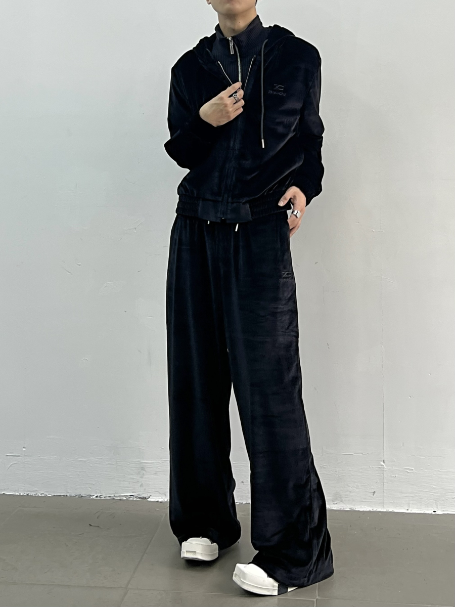 Corduroy Zipper Hoodie & Wide-leg Corduroy Pants Setup WN5016