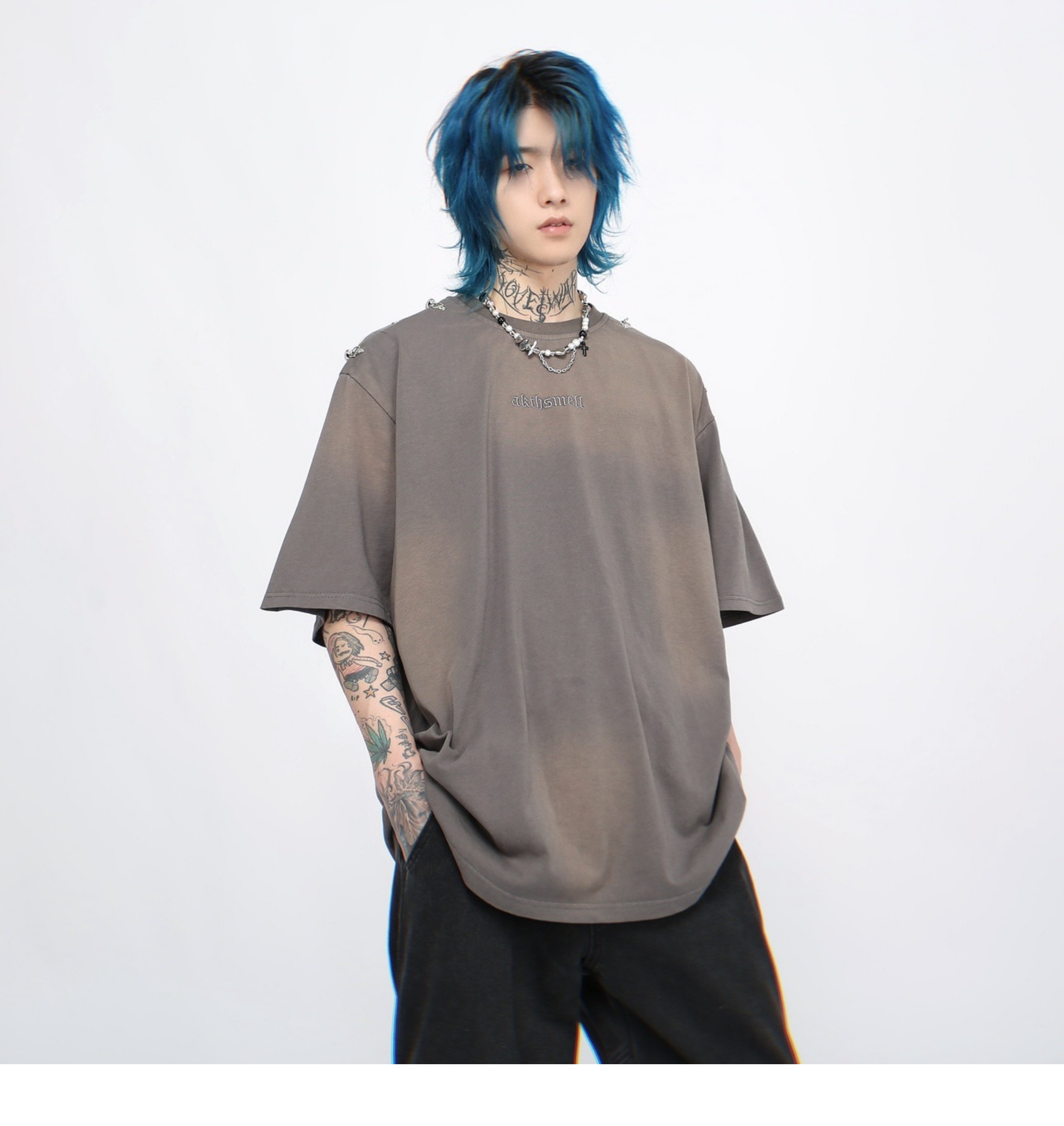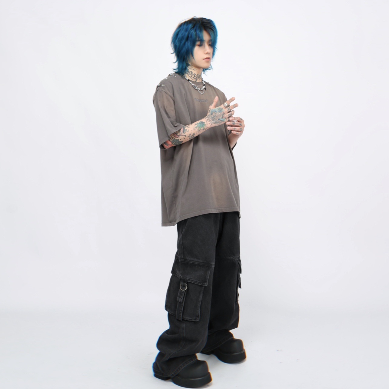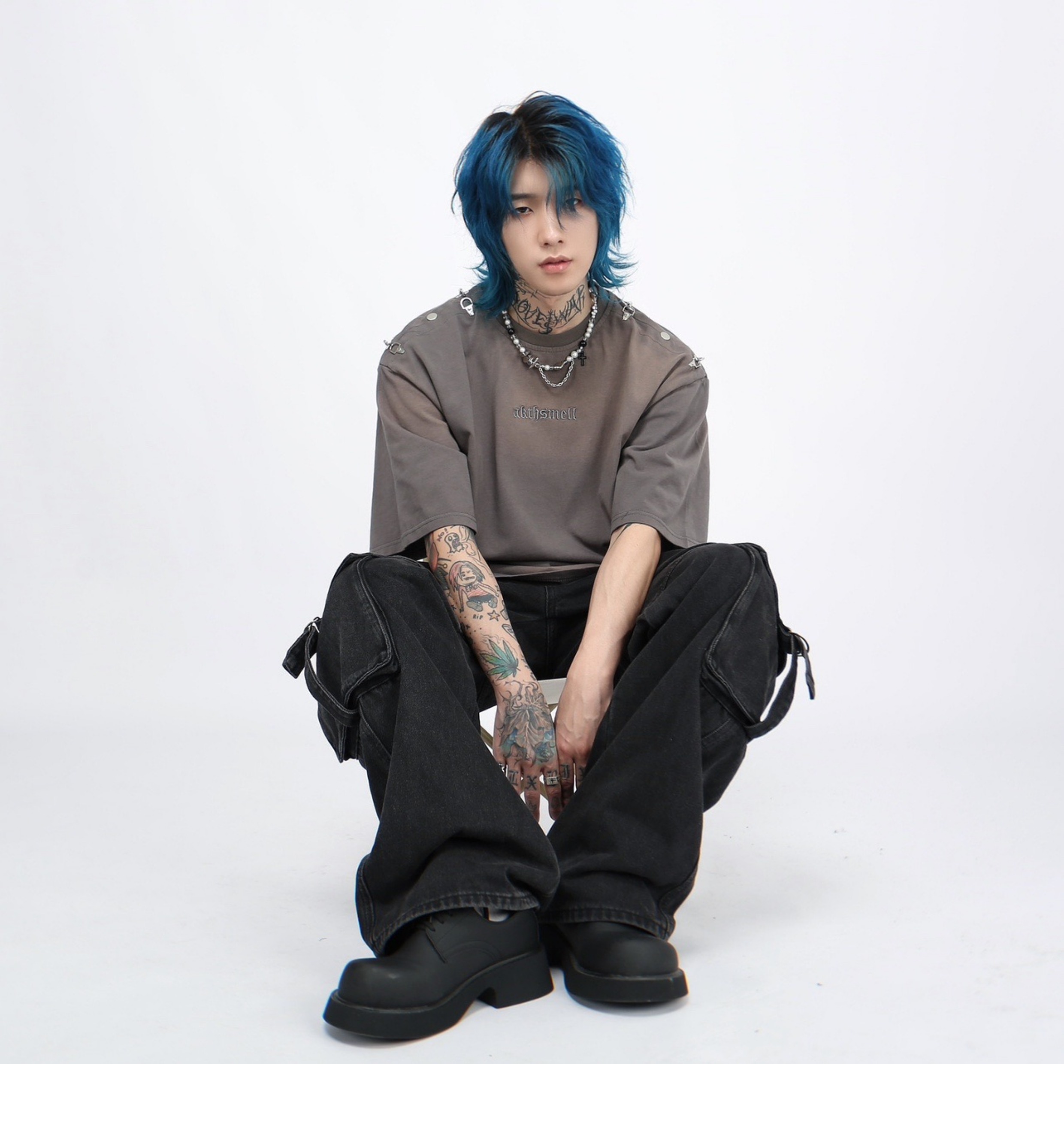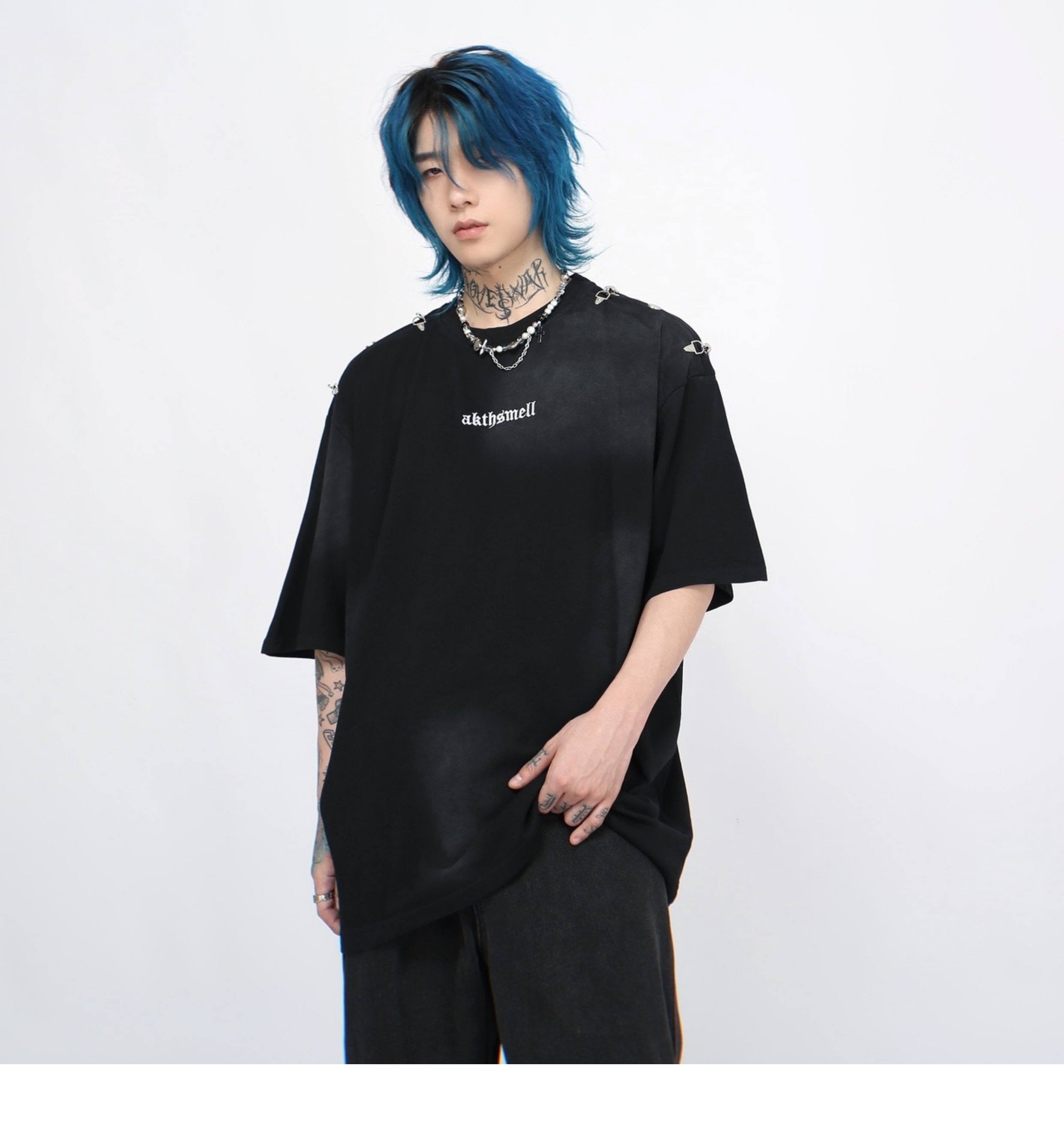 Metal Buckle Design Oversize Short Sleeve T-Shirt WN5861