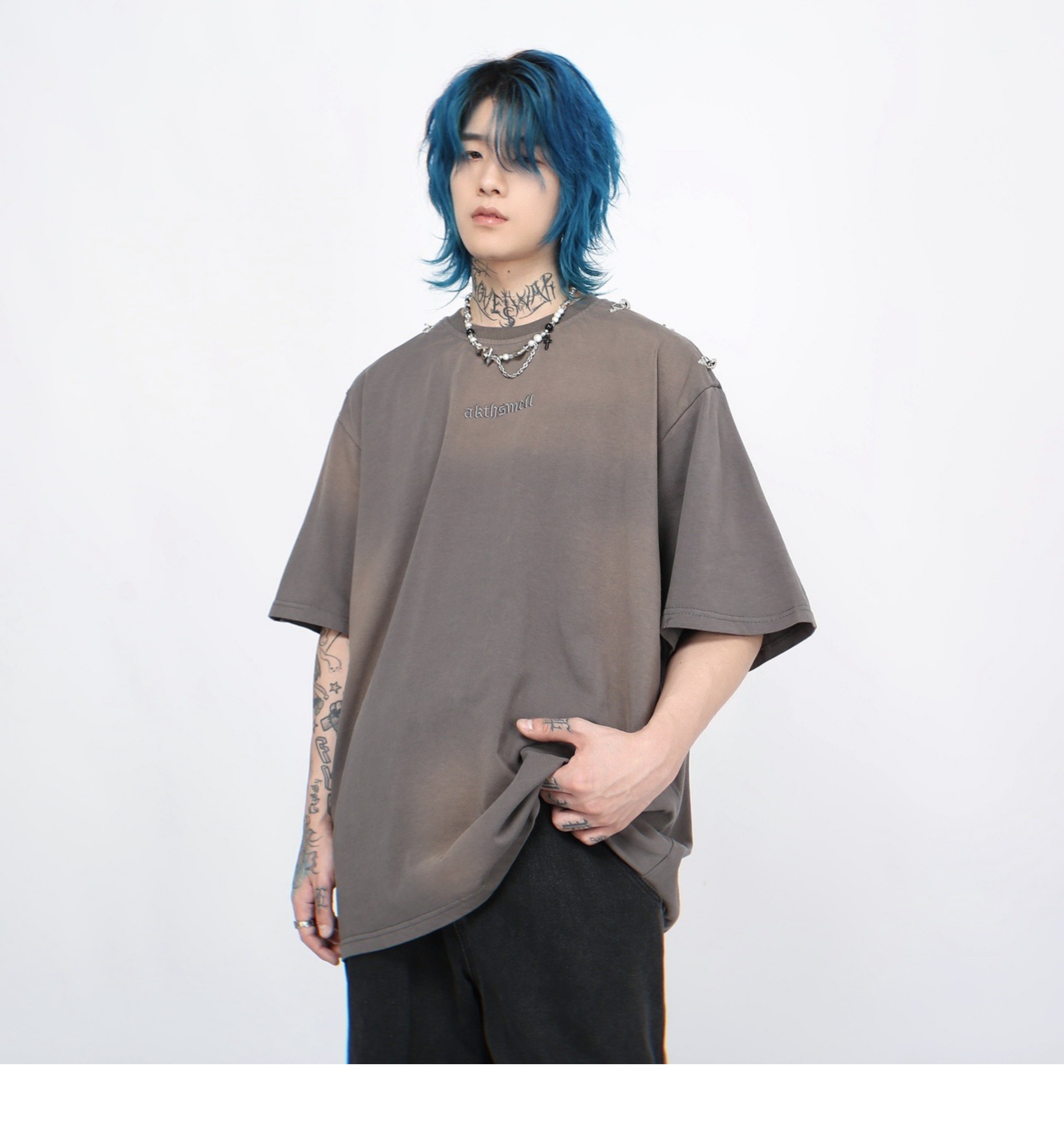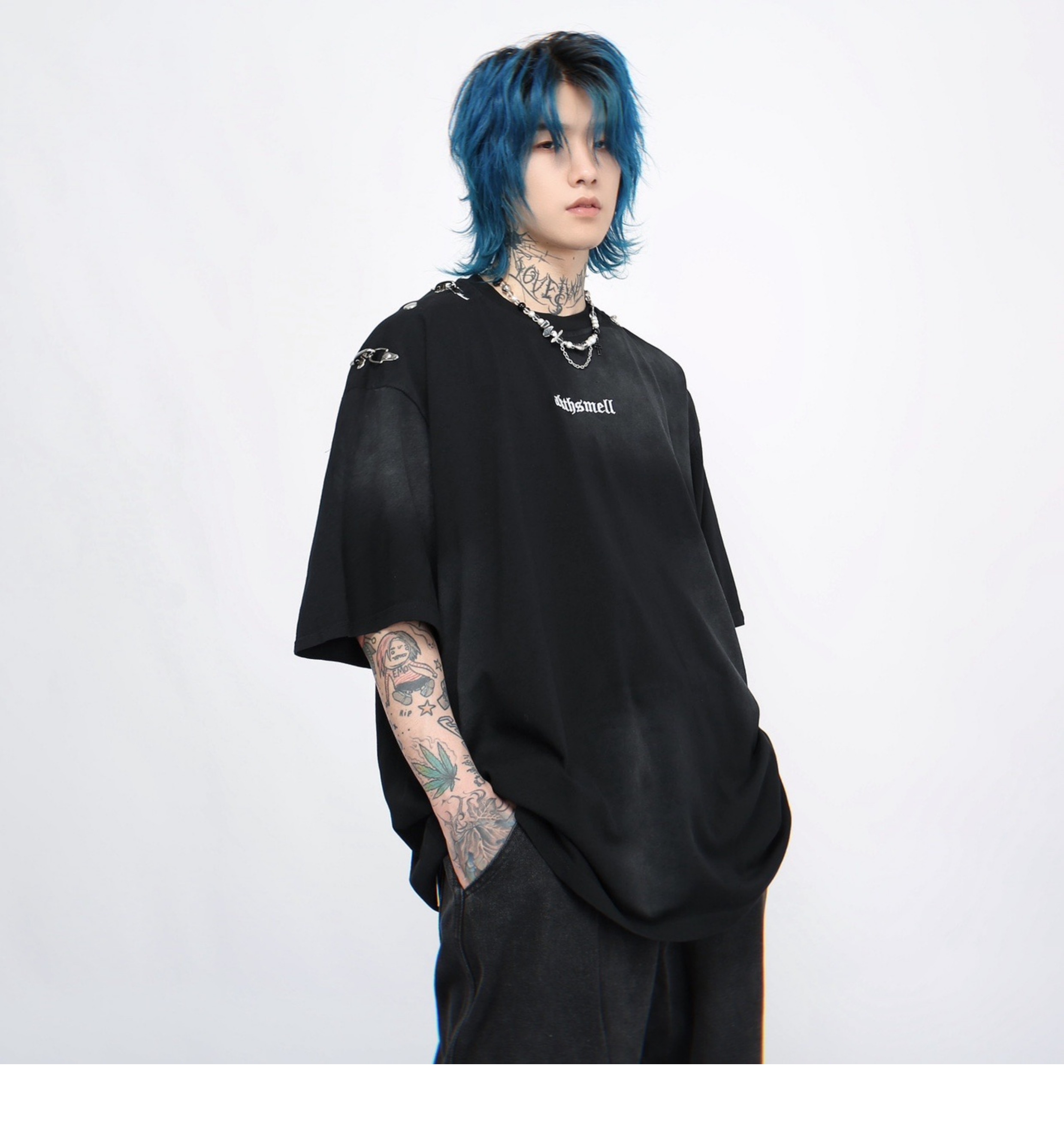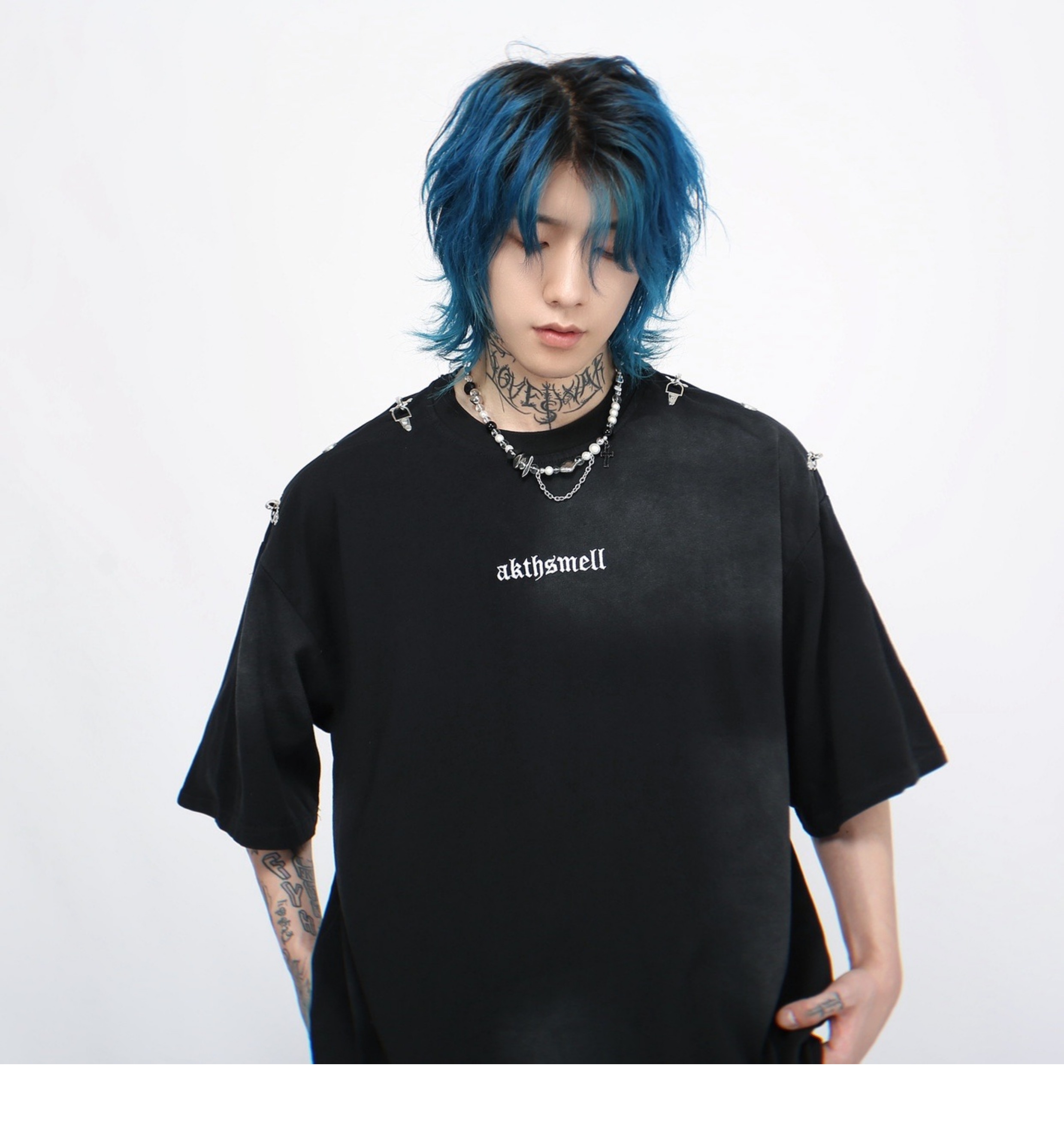 Metal Buckle Design Oversize Short Sleeve T-Shirt WN5861
