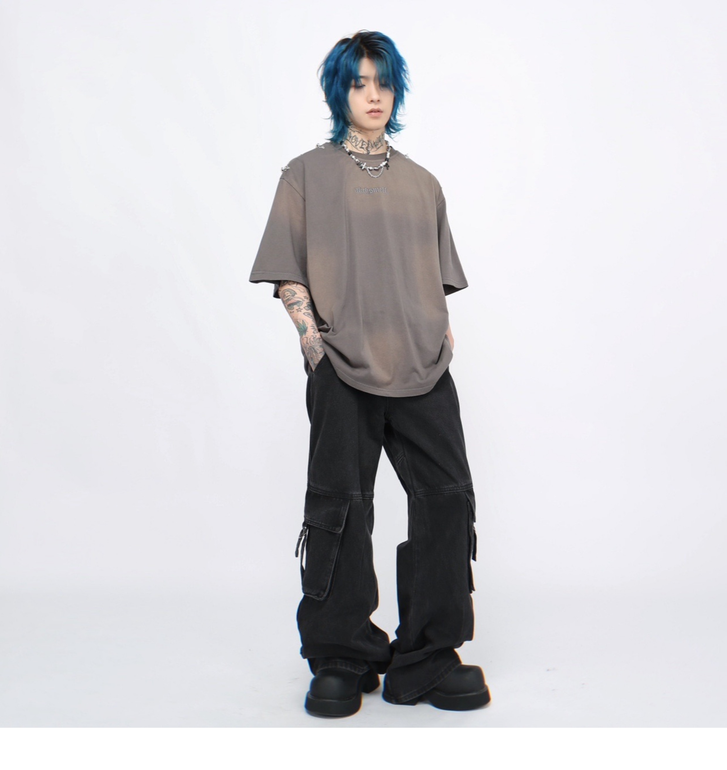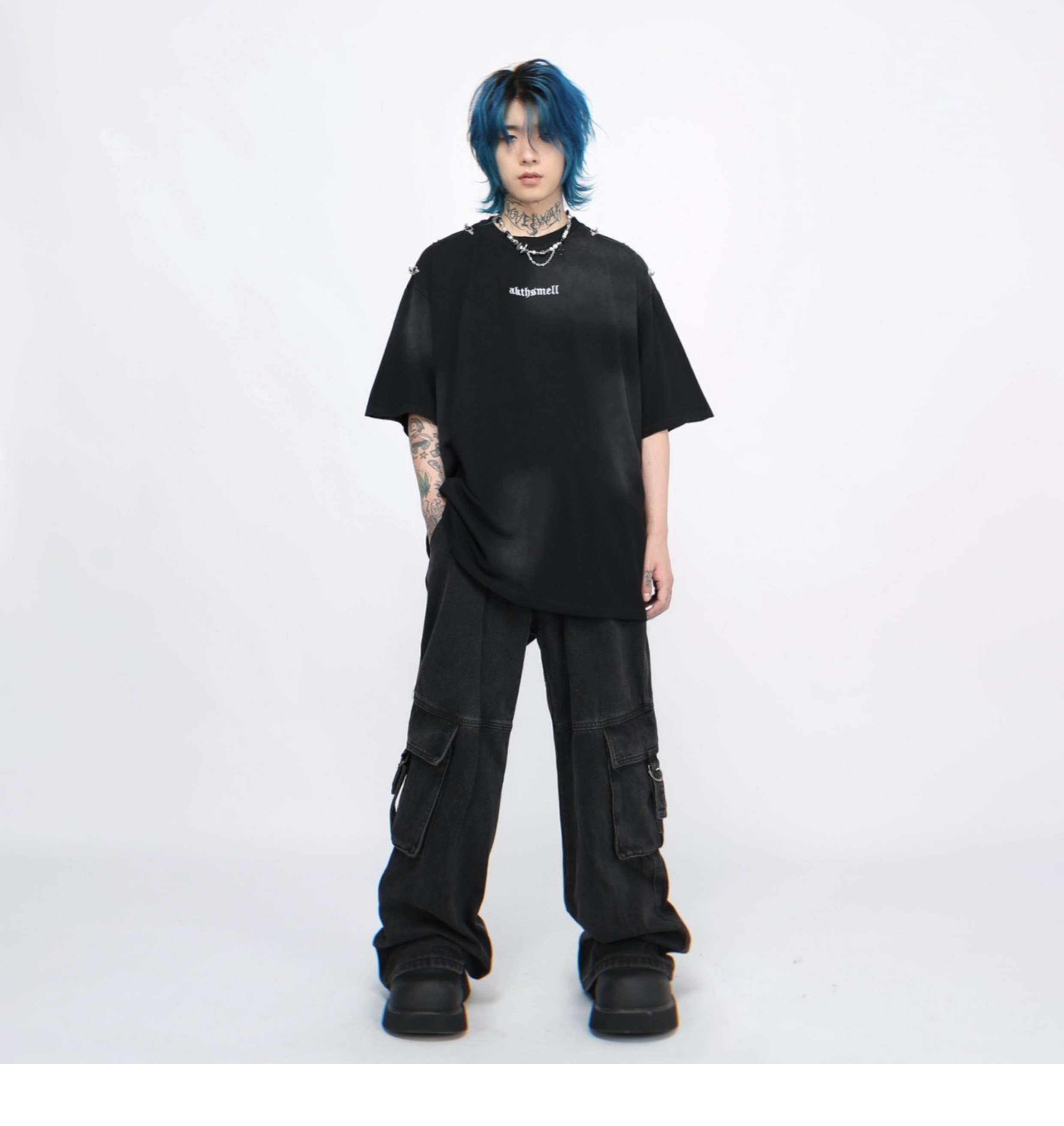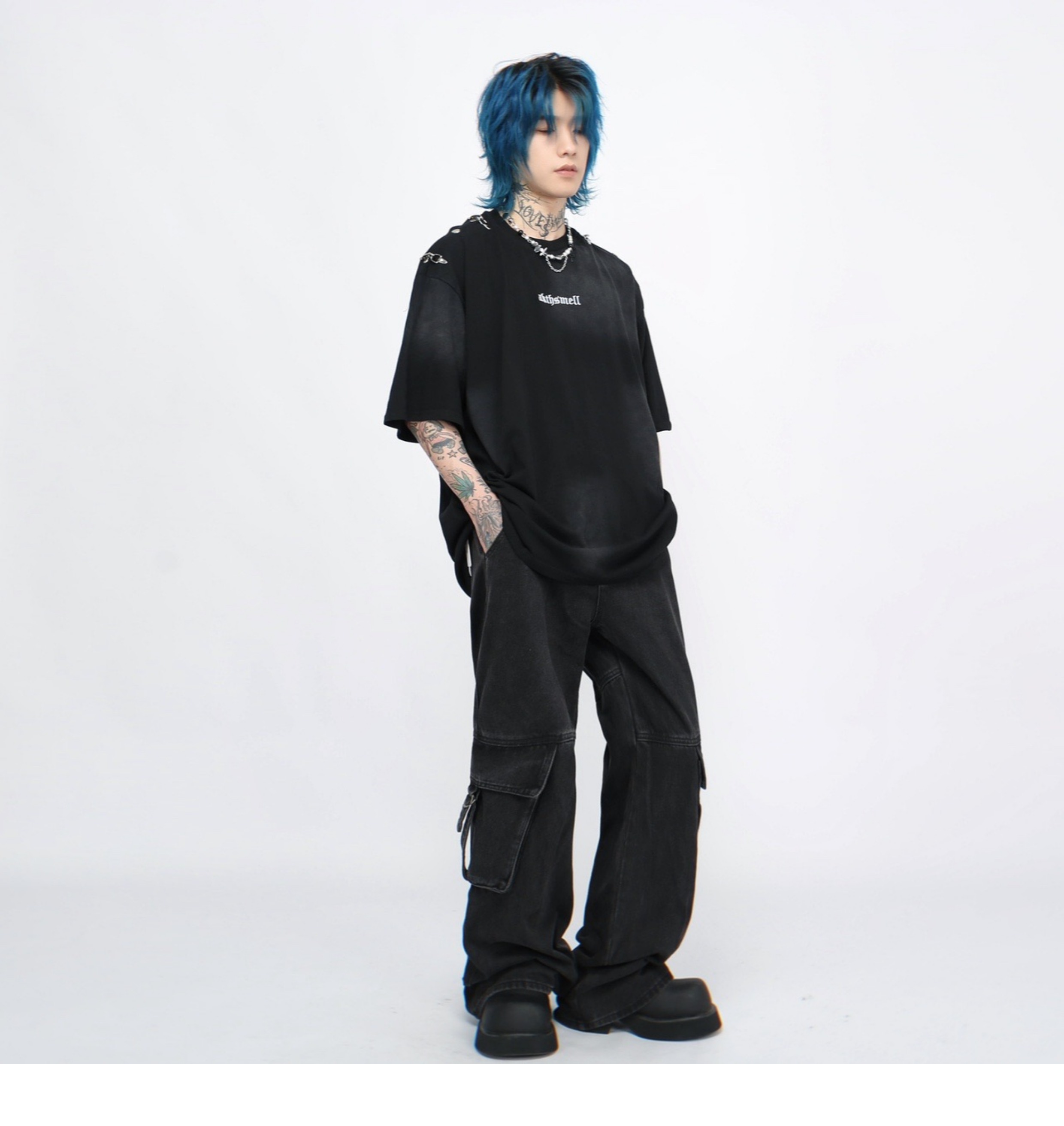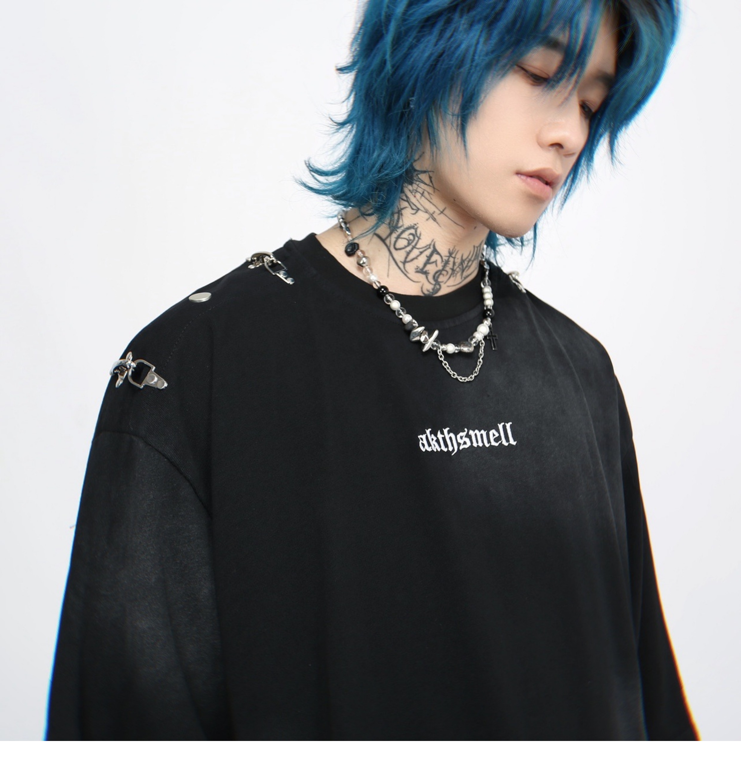 Metal Buckle Design Oversize Short Sleeve T-Shirt WN5861