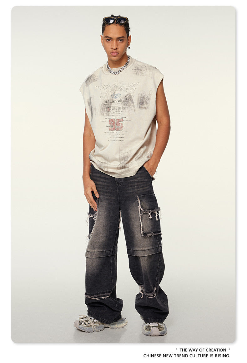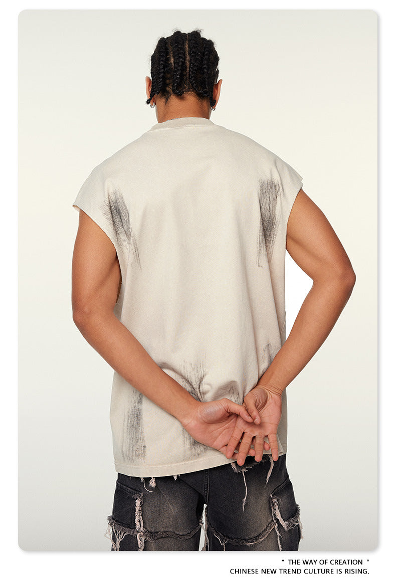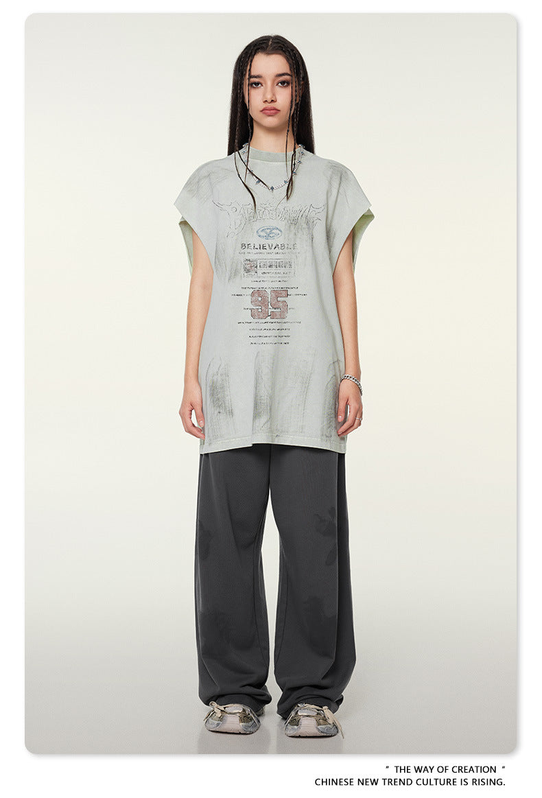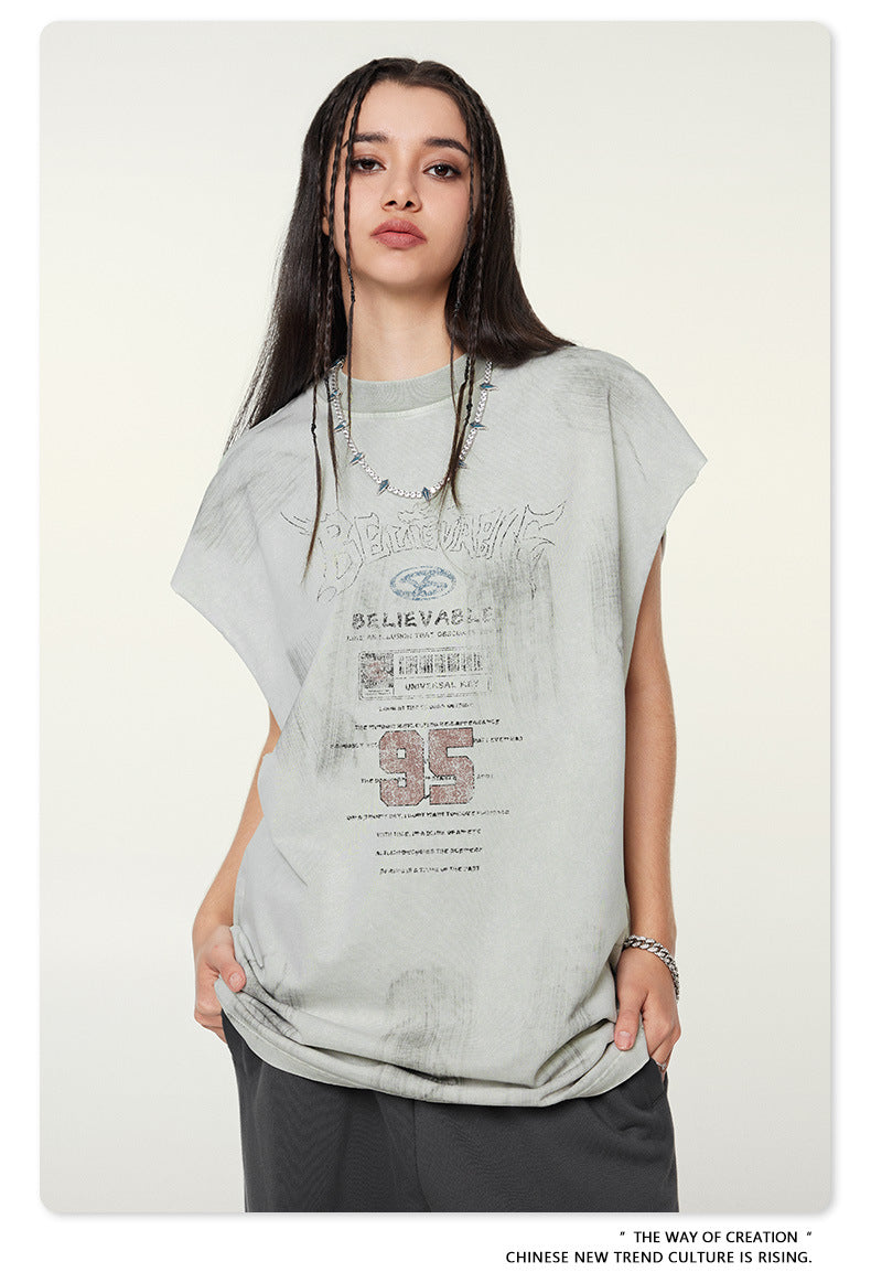 Washed Damage Print Oversize Tank Top T-shirt WN6391