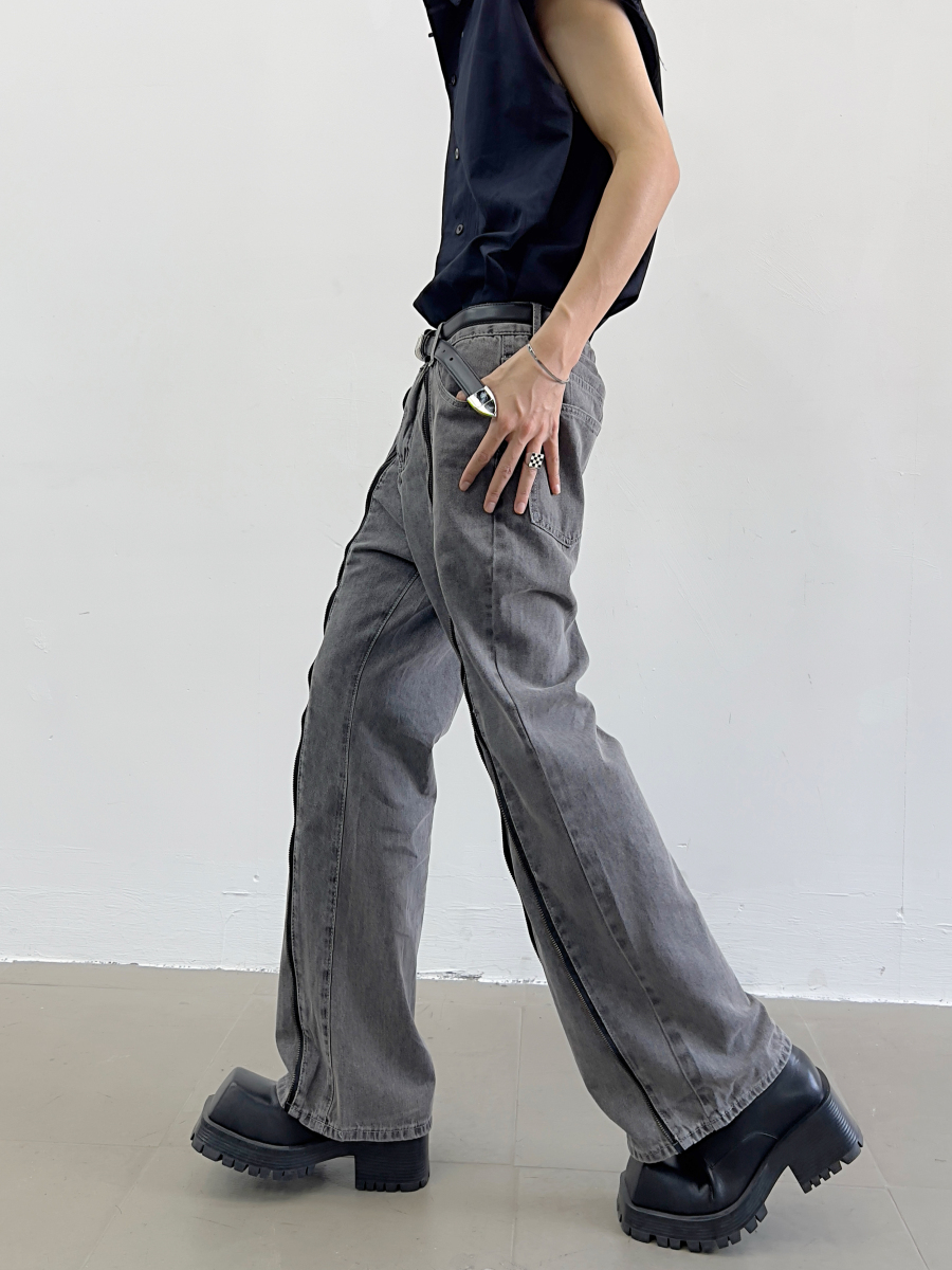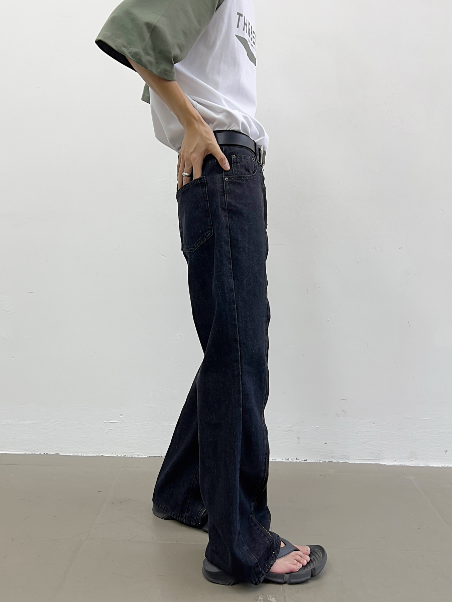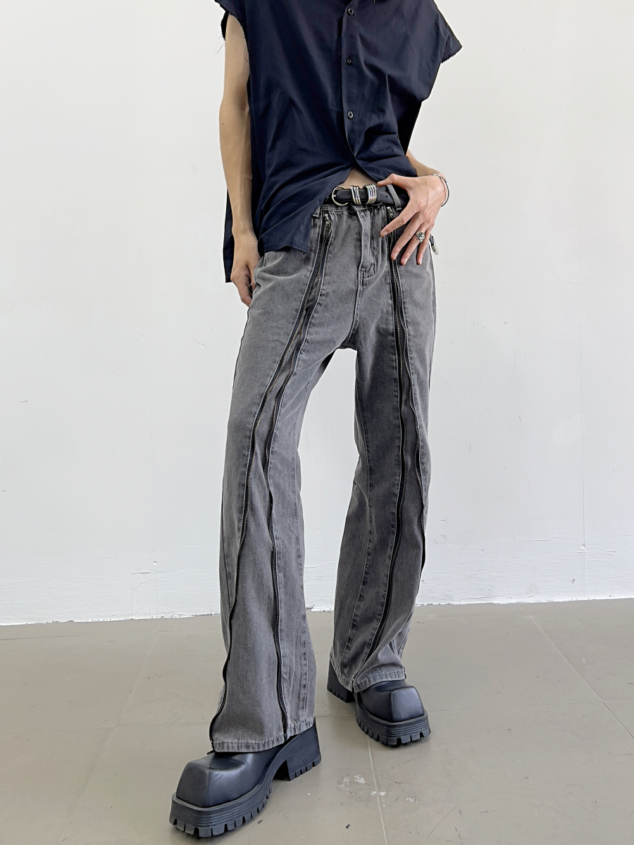 Zipper Design Micro Flare Denim Jeans WN7372