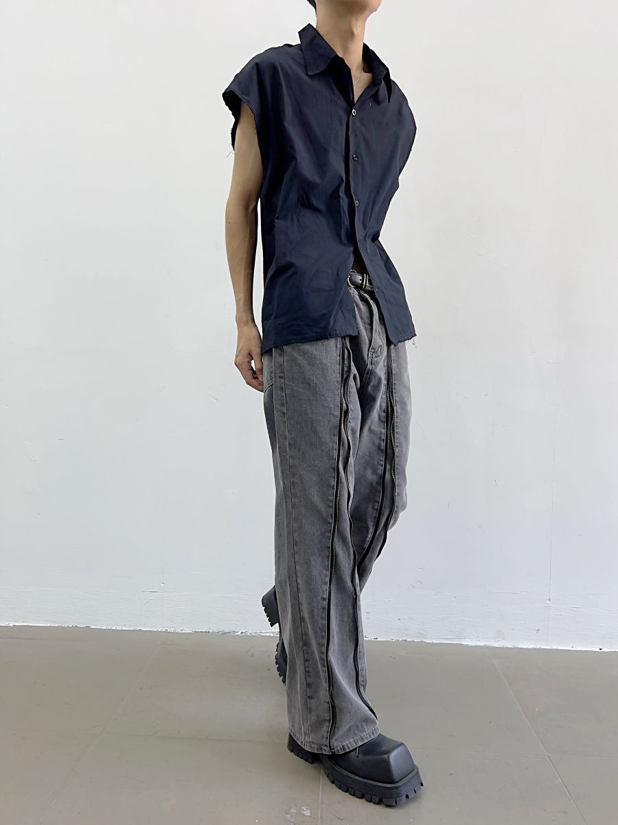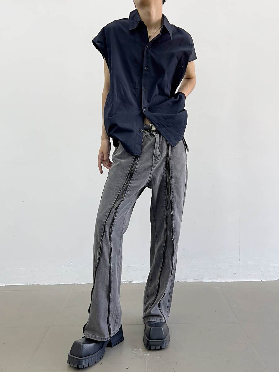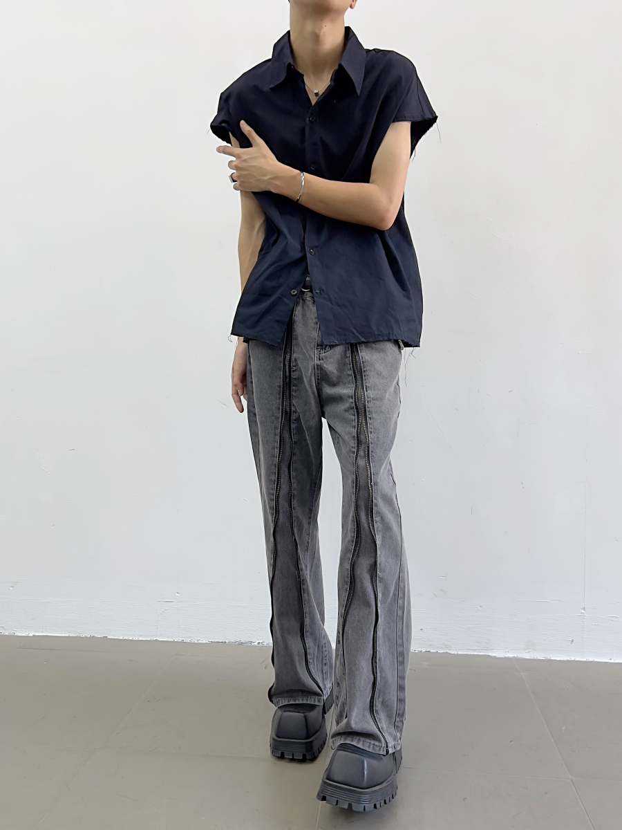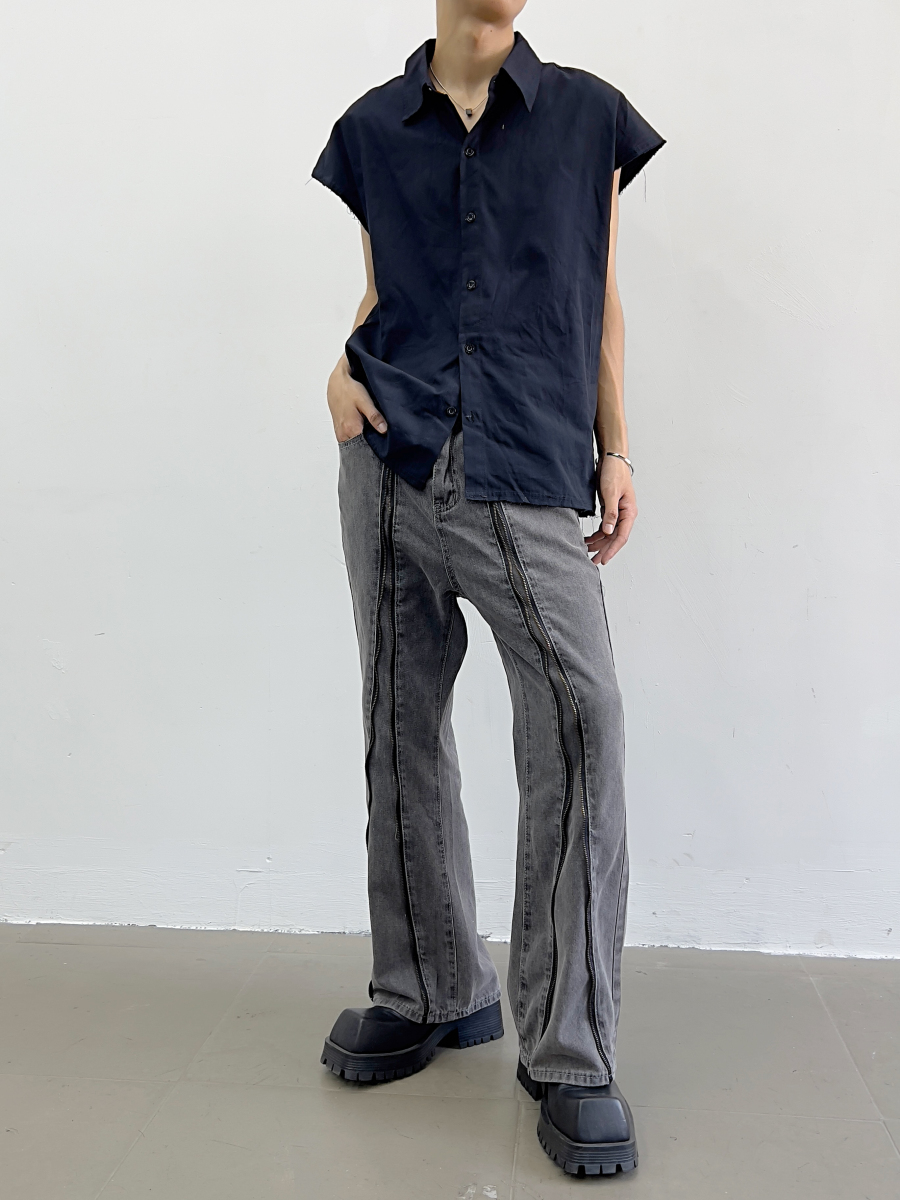 Zipper Design Micro Flare Denim Jeans WN7372