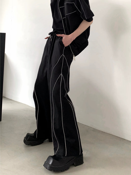 Short Sleeved Shoulder Pad Jacket & Wide-Leg Sporty Pants Setup WN6006