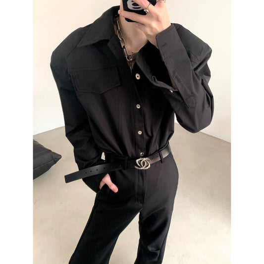 Basic Design Black Long Sleeve Shirt WN4738