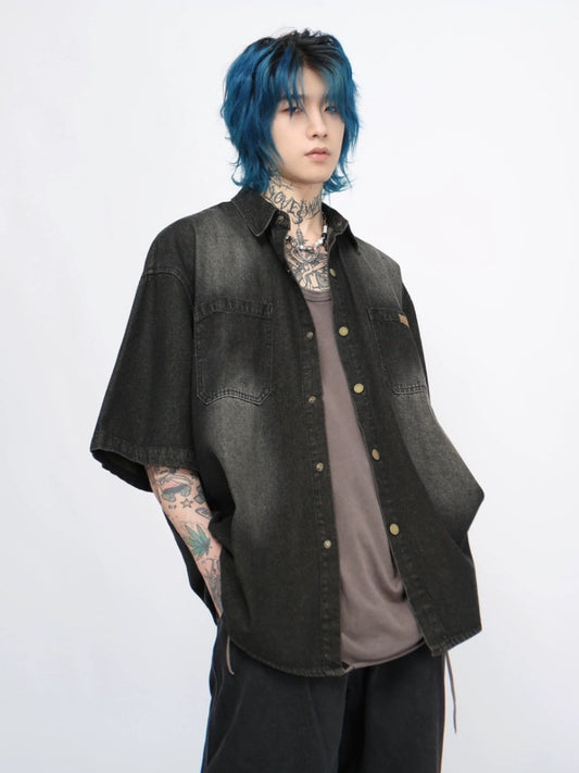 Retro Washed Gradient Short Sleeve Shirt WN4951