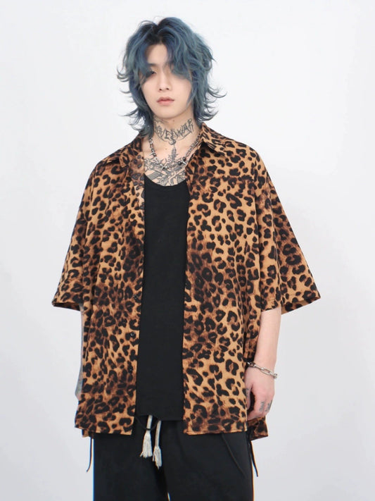 Leopard Print Oversize Short Sleeve Shirt WN5279