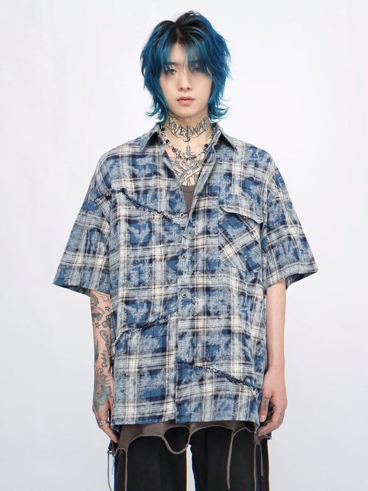 Tie Dye Plaid Raw-edge Short Sleeve Shirt WN5881