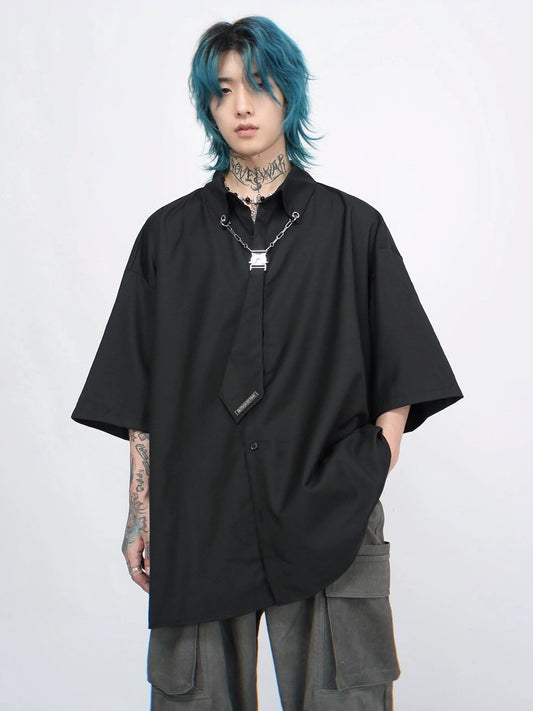 Tie Accessories Design Oversize Short Sleeve Shirt WN5869