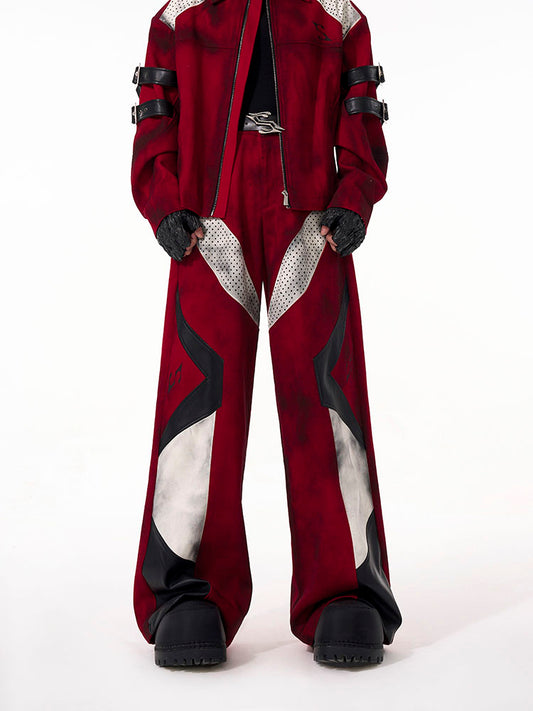 PU Leather Piping Patchwork Wide-Leg Trousers WN11691