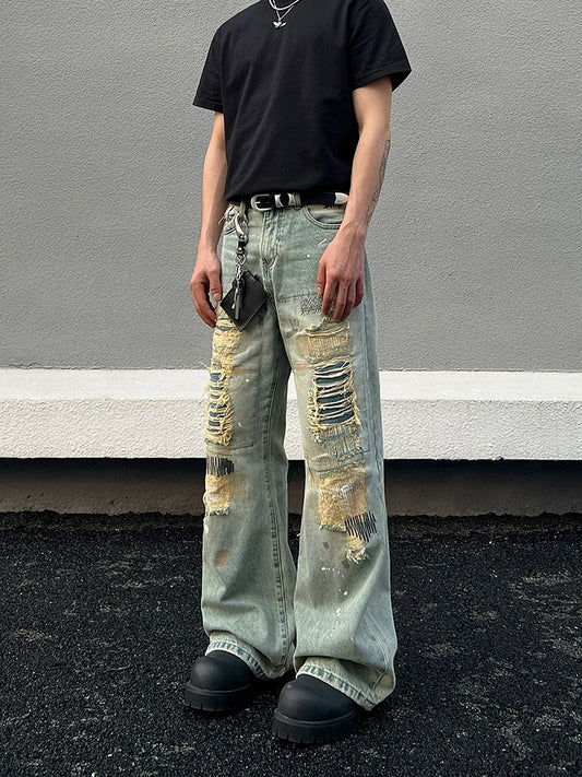 Mud-Dye Damage Design Flare Denim Jeans WN19396
