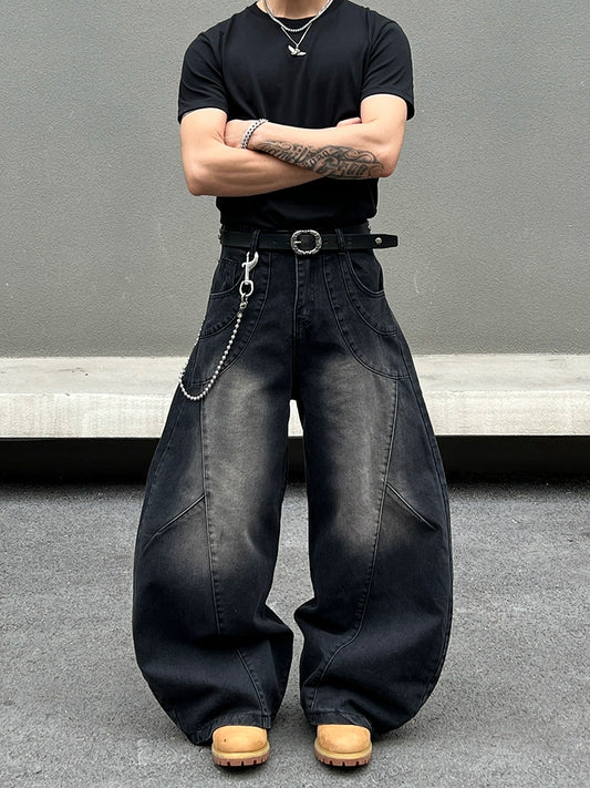 Pleats Straight Wide Leg Denim Jeans WN21196