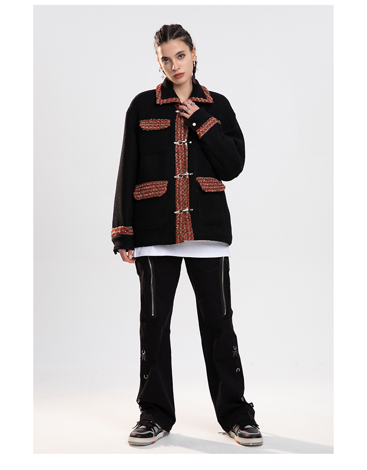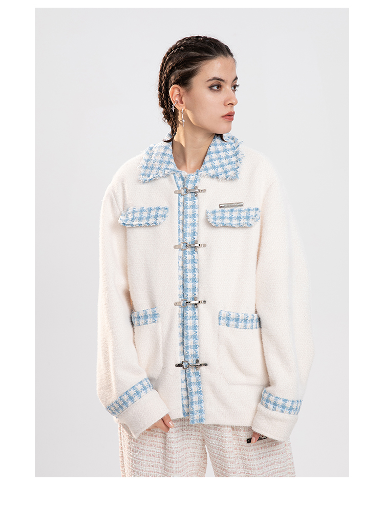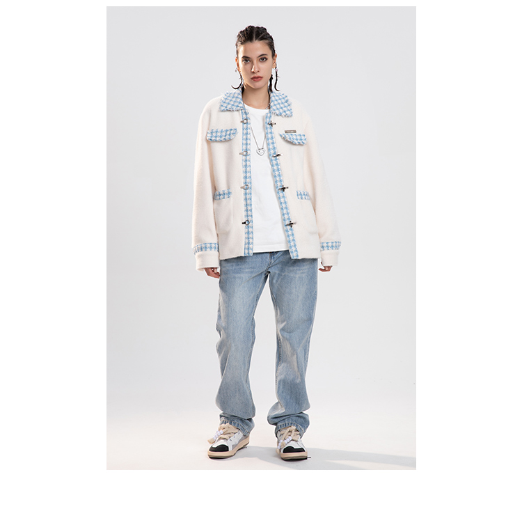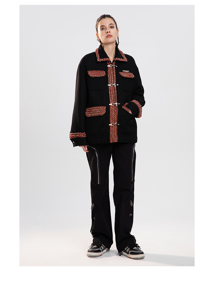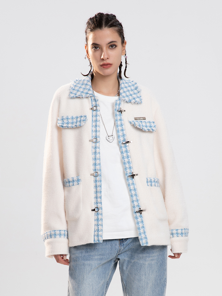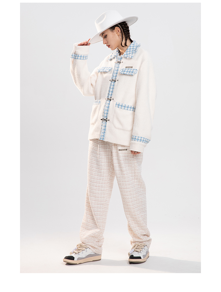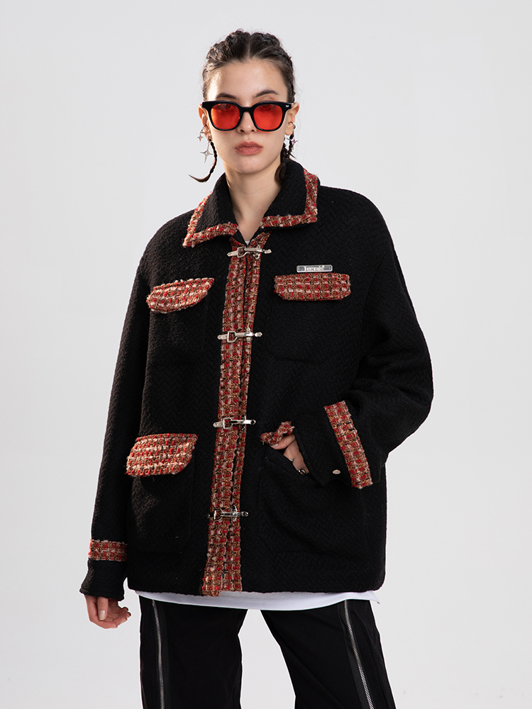 Herringbone Plaid Embroidery Oversize Jacket WN10078