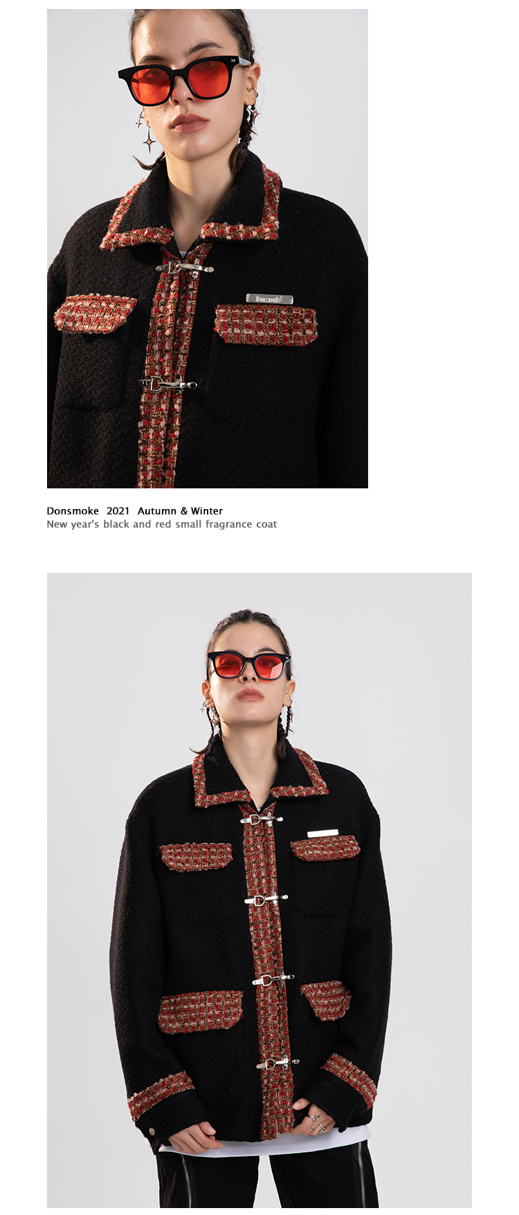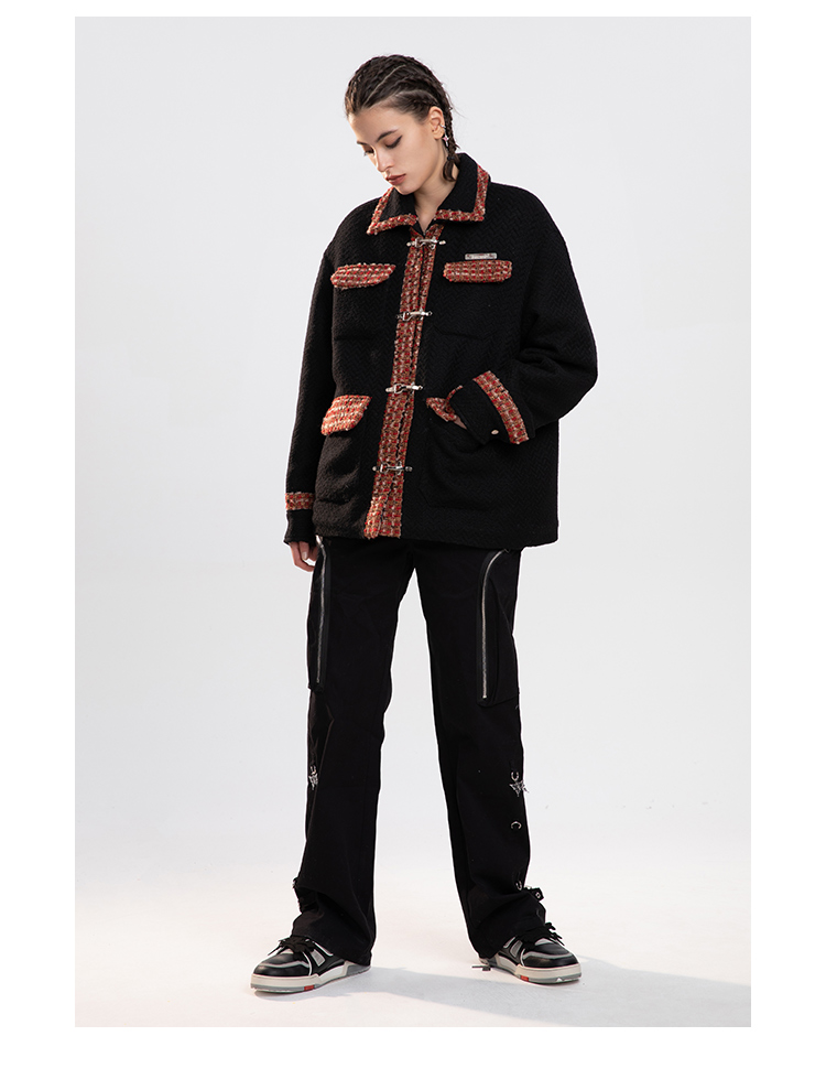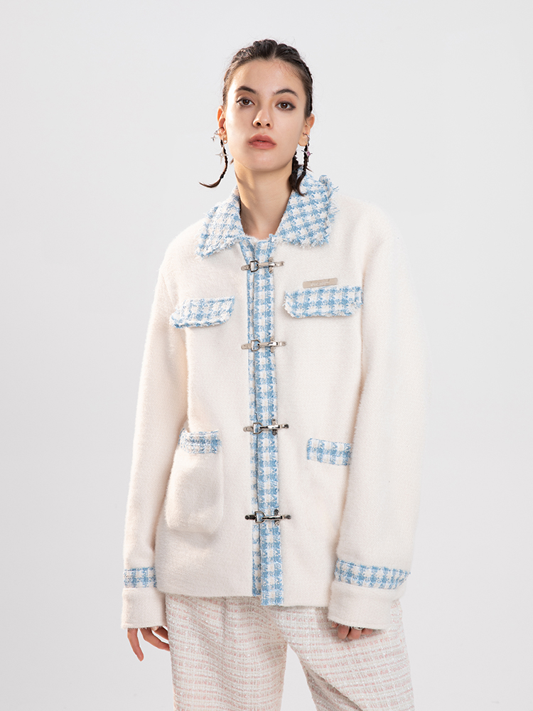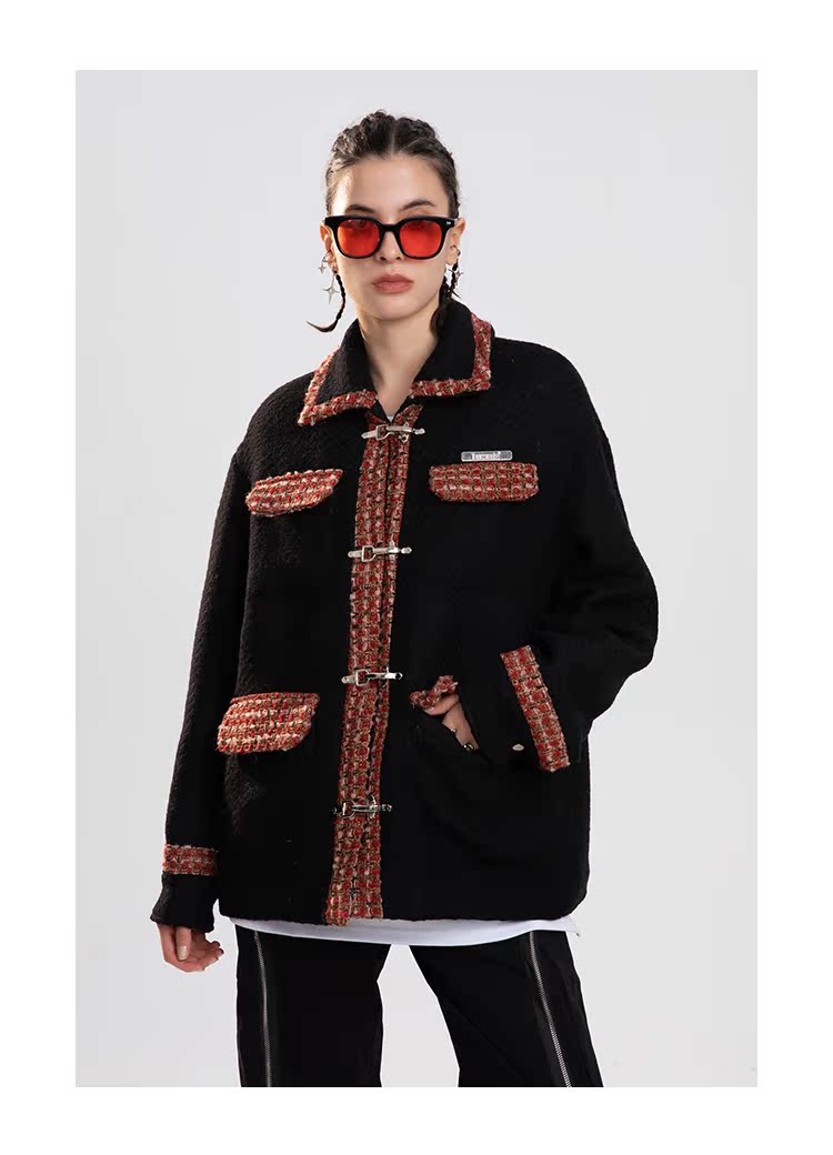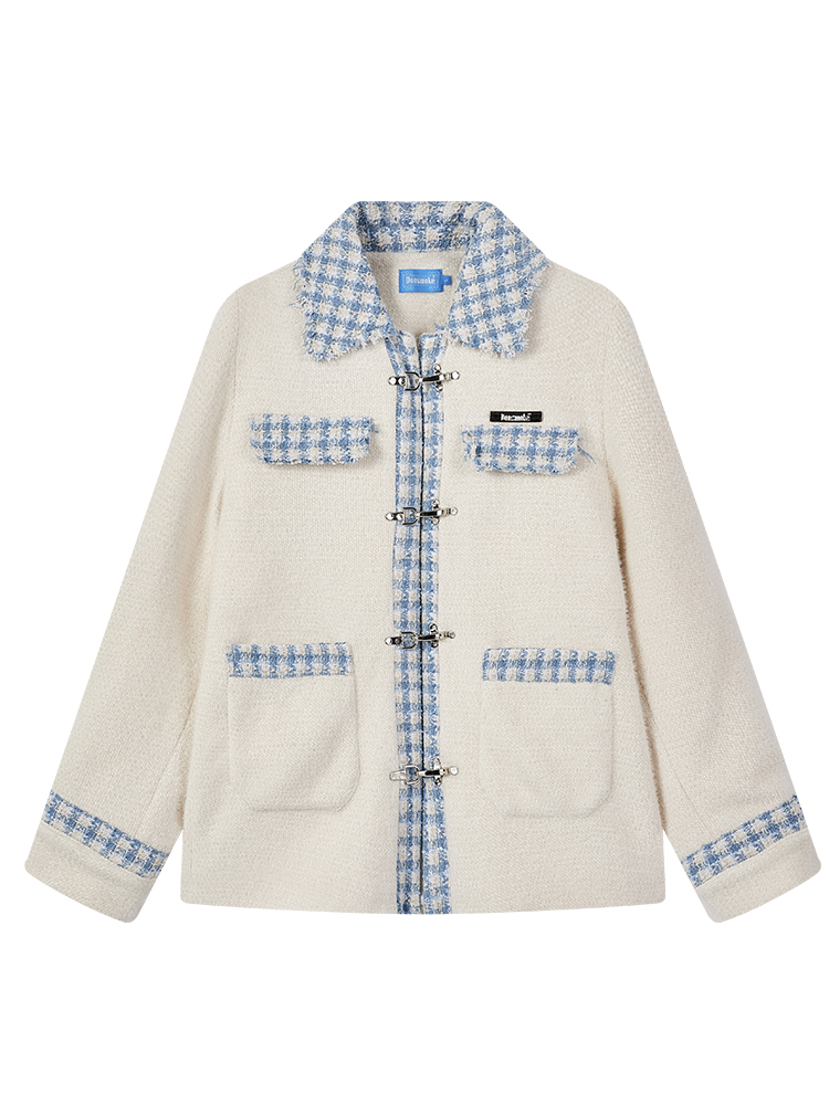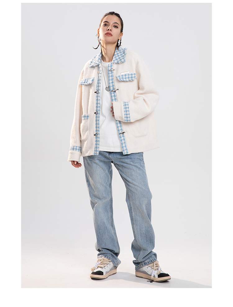 Herringbone Plaid Embroidery Oversize Jacket WN10078