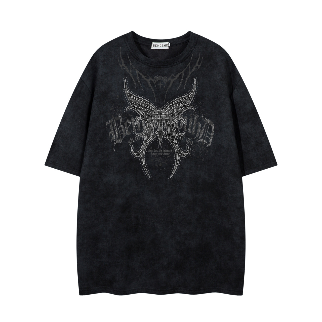 Butterfly Print Suede Design Oversize Short Sleeve T-Shirt WN15110
