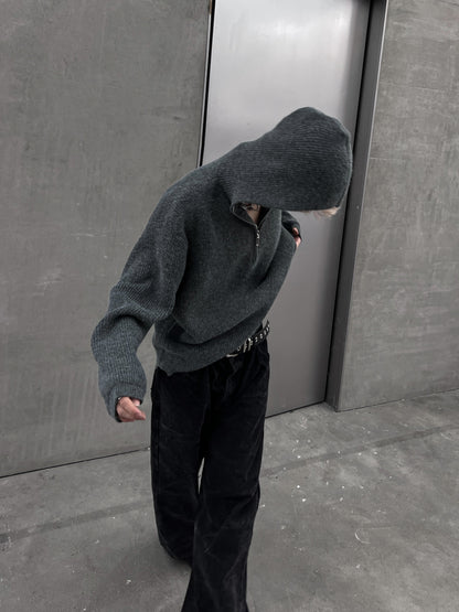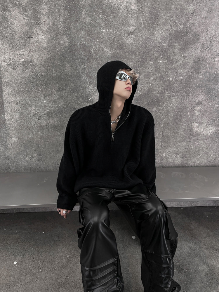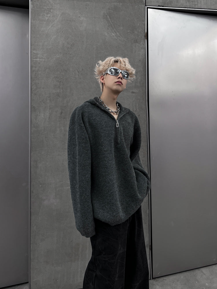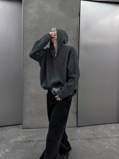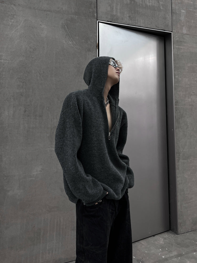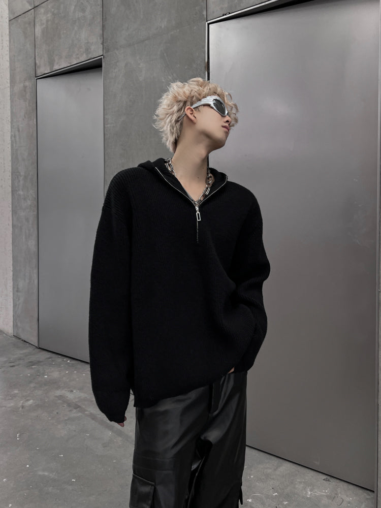 Half Zipper Design Oversize Knit Hoodie WN15353
