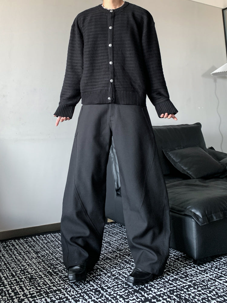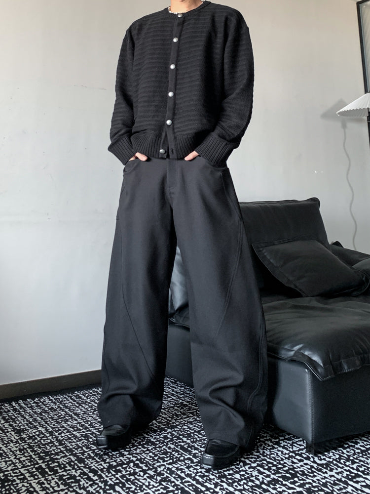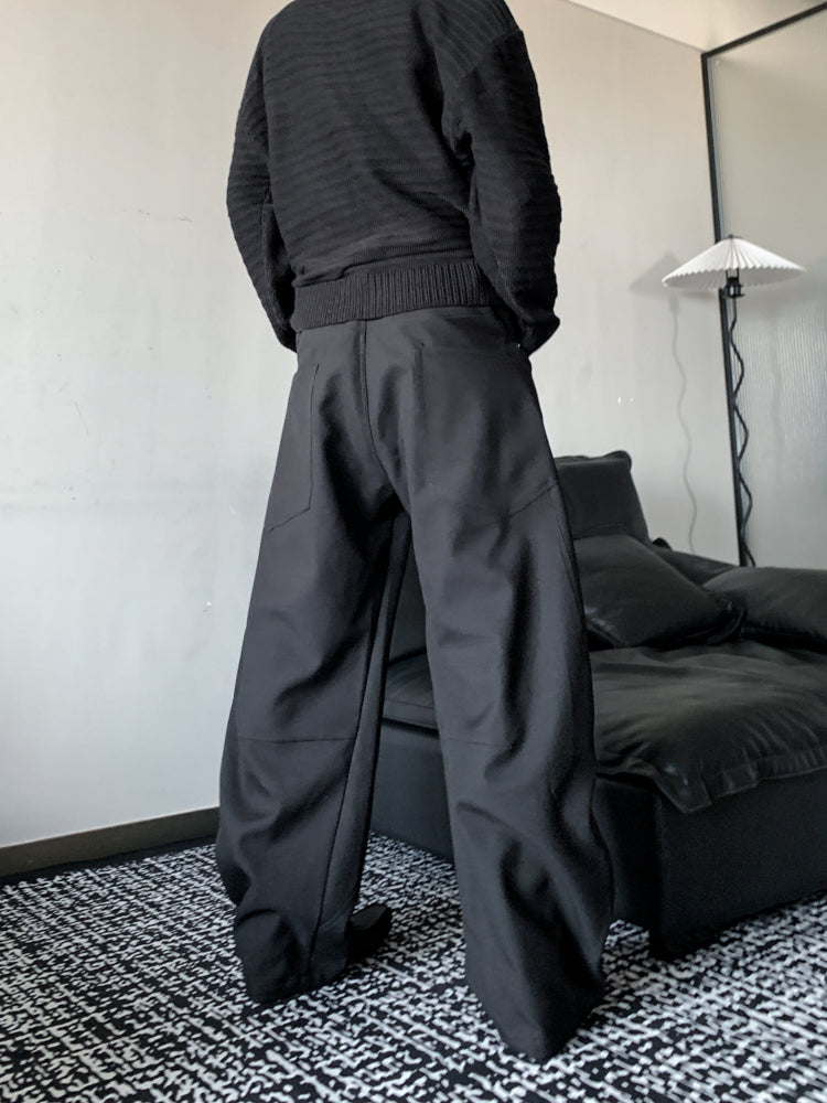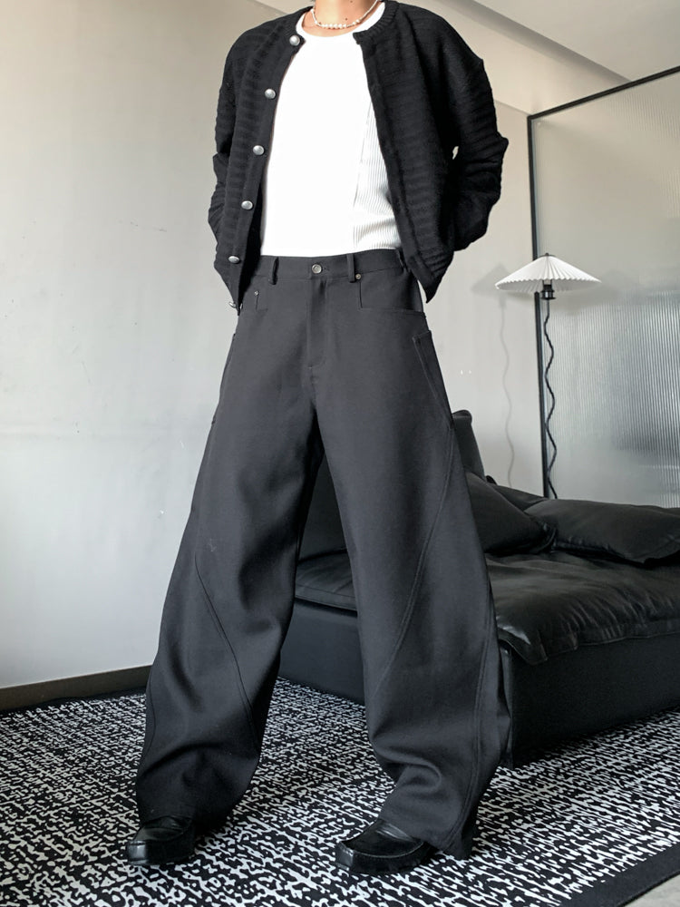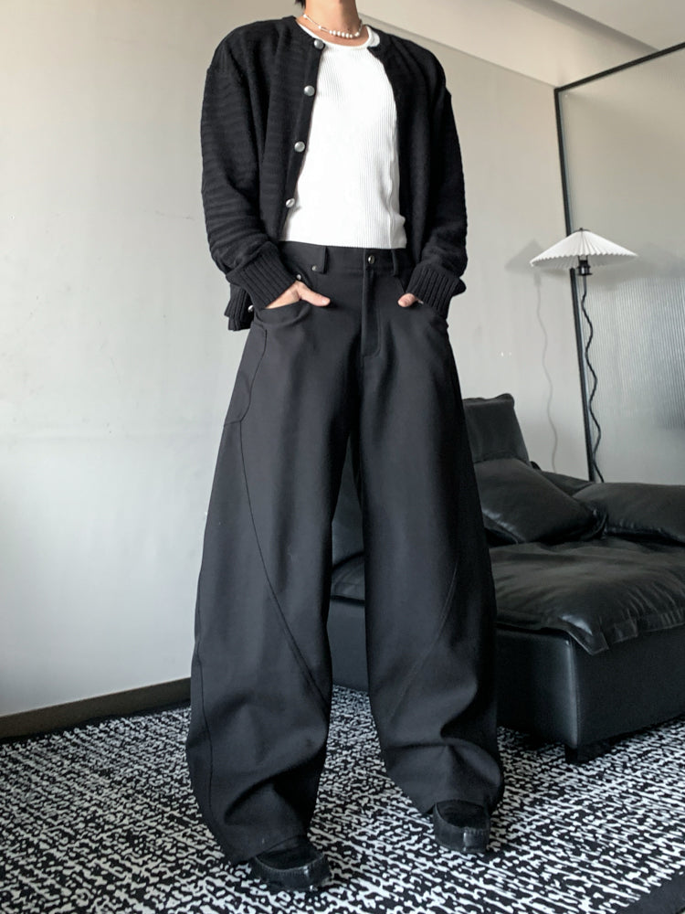 Curved Cut Patchwork Wide Leg Trousers WN15363